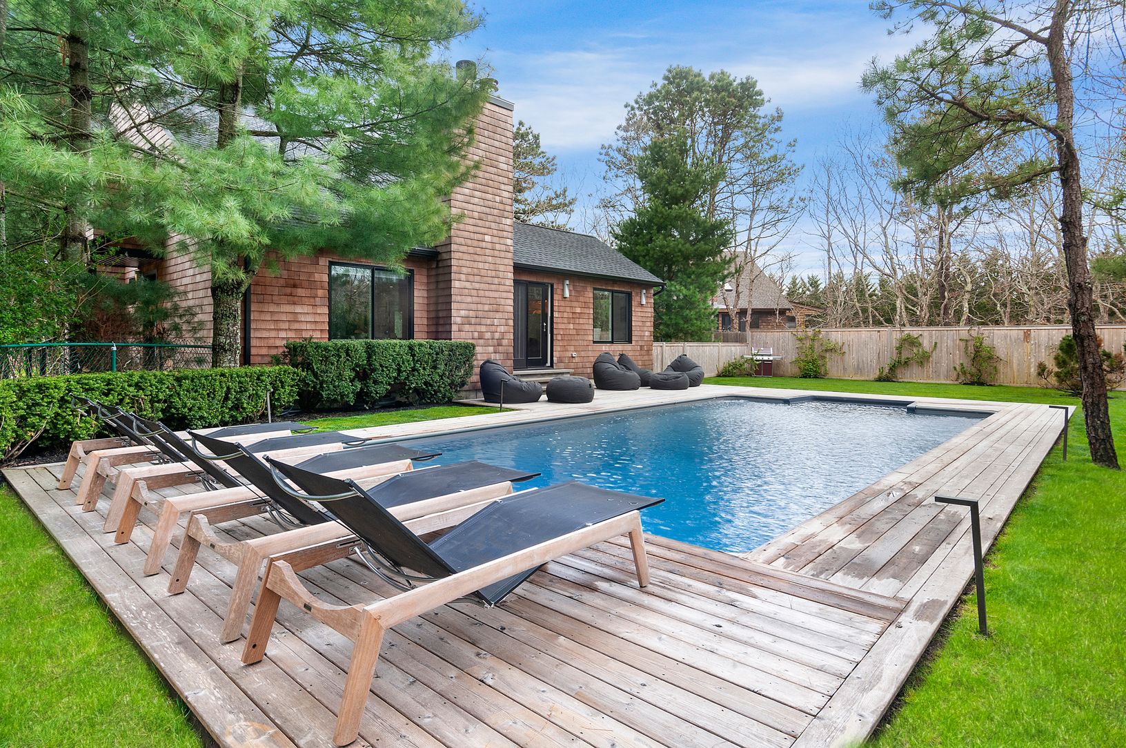 This East Hampton Village fringe 4 bedroom and 3 bath home is charming, comfortable and sexy. Recently renovated inside and out and turn key, complete with a newly built en suite master on the ground floor. Great for entertaining or chilling, the backyard is a utopia featuring a gorgeous secluded pool with surrounding new wood deck. The location is perfect; it's 1.5 miles from the ocean beach and The Village of East Hampton and 5 minutes from