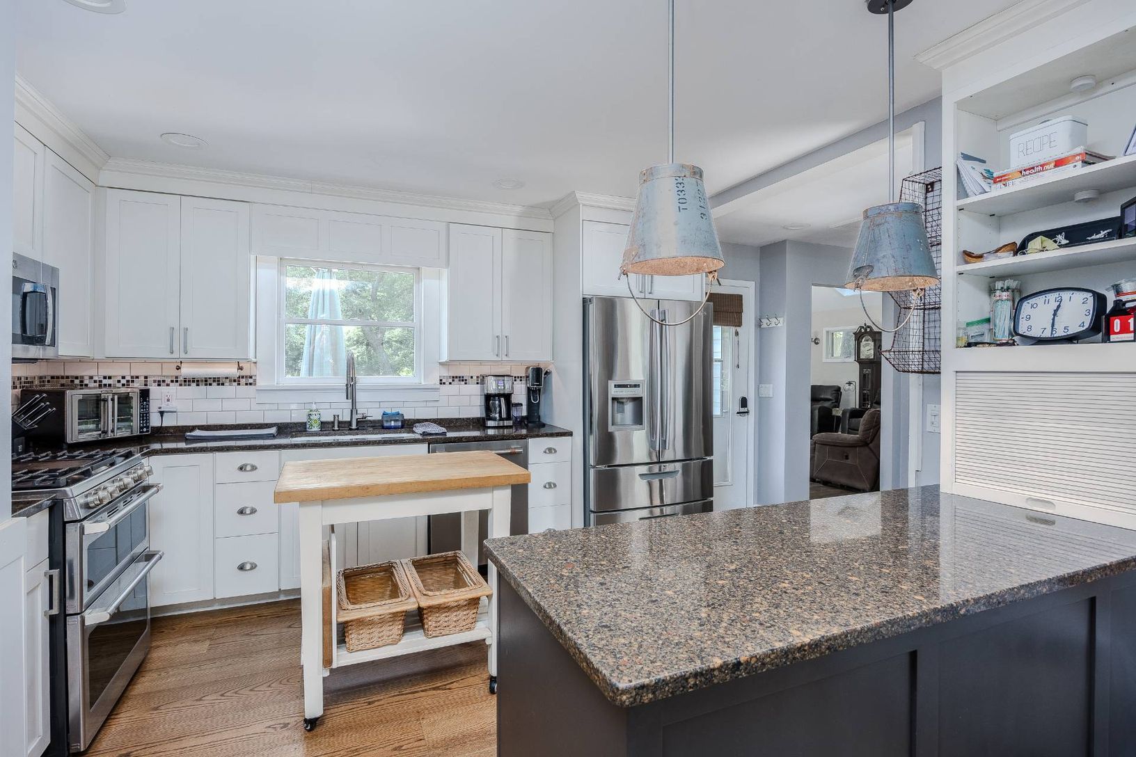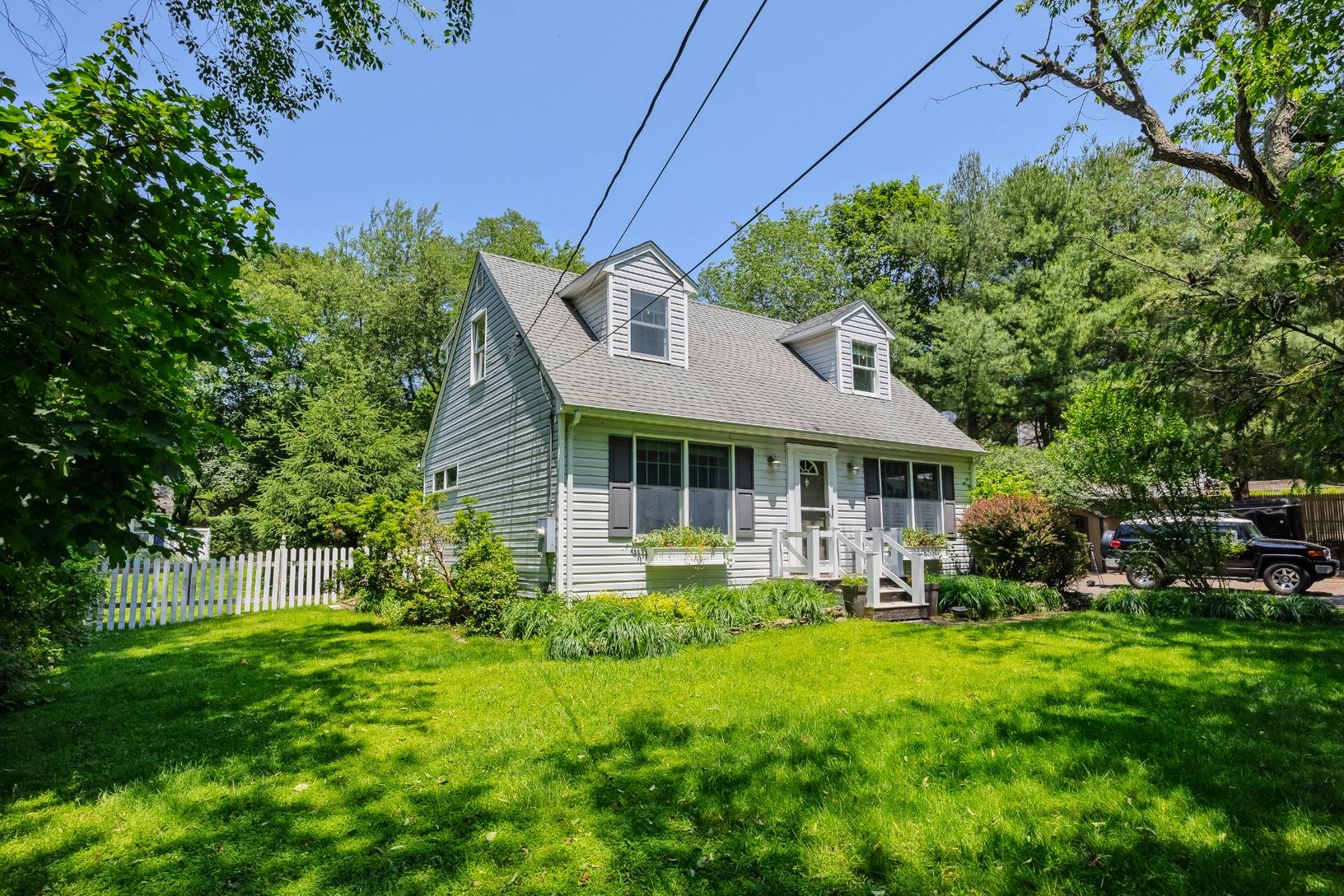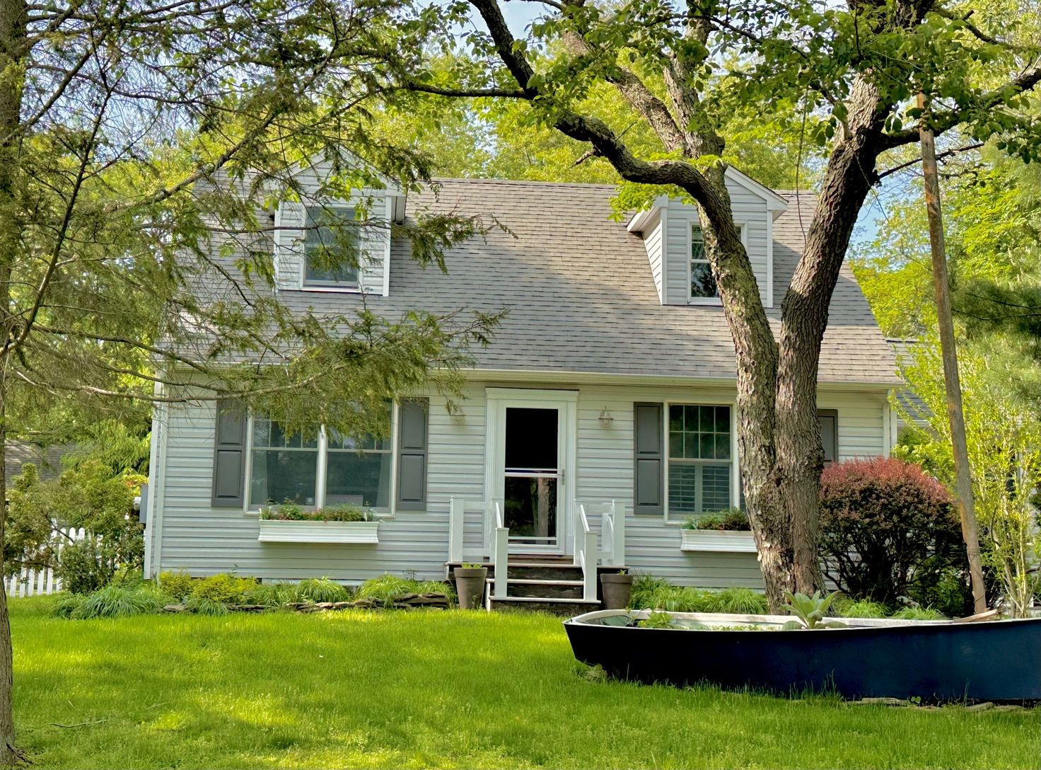 This lovingly maintained Cape Cod-style home, built in 1995, is situated on a .7-acre lot and offers a thoughtful blend of charm and functionality. The entry foyer is both spacious and practical, featuring coat and shoe cubbies, closets, and a nearby powder room. At the heart of the home is a cheerful living room with a vaulted ceiling, a raised Vermont Castings vent-free propane stove, built-in cabinetry, a surround sound system, and access t