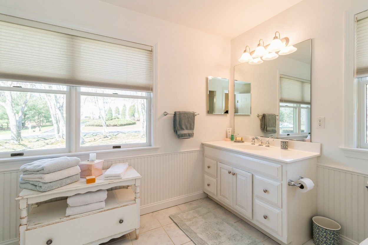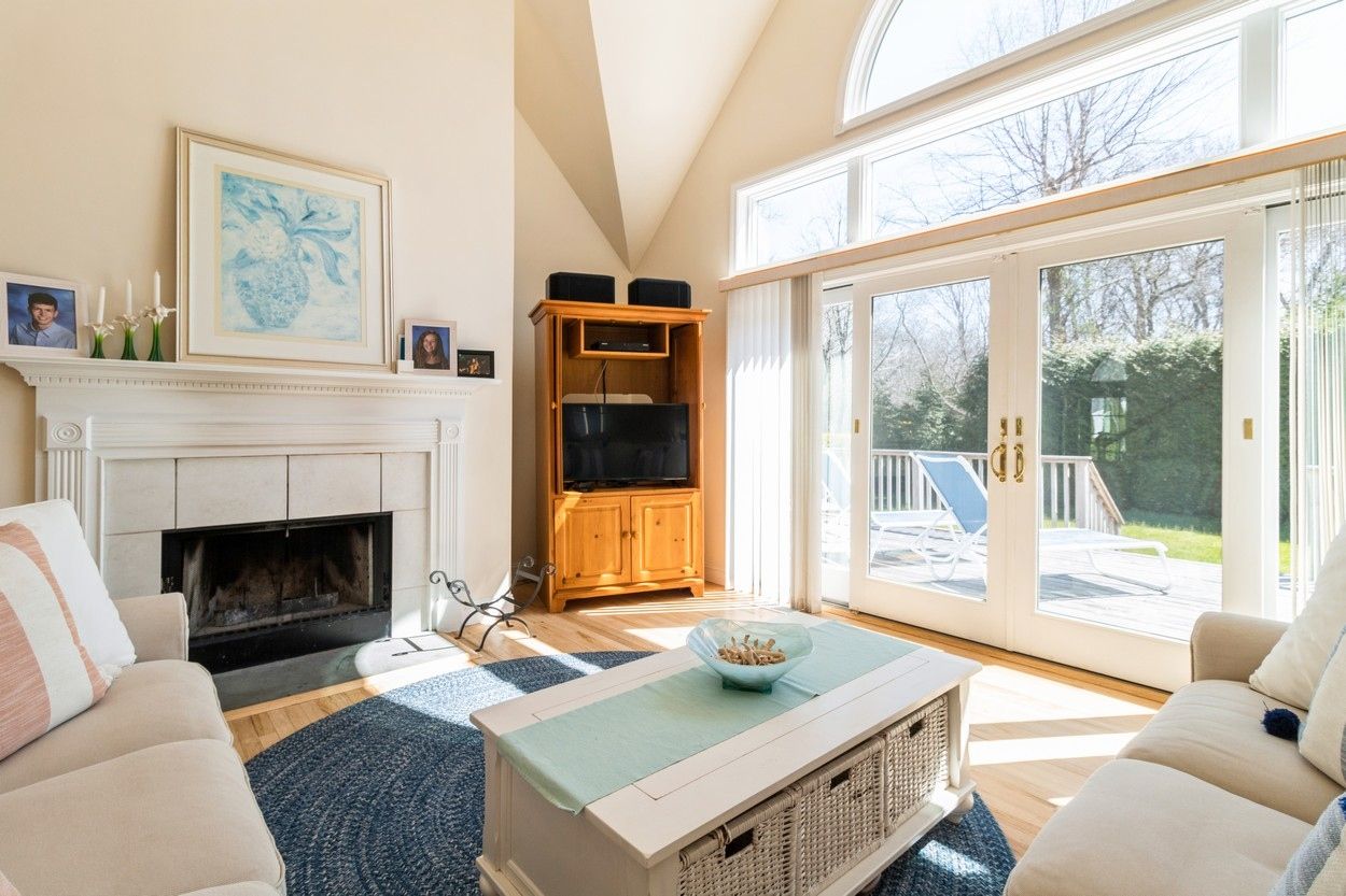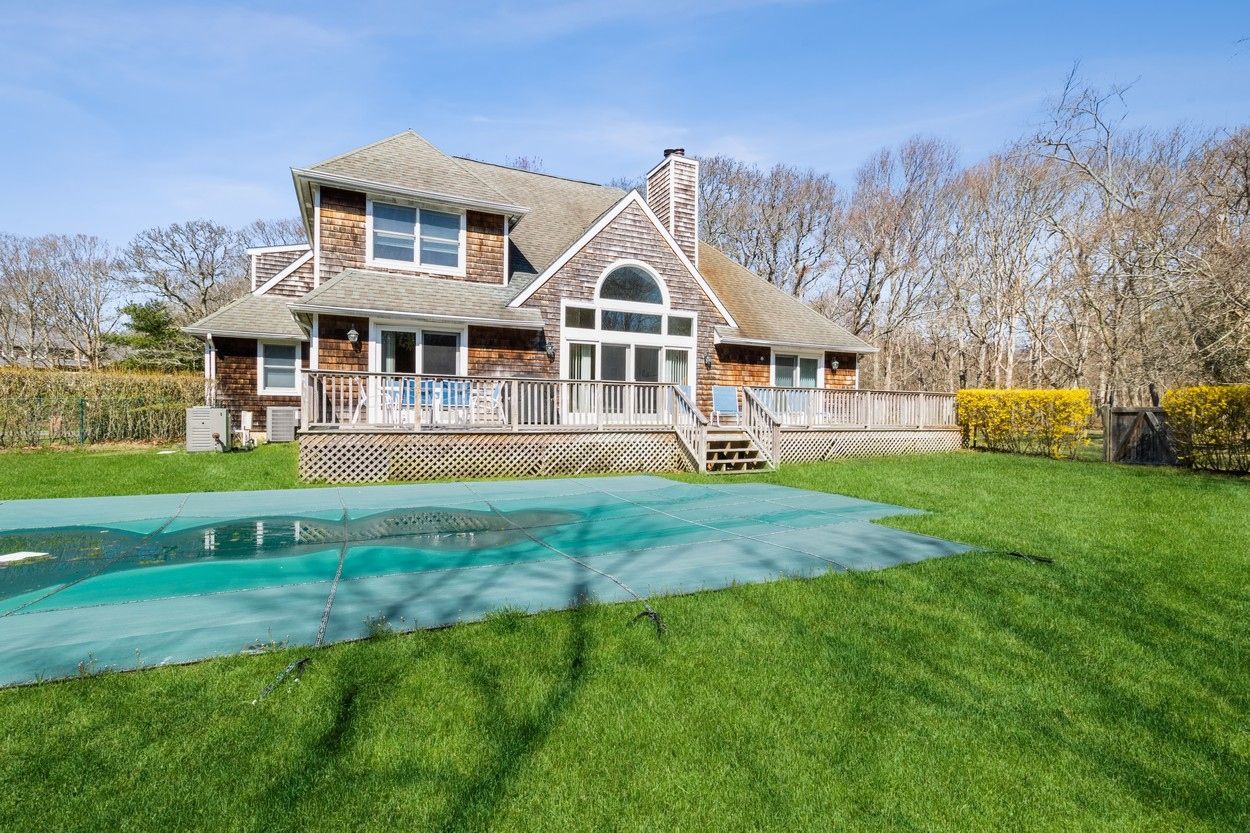 Southampton Post Modern set on 1+/- acre of landscaped grounds with privacy in mind for family and entertaining guests. This centrally aired home offers four well-proportioned bedrooms, including a first floor master with access to the deck, three full baths and an open floor concept featuring a light-filled living room with fireplace and double-height ceiling and a dining area, each with sliders to an expansive deck overlooking a heated pool