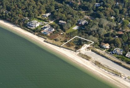 Ideal building parcel with 100 feet of bulk headed frontage on beautiful sandy beach. Glorious sunsets and clean clear water for swimming and boating. Bring your architect and ideas for that consummate Hamptons beach house. Approvals in place for a 4 bedroom home with waterside pool.