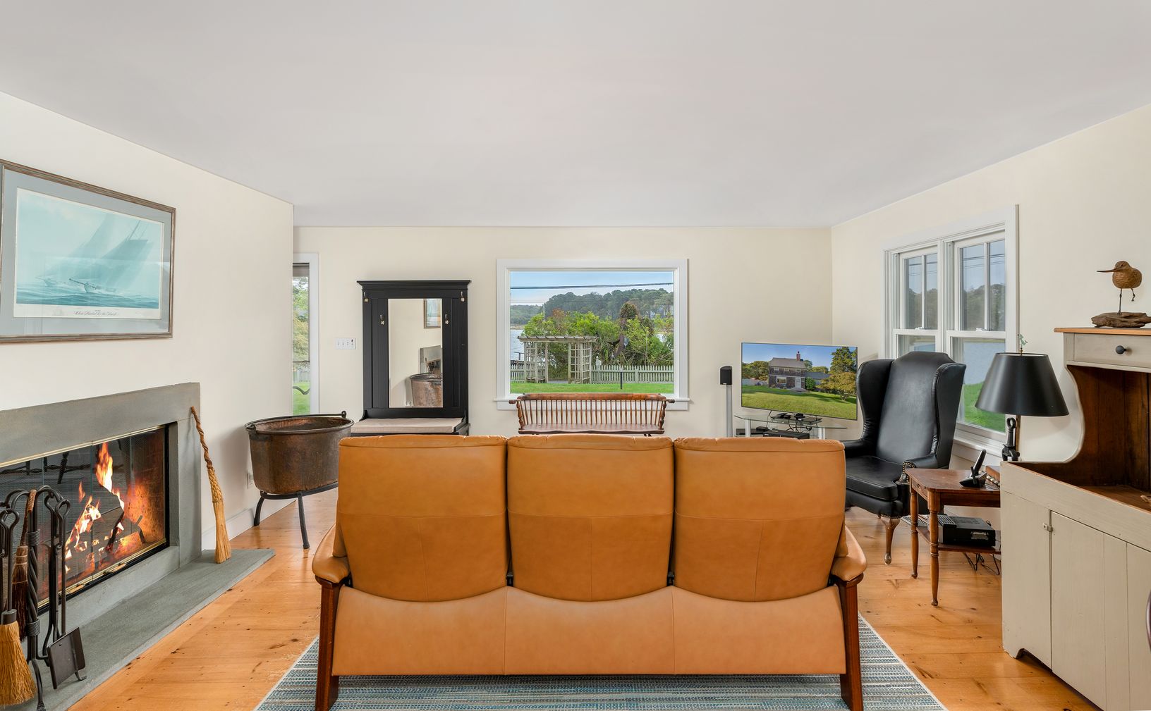 Gorgeous Waterview Two Story Cedar Shingle Cottage with Dock on Sheltered Pond with Deep Water Access to Peconic Bay and right of way close access to Peconic Bay Beach. Charming Open Living Room with Fireplace & Wide Plank Flooring, Dining Area, & Eat At Kitchen. 2 Bedroom, 2 Bathrooms. Available for week of US Open Golf Champioonship June 15 to June 21, 2026