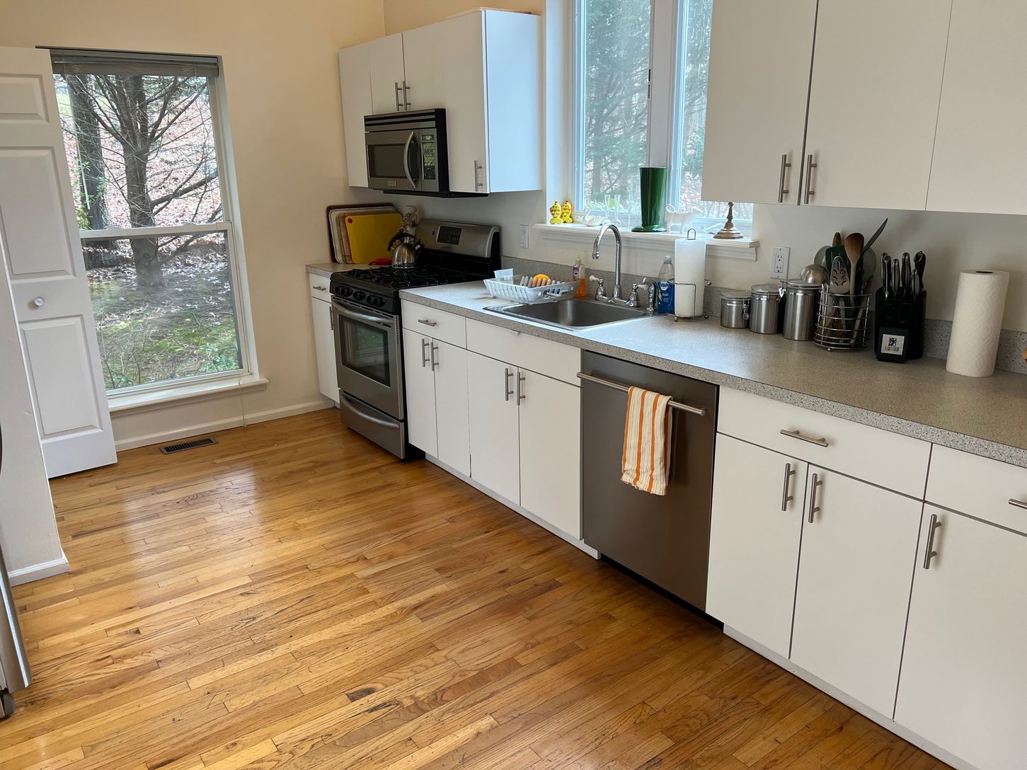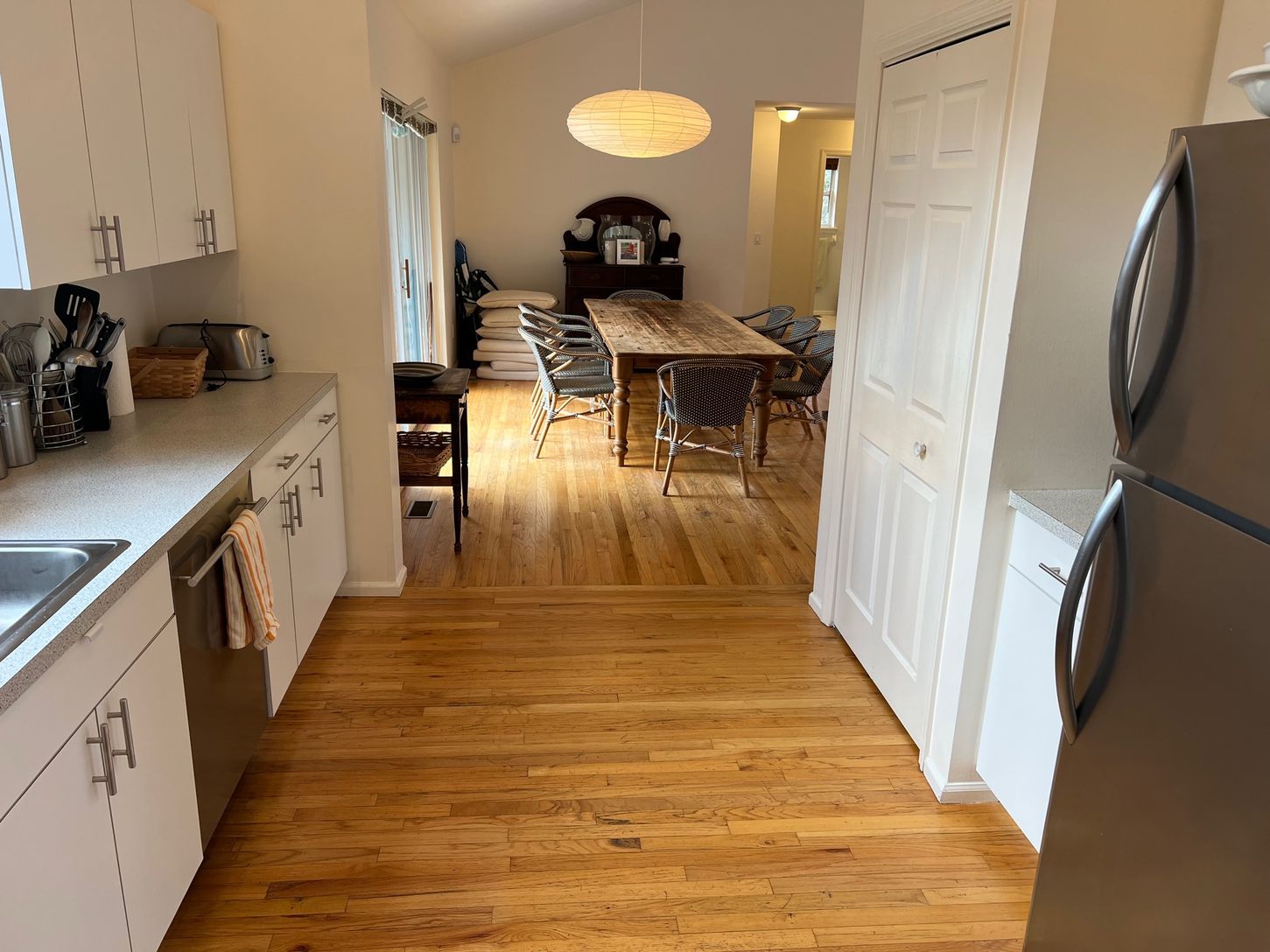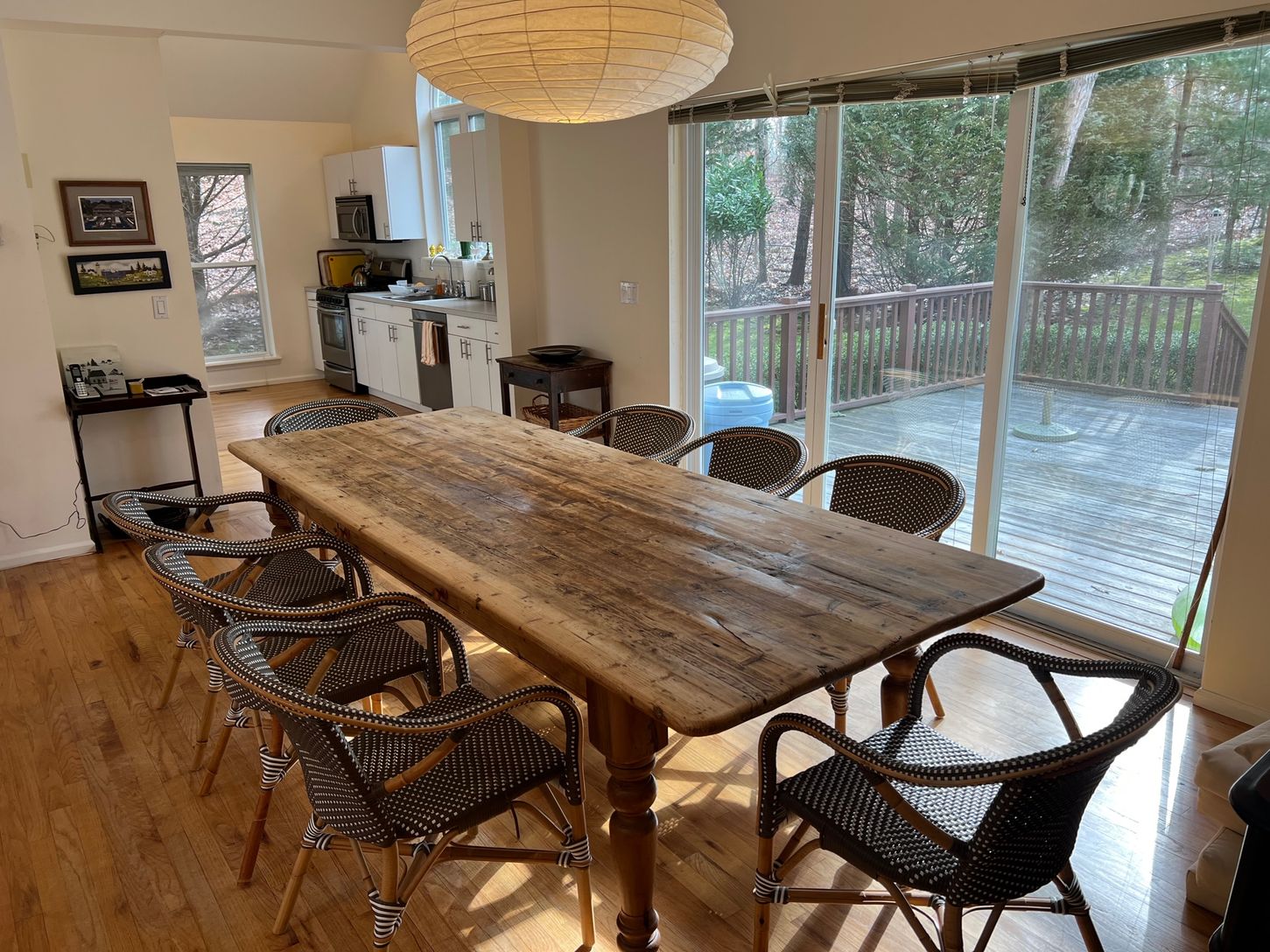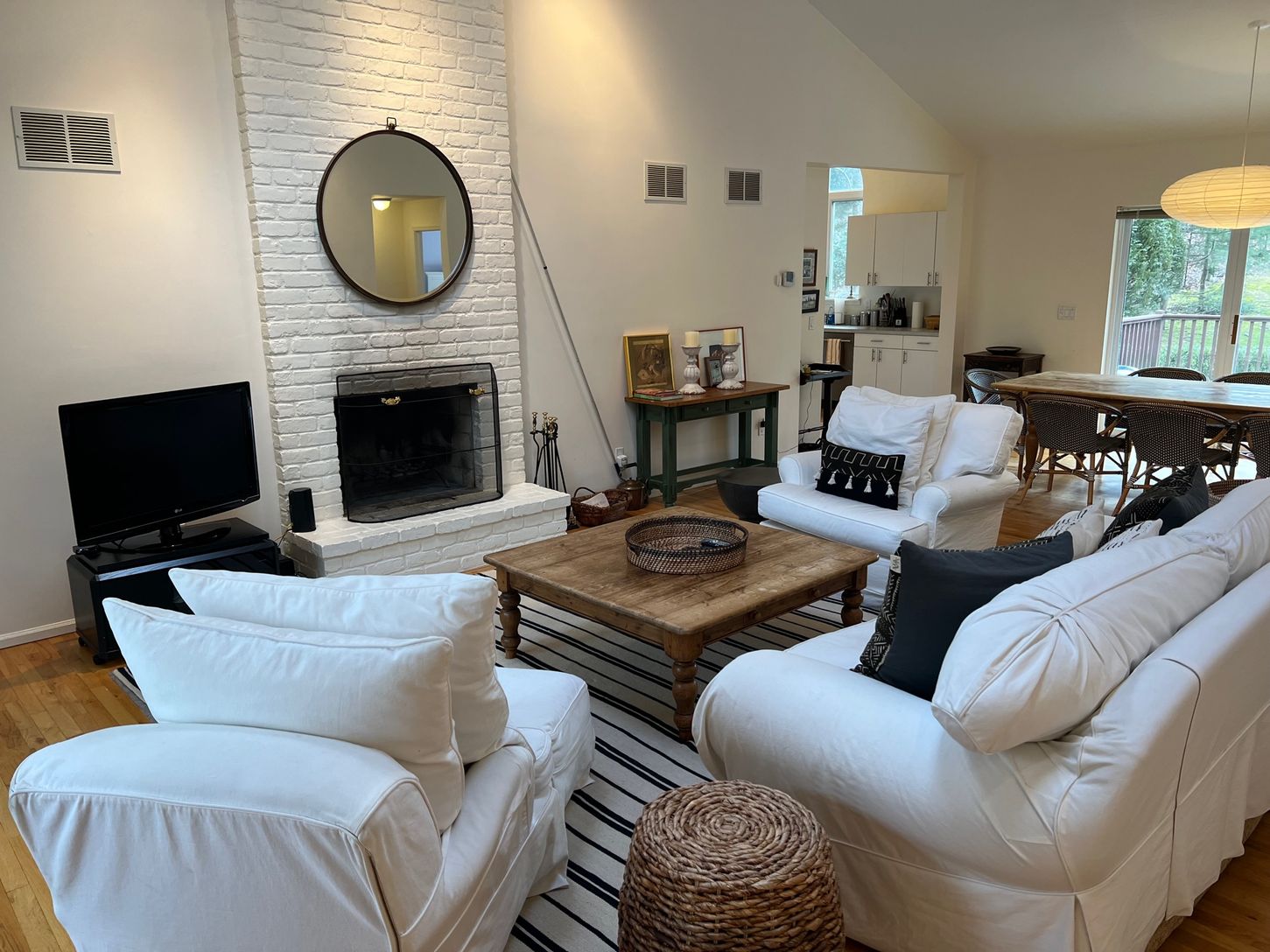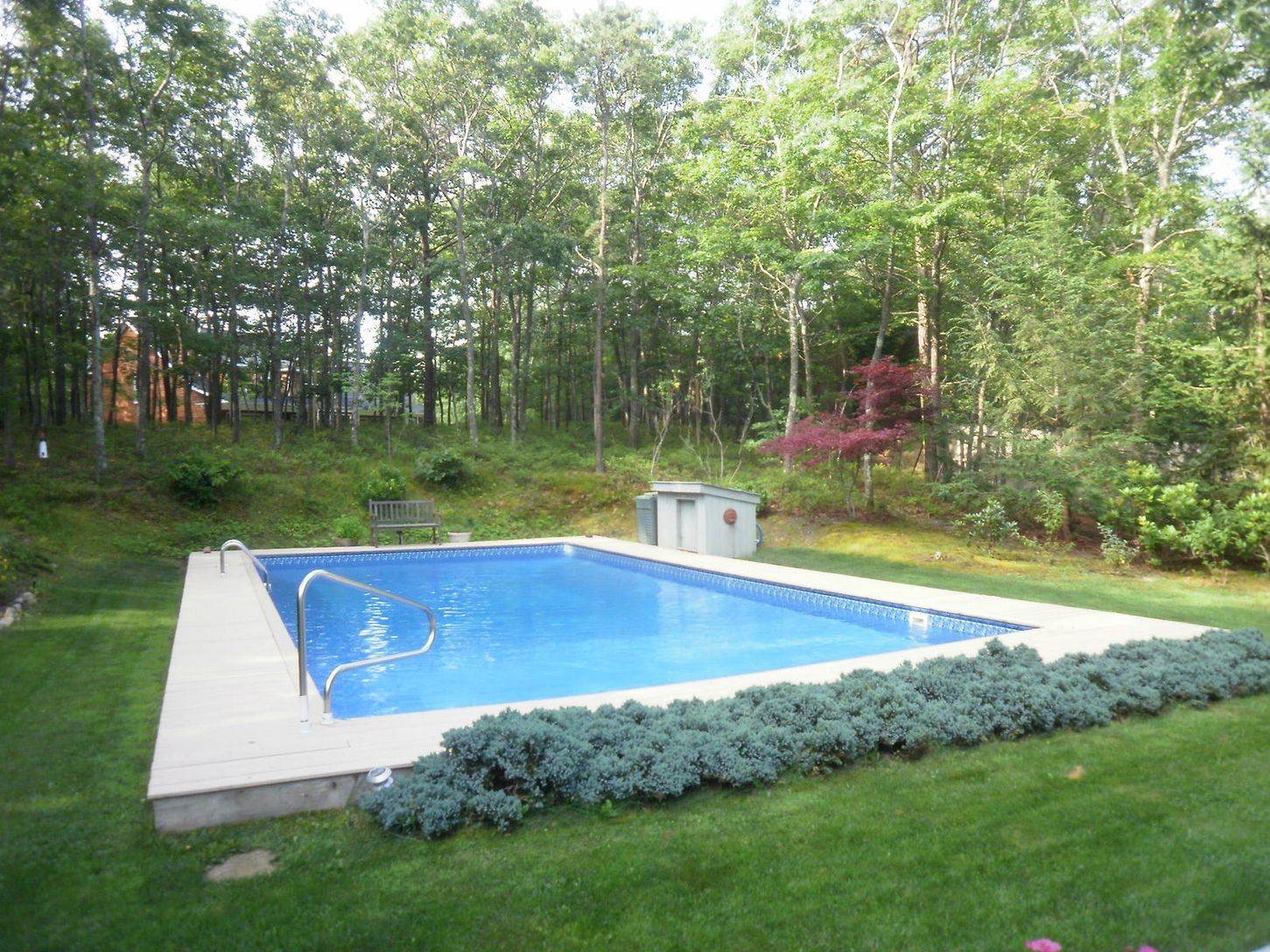 Just listed and situated on.59 acre. Great Location, close to town,convenient to East Hampton Village, ocean, bay and Sag Harbor. One story living at its best with vaulted ceiling living/dining room, fireplace, open plan kitchen and sliders to pool. Three bedrooms with primary and ensuite bath on one side of house. Two guest bedrooms and shared bath on opposite side of house. Full basement suitable for finishing
