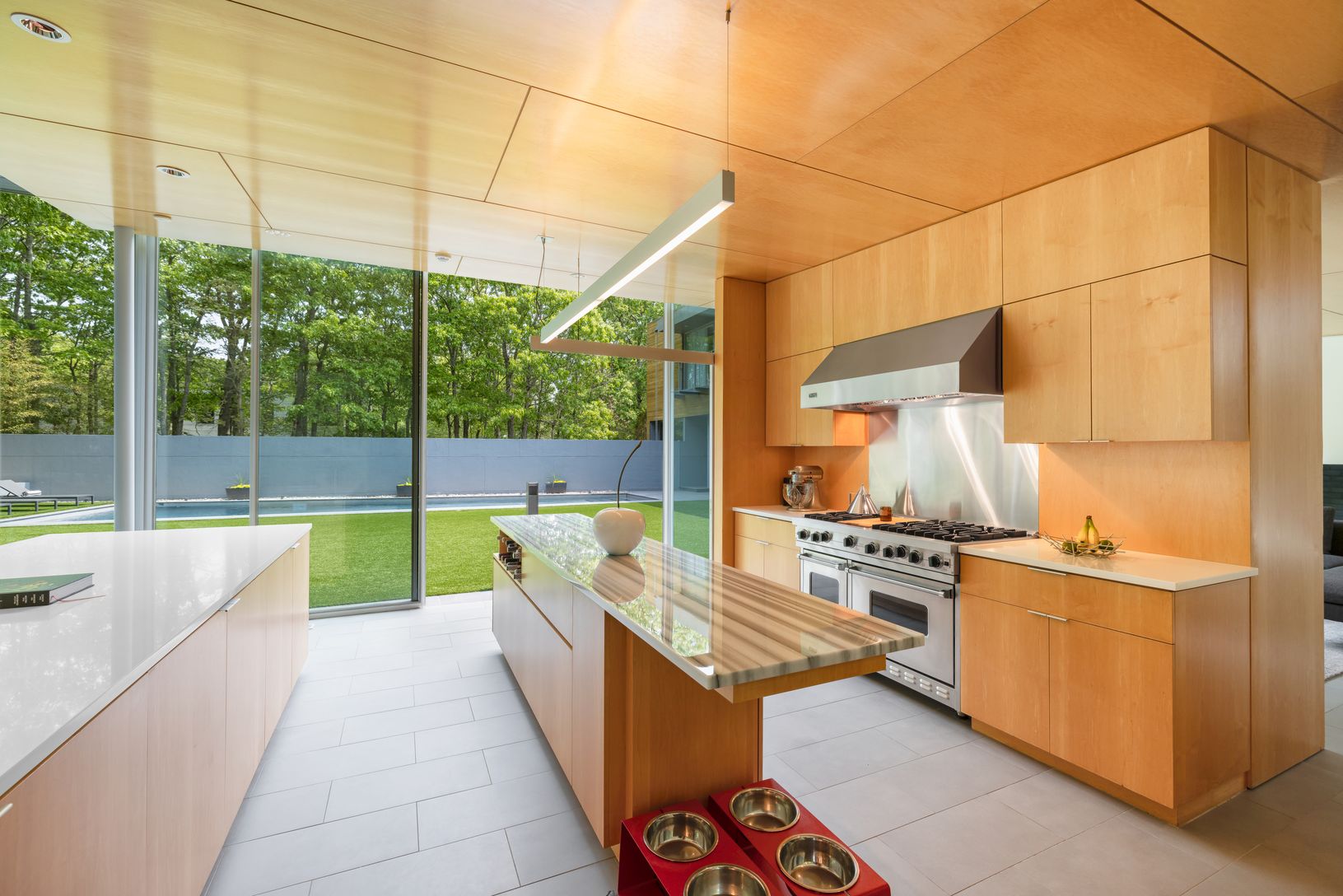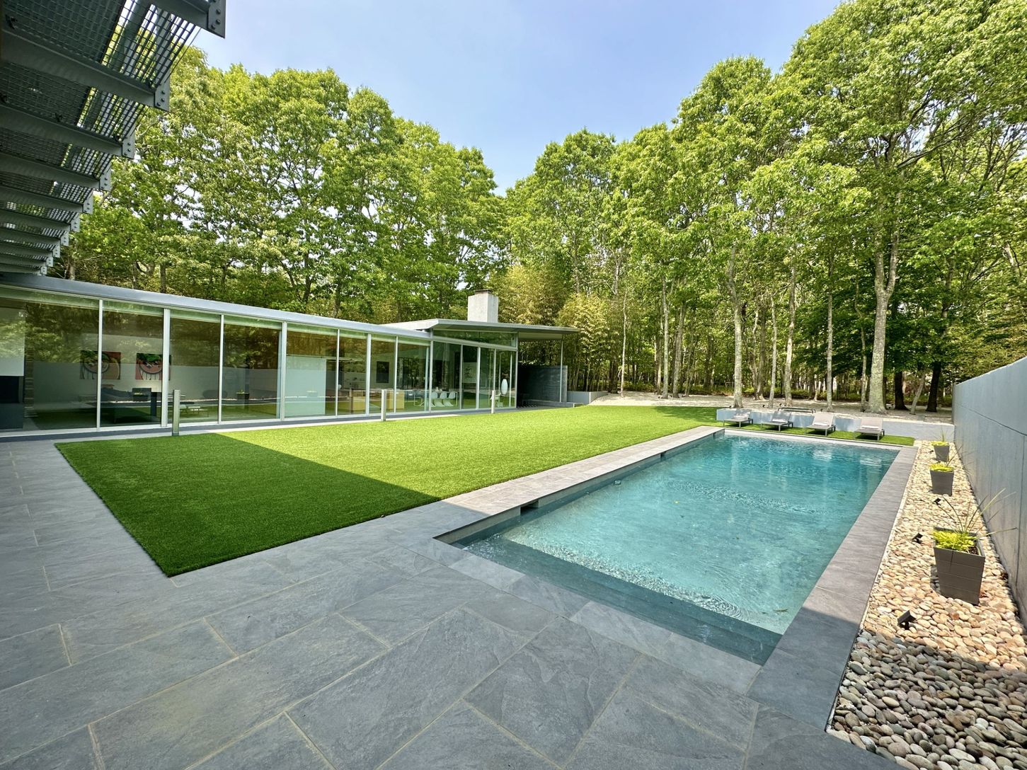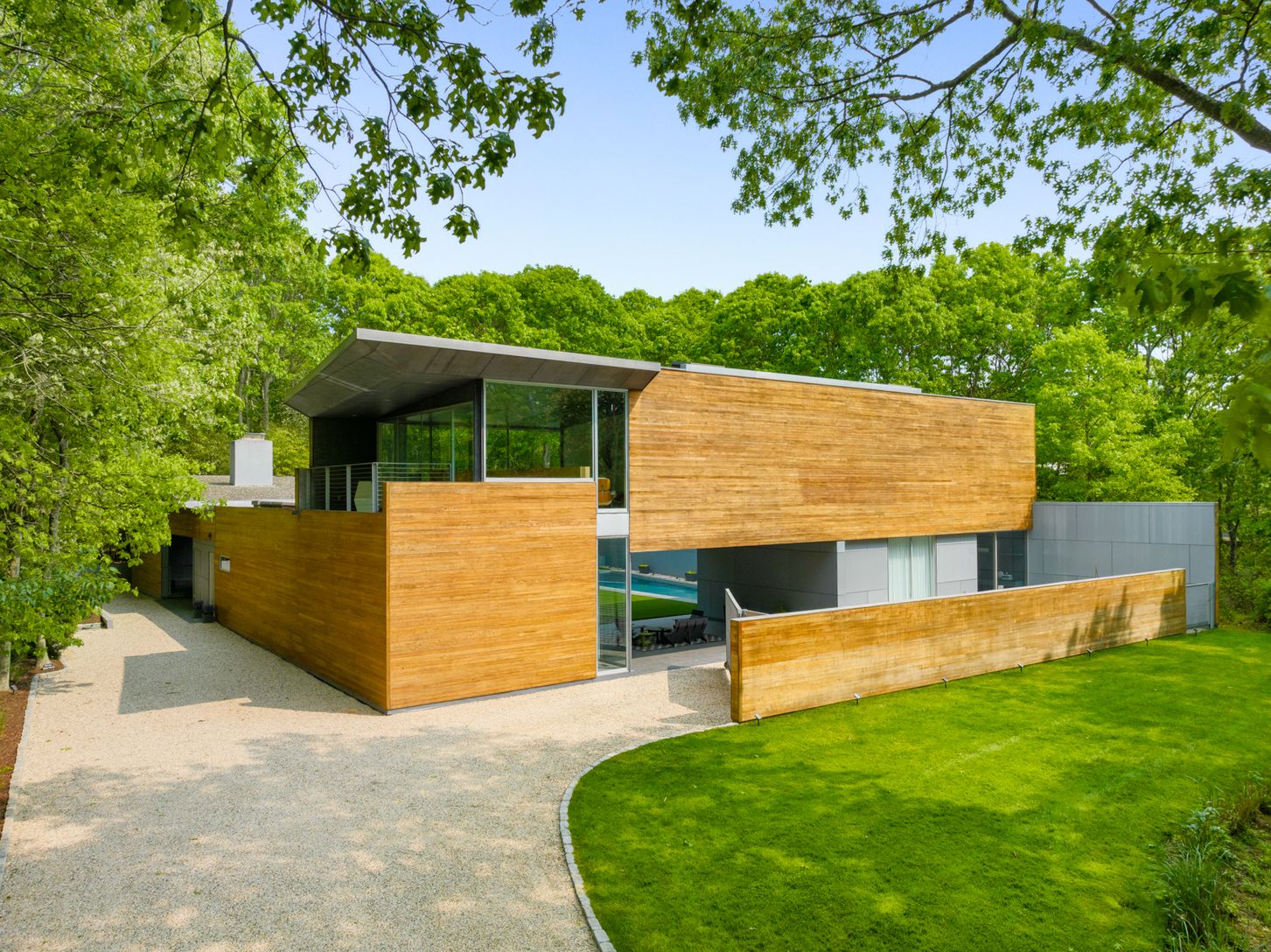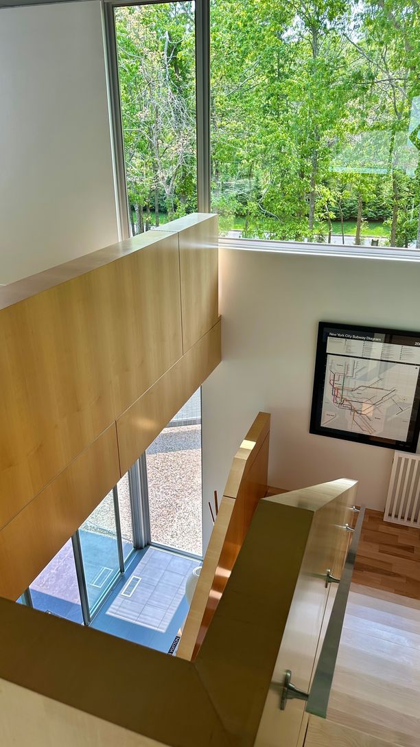 Built as part of an exclusive collection of modern Hamptons homes developed by Harry “Coco” Brown and architect Richard Meier, the house at 20 Forest Crossing harmoniously blends modern aesthetics with natural surroundings that have been updated, transformed and designed by Smith-Miller and Hawkinson Architects. The home's unique design emphasizes the connection between interior and exterior living with floor to ceiling windows and sliding doo