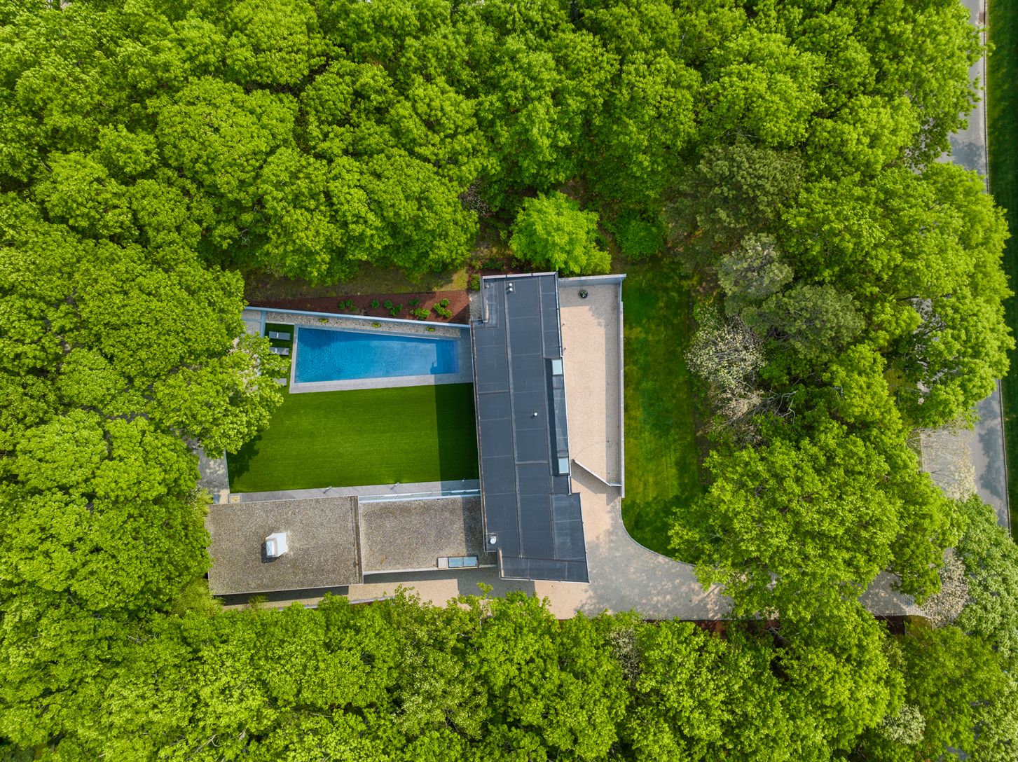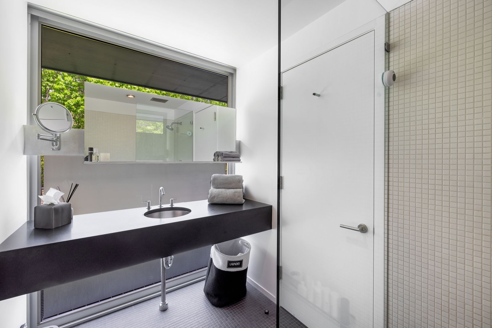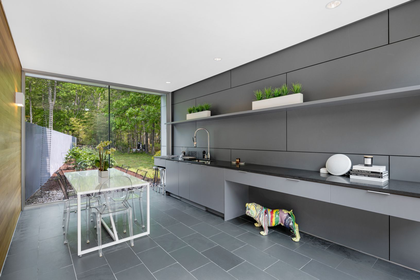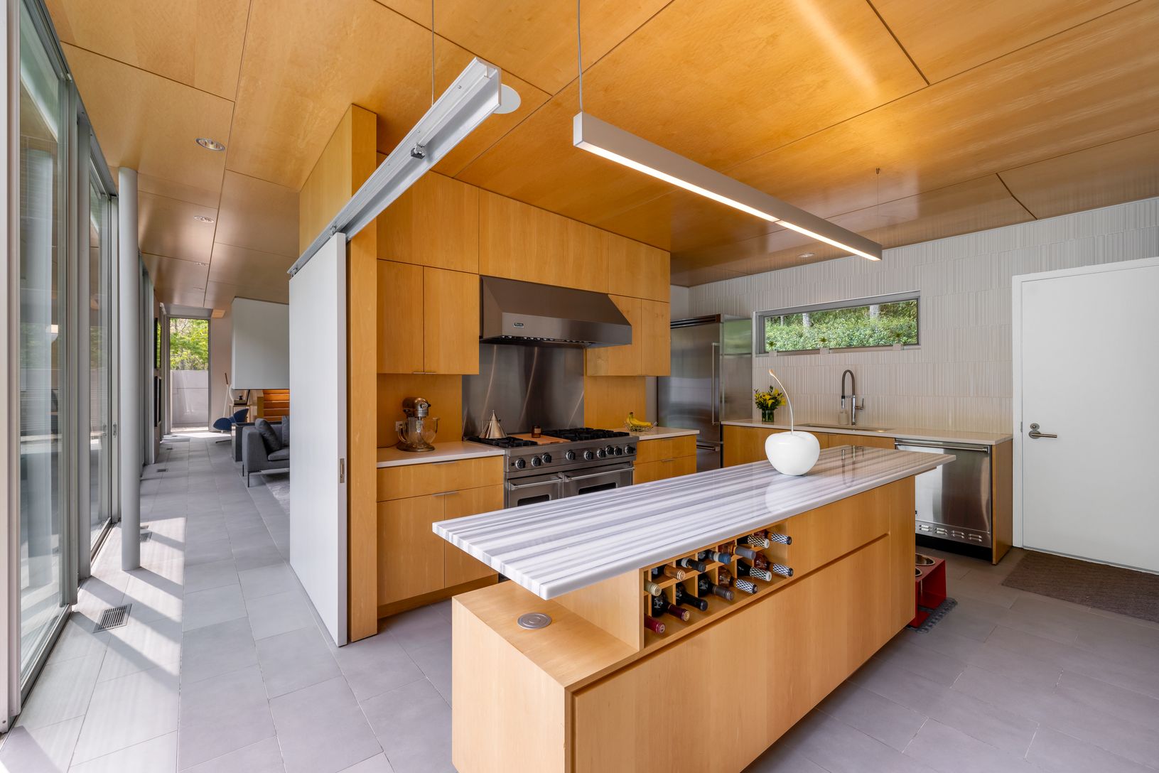 Built as part of an exclusive collection of modern Hamptons homes developed by Harry “Coco” Brown and architect Richard Meier, the house at 20 Forest Crossing harmoniously blends modern aesthetics with natural surroundings that have been updated, transformed and designed by Smith-Miller and Hawkinson Architects. The home's unique design emphasizes the connection between interior and exterior living with floor to ceiling windows and sliding doo