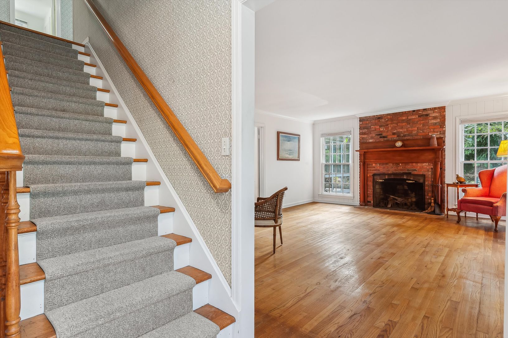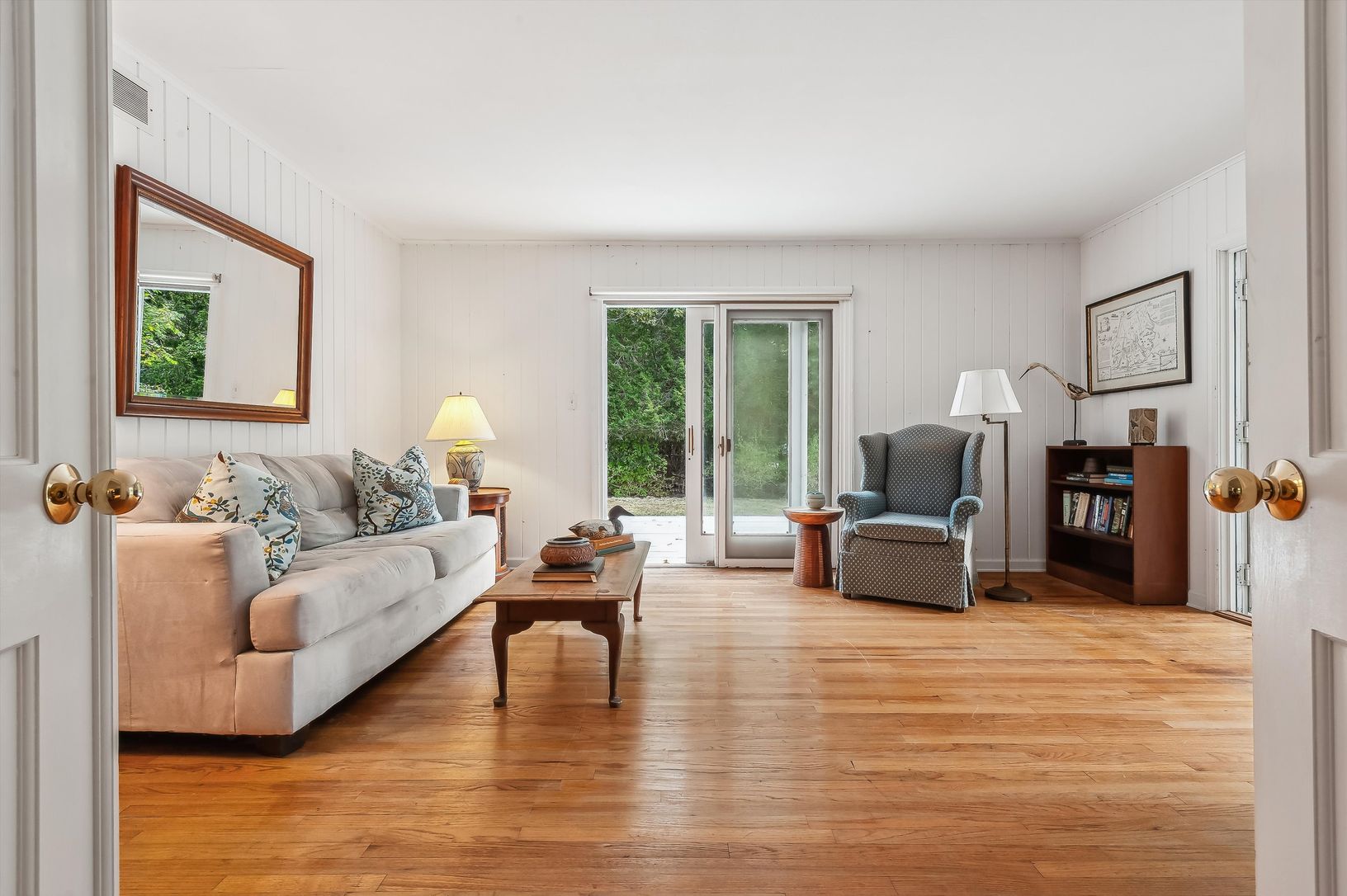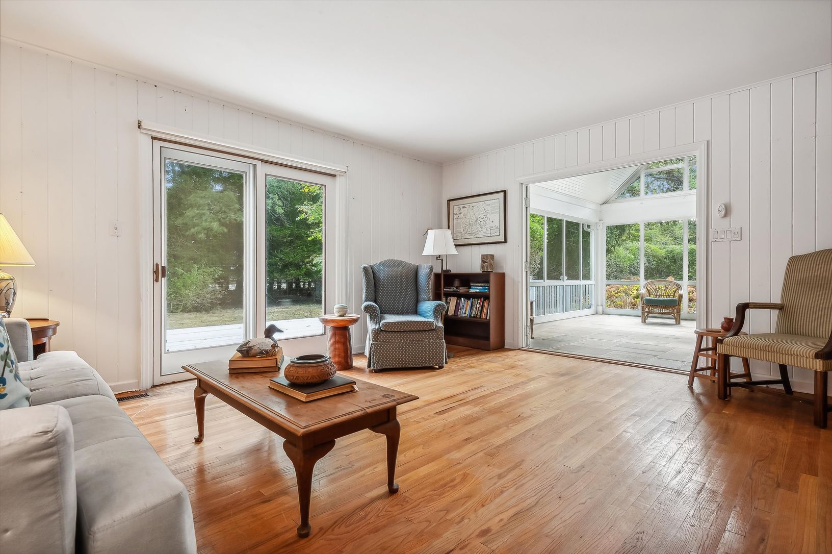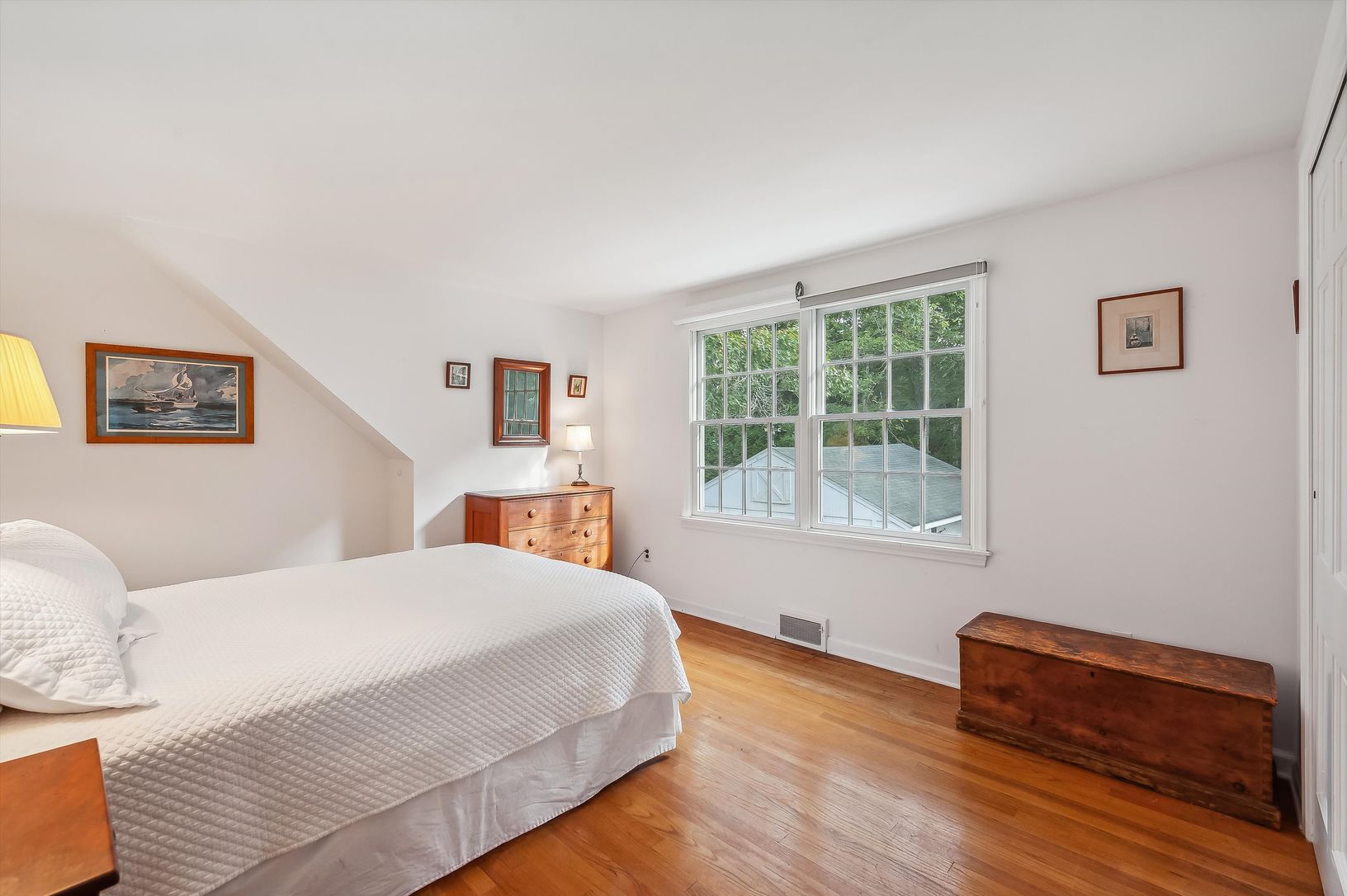 New to market: a cheerful 3 BR/3 BA shingle-style cottage located on a quiet street in the heart of desirable Quogue Village. The main floor offers plenty of living space: there's a large living room with wood-burning fireplace, a family room/den that opens to an airy screened porch, a formal dining room, eat-in kitchen, and a full bath. Upstairs is a generously-sized primary bedroom with en-suite bath and walk-in closet, two guest bedrooms, a