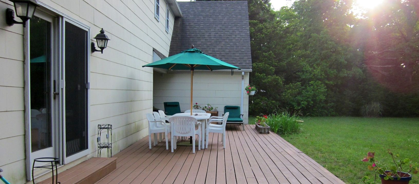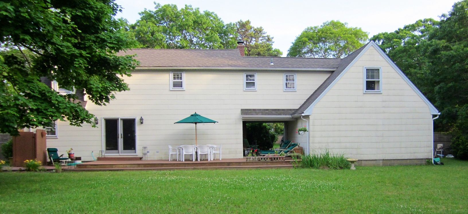 Charming Hampton Bays home with 4 bedrooms, 3 baths, living area with high ceilings and wood burning fireplace opens to eat-in kitchen with sliding doors to the beautifully