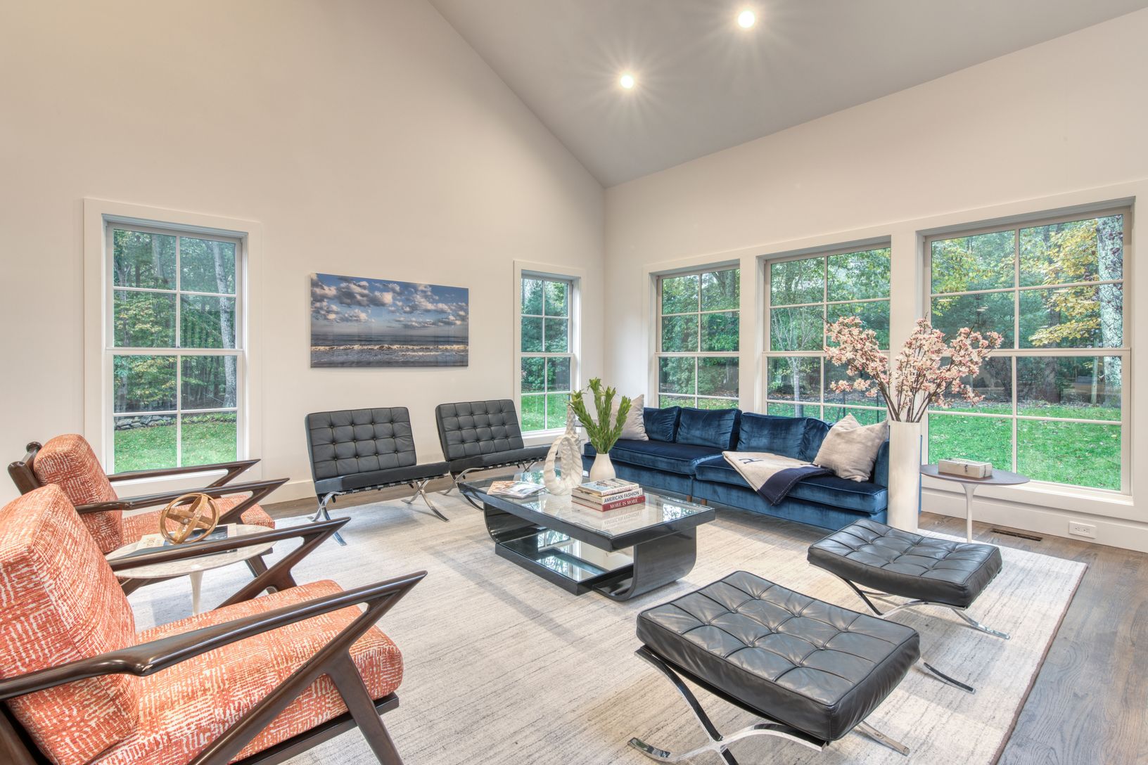 This elegantly crafted, completely renovated home offers luxury and comfort in a coveted Amagansett location. Inside the gates, follow the established cobblestone path to the entry, accented with warm wood and a unique geometrically crafted stair railing. A generously proportioned floor plan welcomes a myriad of scenarios to suit a comfortable lifestyle. There is a double height living room, a large sunken dining room, an enormous great room w