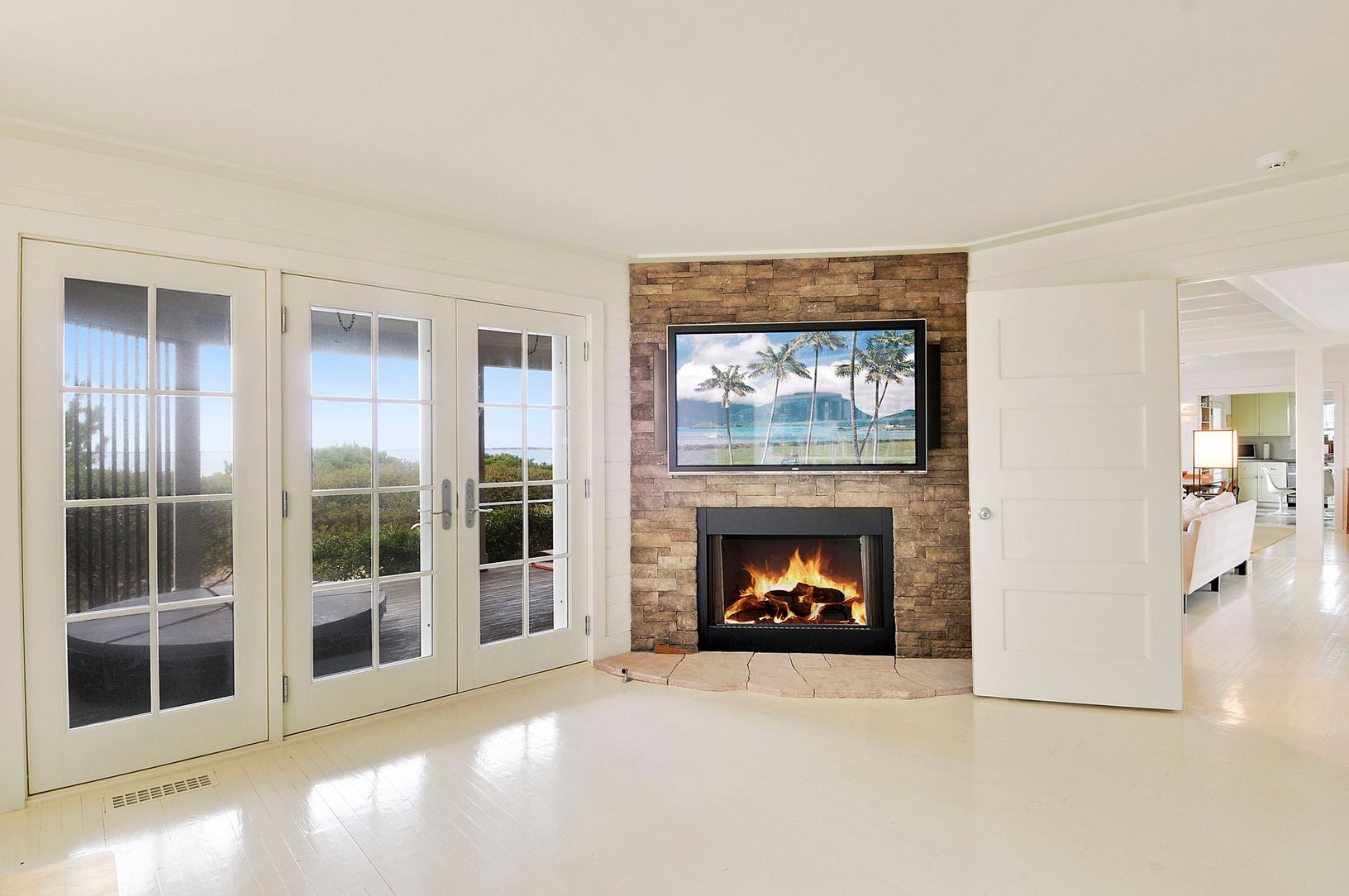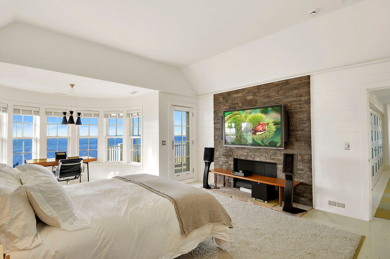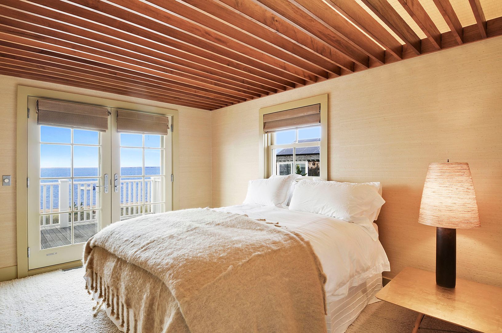 With 126 feet of bayfront, dock, and private path to the beach this beautifully designed and richly detailed modern beach house constructed by master builder Men At Work offers a casually elegant and refined setting from which to enjoy the magnificent water views, bay breezes, and brilliant sunsets. On the main level, open eat-in-kitchen with Viking appliances gives to dining/living area with stacked stone fireplace and expansive views, met by