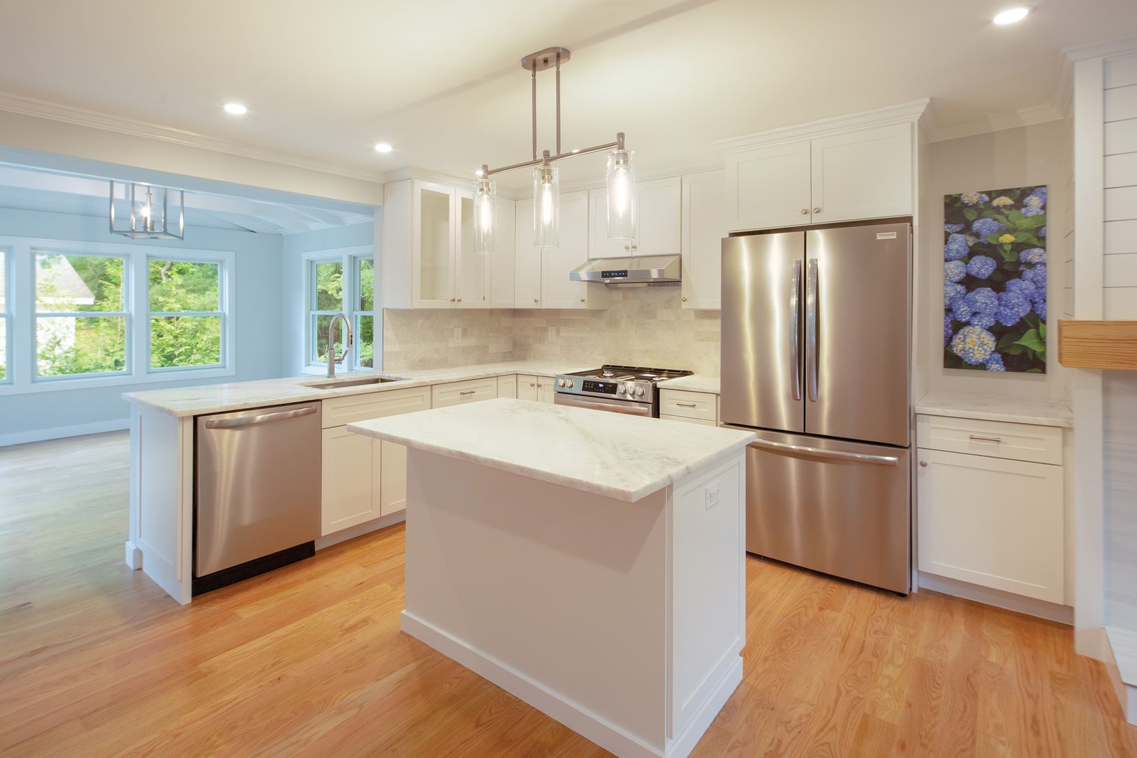 This beautifully gut-renovated home with its classic Mansard roof offers the perfect blend of timeless architecture and modern comfort. Featuring three bedrooms and two-and-a-half baths, the bright and airy interiors include a brand-new kitchen with stainless steel appliances, quartzite countertops, and custom cabinetry. A sun-drenched living room with a shiplap fireplace creates a cozy retreat, while the vaulted family room with slider to lar