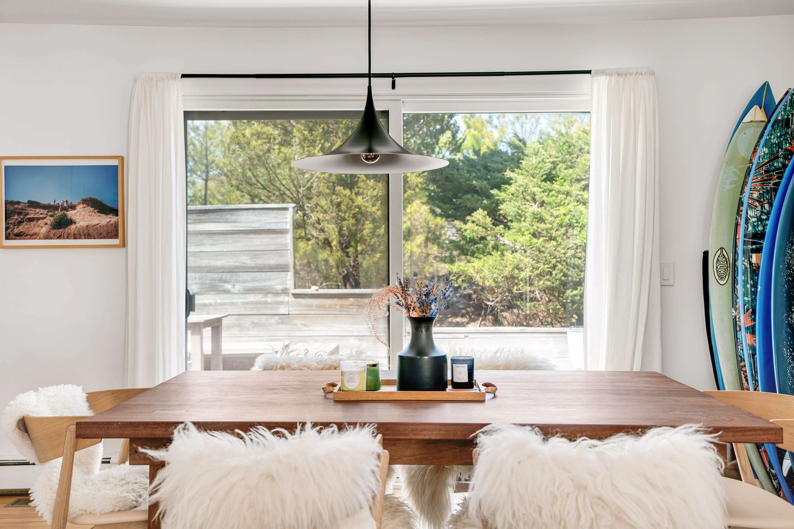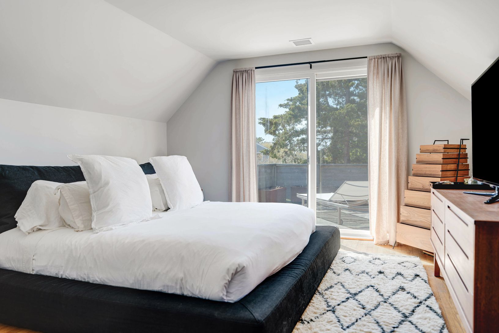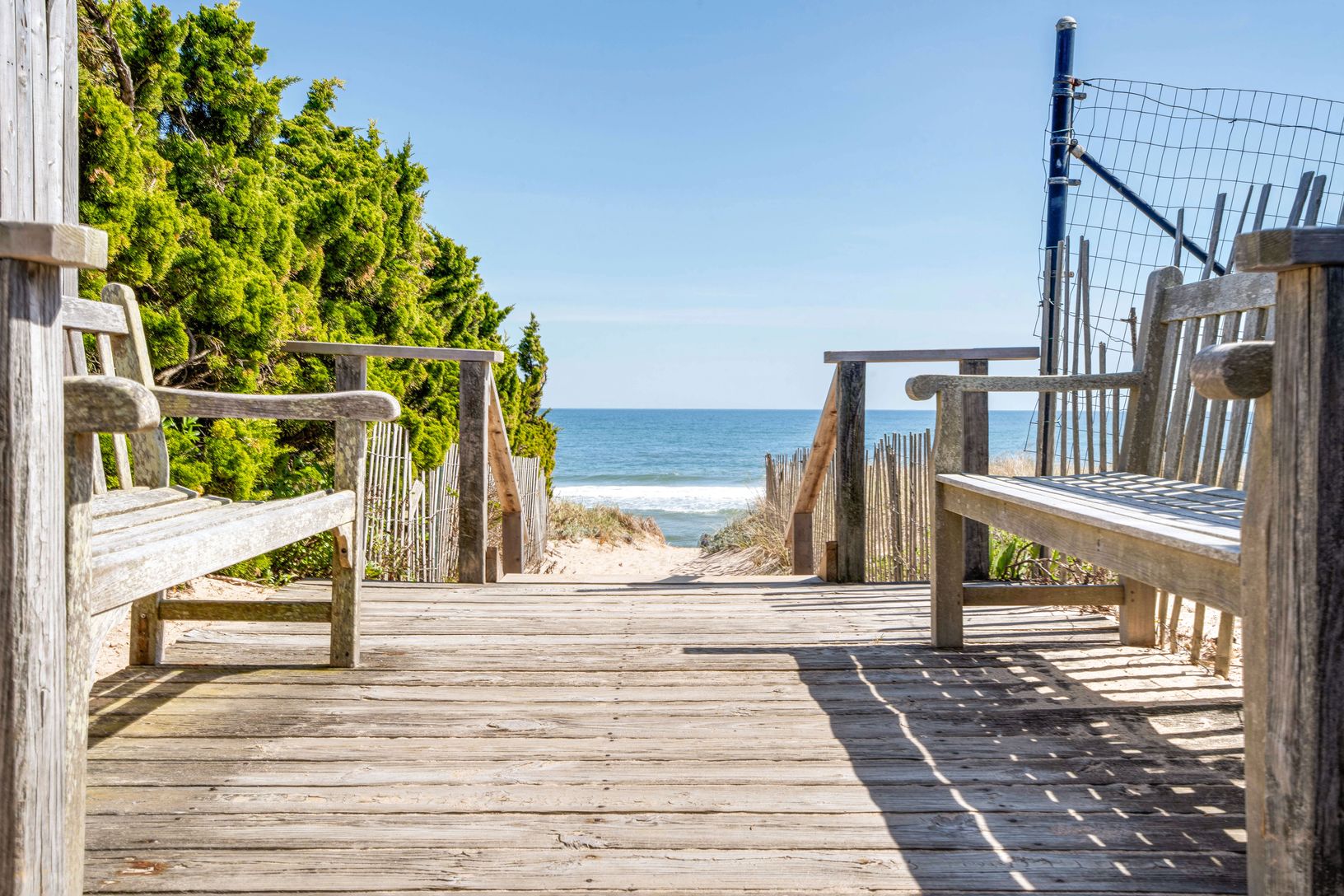 Steps from the highly sought after, privately deeded Dunes beach, this 4 bedroom, 2 bathroom residence from the architect of the Crow's Nest and the Atelier by Studio Zung residences is ready for Summer. On the first floor is two bedrooms, one bathroom, with an open chef's kitchen, dining room and open living room. Sprawling decks surround the entire residence with multiple dining and lounging locations, a serene outdoor shower and a Wolf prof