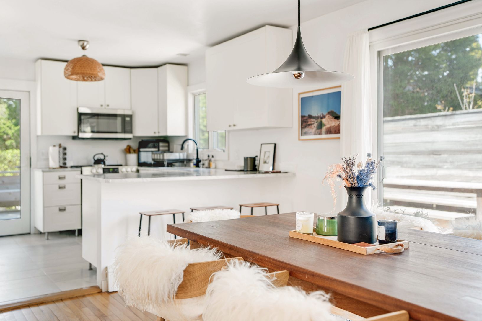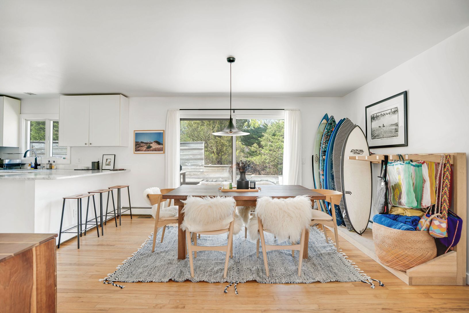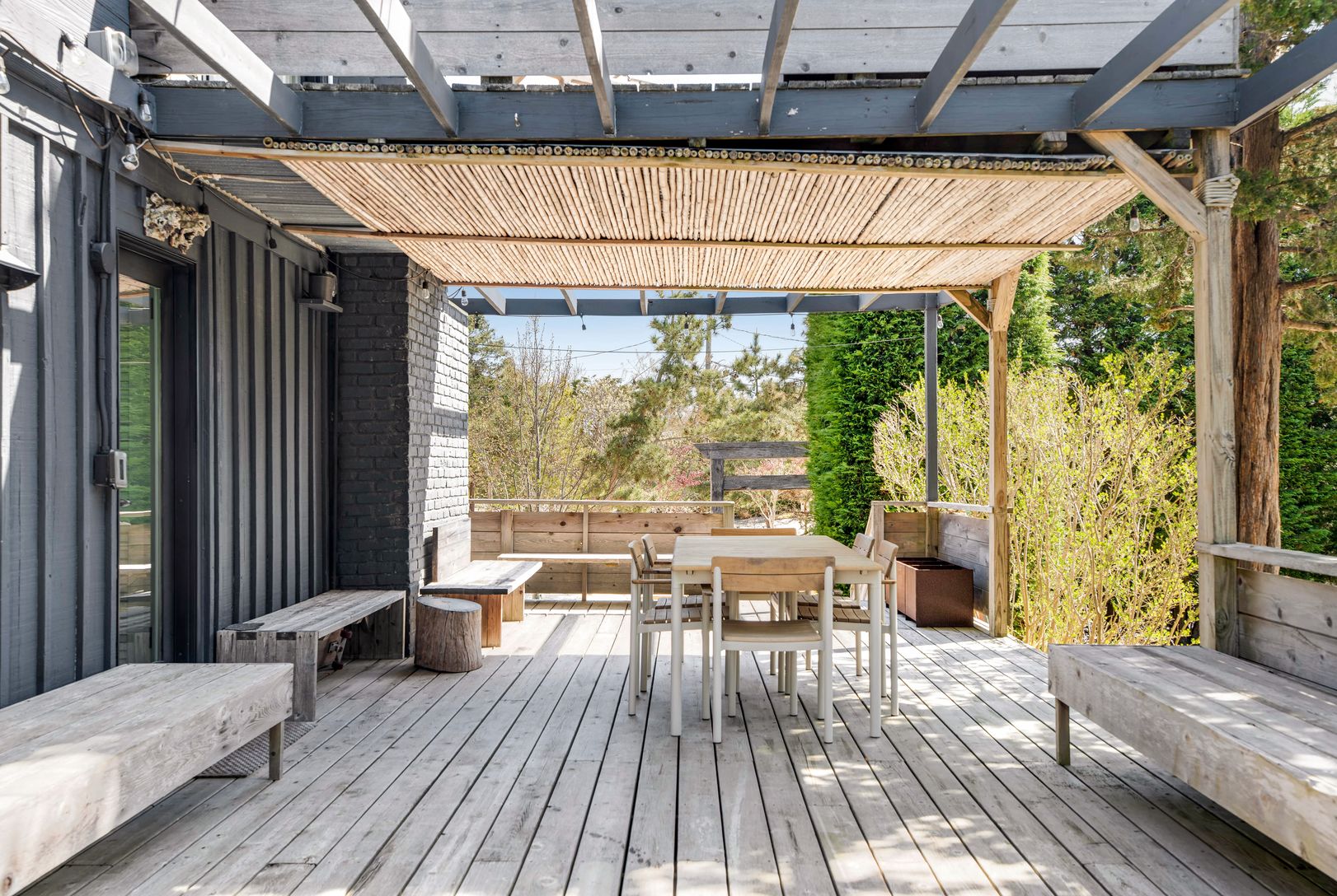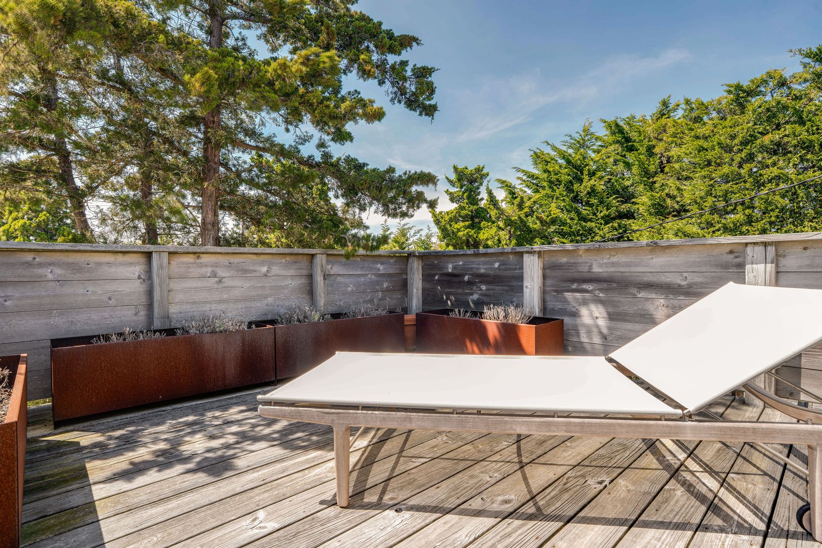 Steps from the highly sought after, privately deeded Dunes beach, this 4 bedroom, 2 bathroom residence from the architect of the Crow's Nest and the Atelier by Studio Zung residences is ready for Summer. On the first floor is two bedrooms, one bathroom, with an open chef's kitchen, dining room and open living room. Sprawling decks surround the entire residence with multiple dining and lounging locations, a serene outdoor shower and a Wolf prof