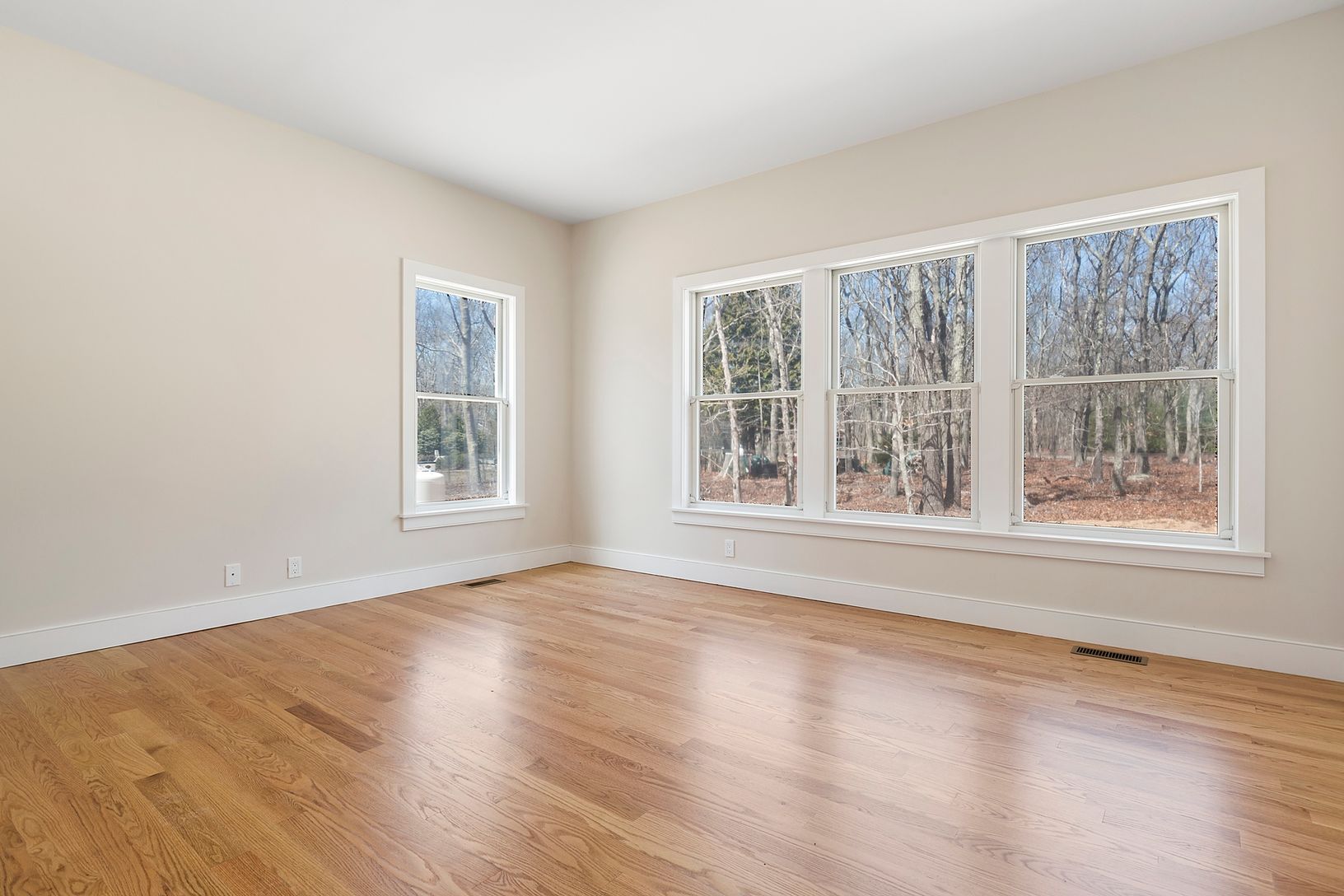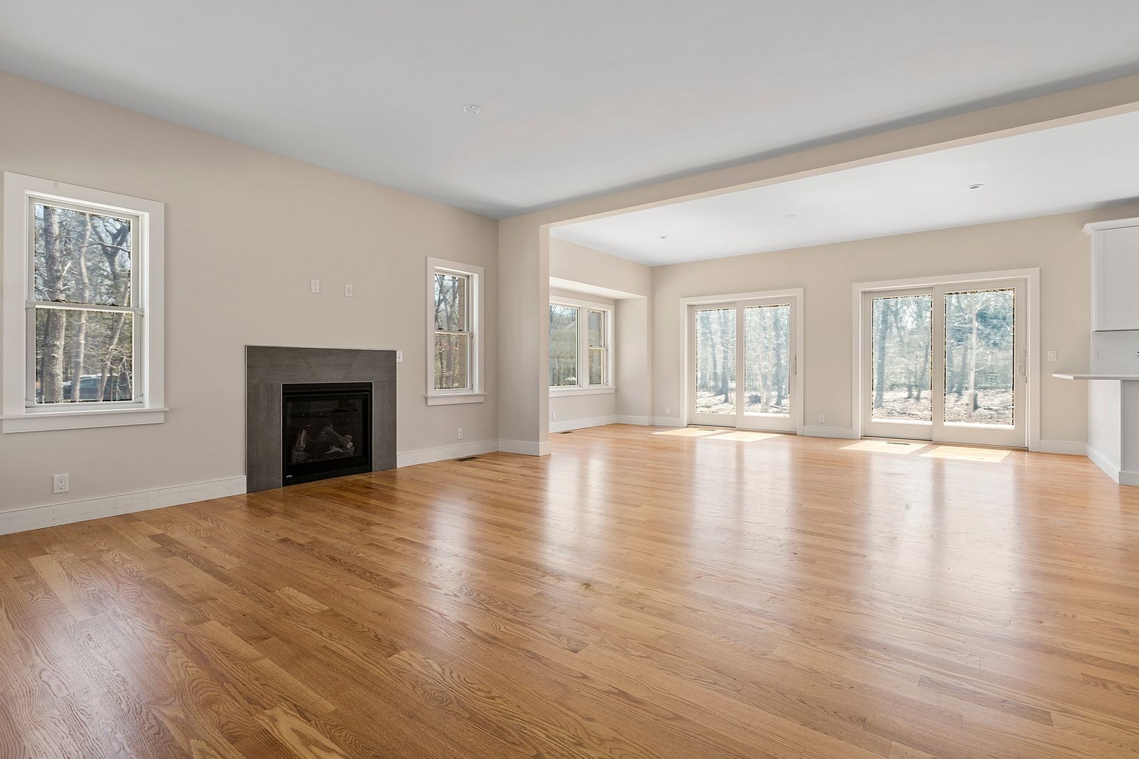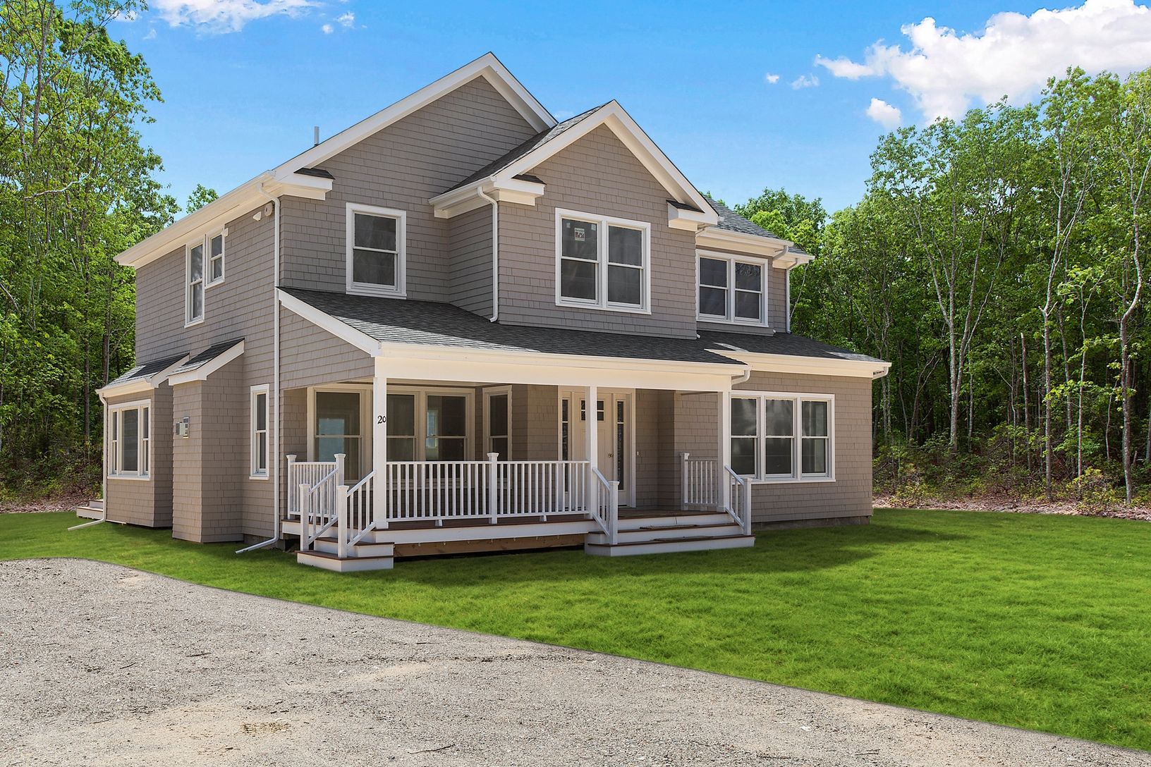 New Farmhouse style 4 bedroom 4 1/2 bathroom Home to be built on shy 1 acre parcel. Open living, dining and kitchen floor plan. Cabinetry in kitchen will be White Craftsman Style maple cabinets with granite counter tops. The Dining room has a bay window and sliding French wood doors. Gas burning fireplace in the living room, Mahogany covered front porch and a side entrance. Full sized basement with separate entrance. Room for pool and Garage.