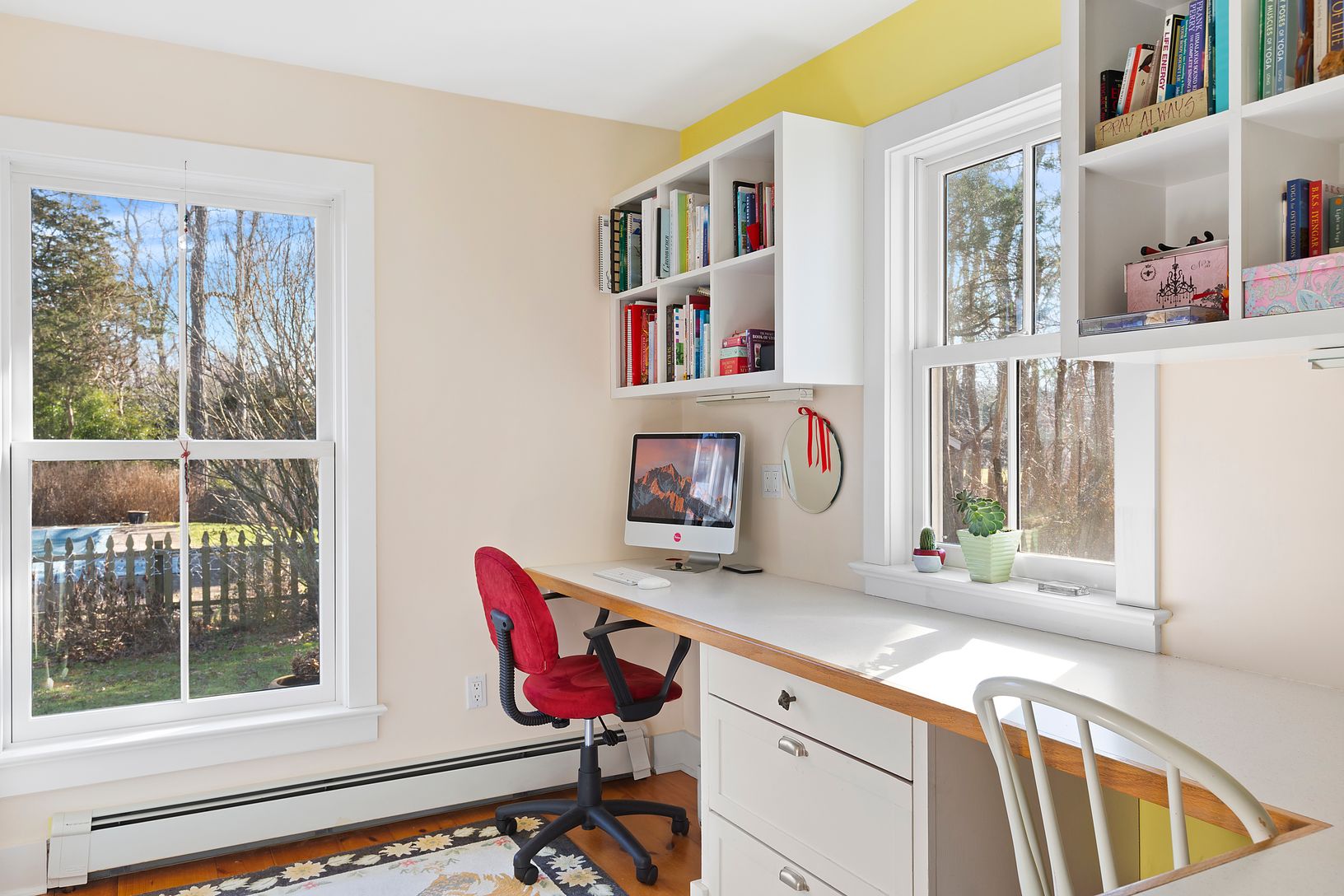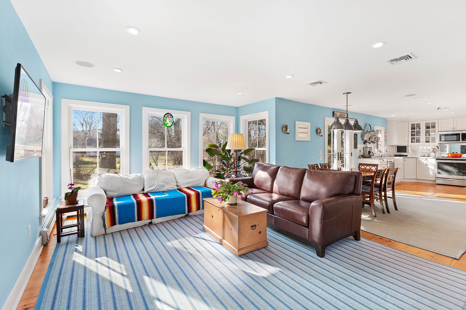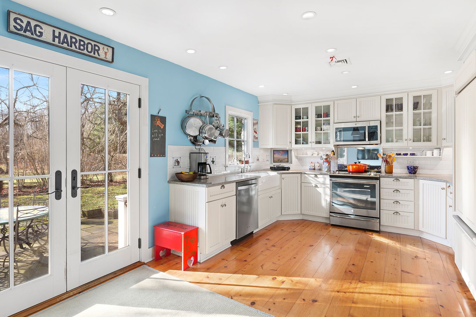 Charming Sag Harbor home on a private road located between Sag Harbor Village and Short Beach. There are 4 bedrooms and 3.5 baths, this home is full of sunshine no matter which room you are in. The gourmet kitchen open out into the living space, surrounded by custom built-ins, a working fireplace, a private office off the entertainment area and a side yard pool. There is a master suite on the first floor with a unique custom bathroom that incl