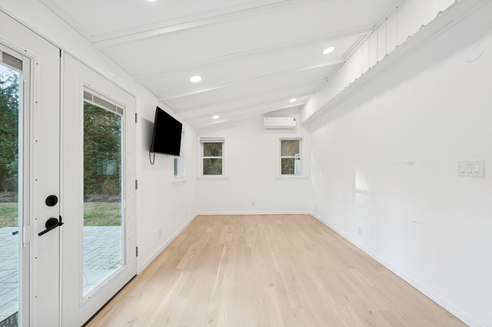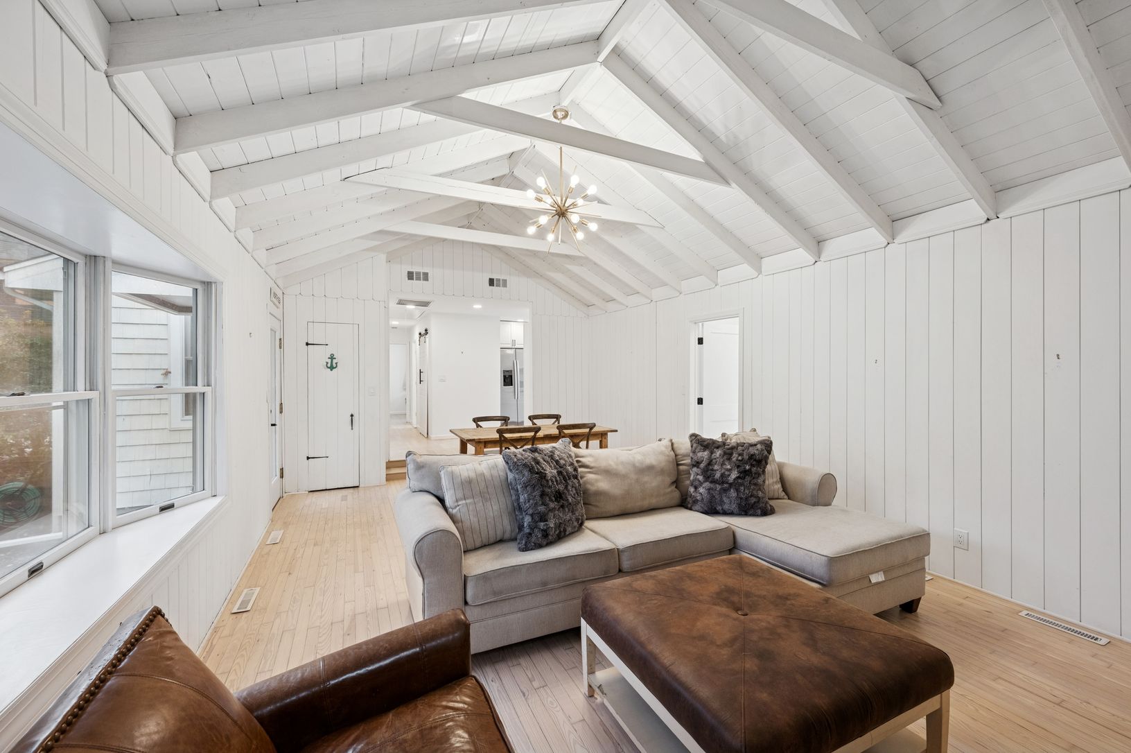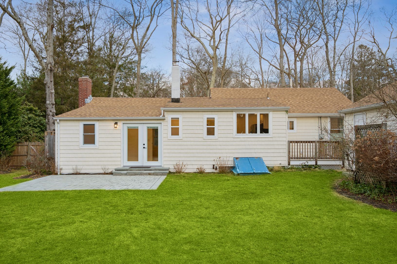 Welcome to 20 Peconic Bay Landing. This charming beach house sits on .43 acres in a bayfront community. As you turn down the road you are immediately welcomed by the distant view of Peconic Bay, which is a quick stroll from your front door to the sand. The home currently offers 3 bedrooms with a flexible, recently completed living area that can serve as either a 4th bedroom or sunroom/den. The comfortable living room offers a wood burning fire