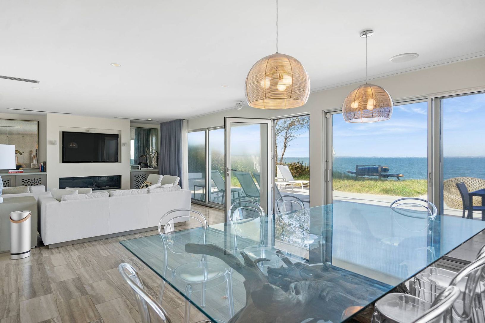 Spend your summer directly on Great Peconic Bay with panoramic water views in this newly renovated waterfront compound. The main house has four bedrooms and a open concept floor plan with expansive water views. Nothing was spared with a chef's kitchen and designer decor. Outside there is ample lounging and open space. Ideal for summer entertaining. There is also a two bedroom guest cottage located on the front of the property. Enjoy complete p