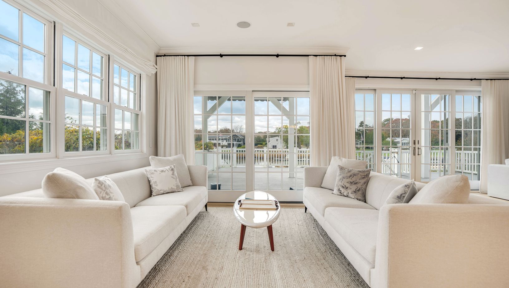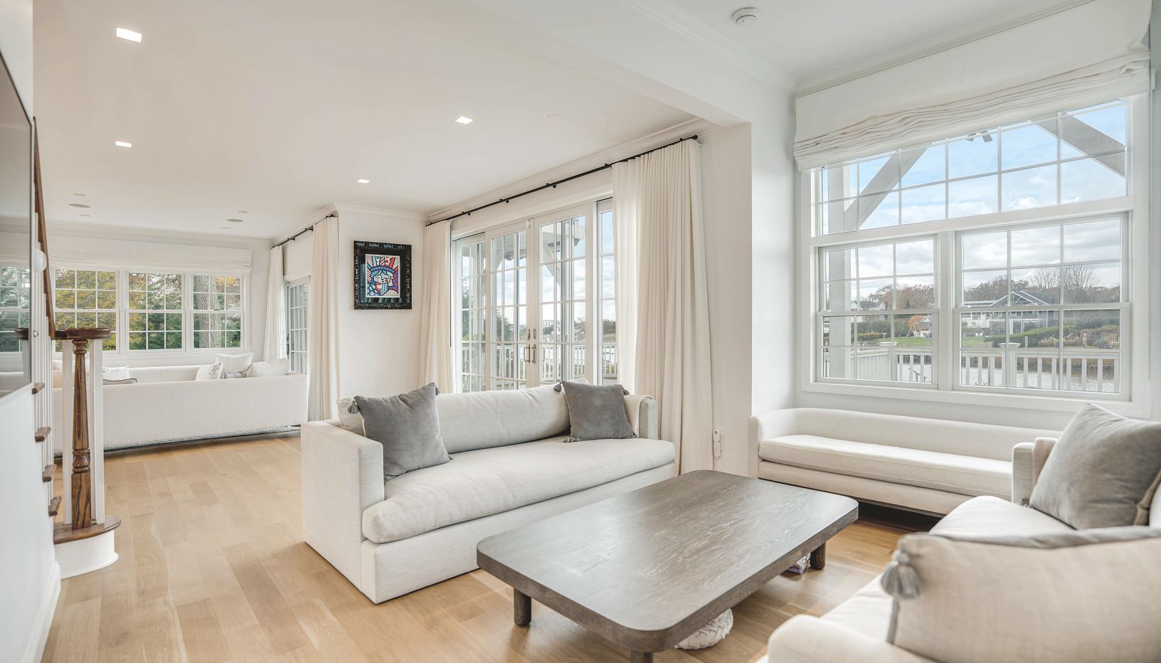 Discover a spectacular hidden waterfront retreat set on nearly a full acre, featuring bulk-headed shoreline and a deep-water dock ideal for boats, jet skis, and all your water pursuits. Reimagined with a significant interior gut renovation in 2021 (following the 2012 renovation), this exceptional property blends modern luxury with timeless Hamptons elegance. The entry sets the tone with a refined, mudroom-style foyer-clean, organized, and beau