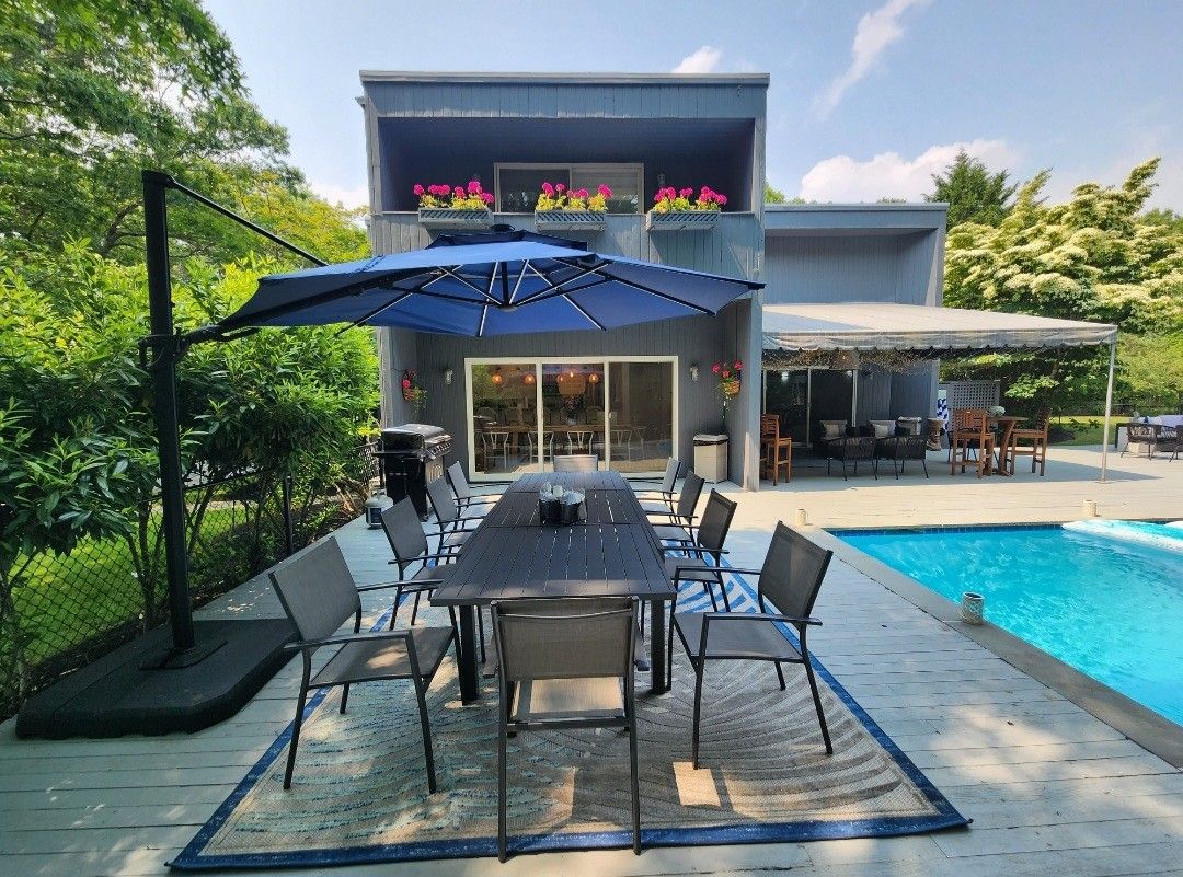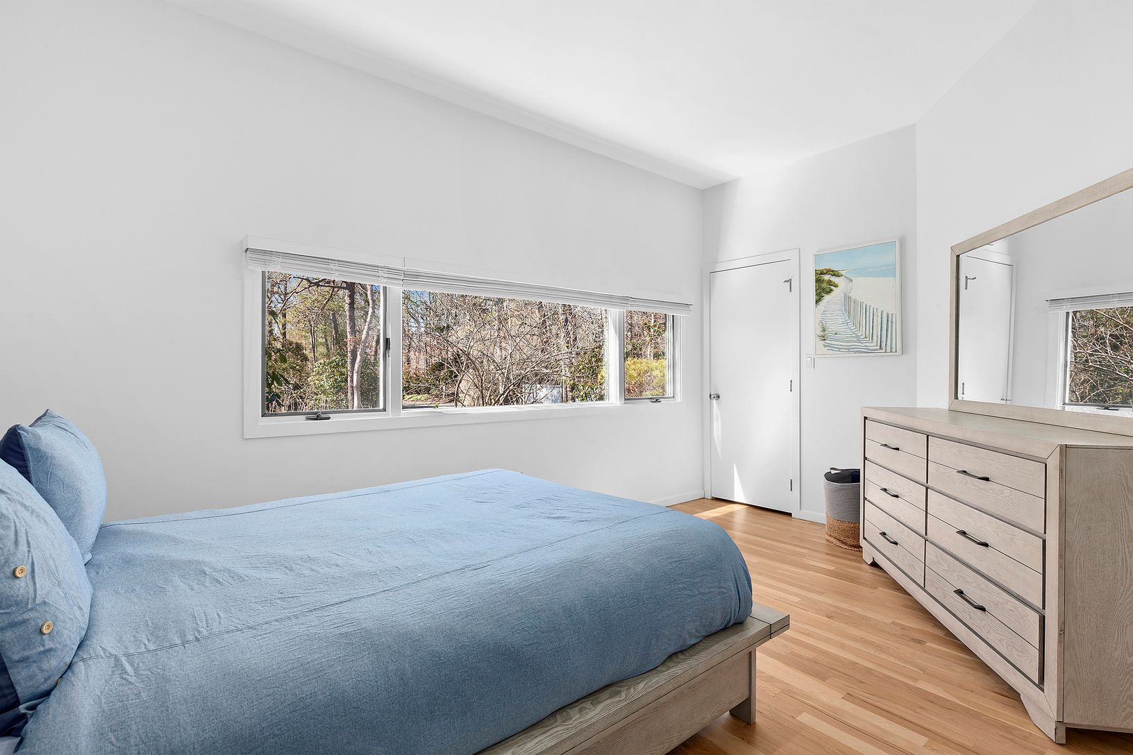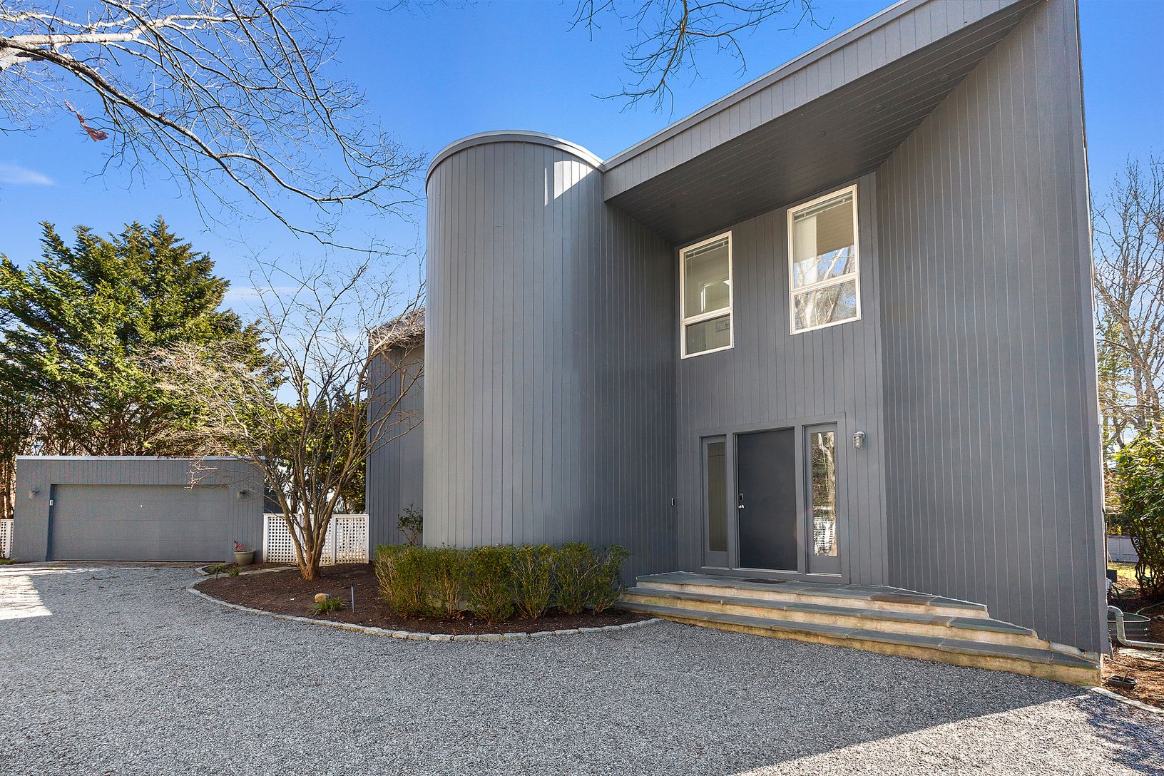Indulge in Hamptons living at this exquisite contemporary residence nestled on over an acre of secluded grounds in Quogue. This chic designer-styled home beckons you to savor the summer in unparalleled comfort. The first floor unveils an expansive open layout, complemented by a stylishly appointed bedroom with an adjoining bathroom. Ascend to the second level, where three generously sized bedrooms, a hall bathroom, and a master suite await. Th