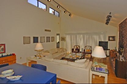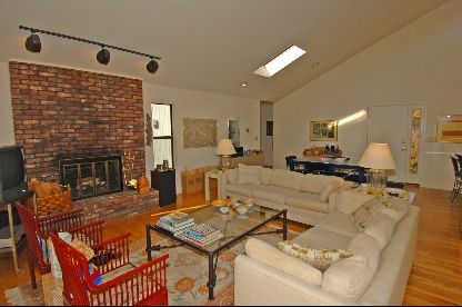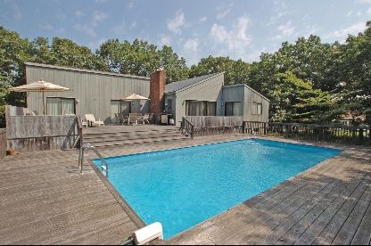 One floor contemporary on .80 of an acre close to Round Swamp Farm. Master suite is on one side of the house, additional bedrooms are on the other side, making it a total of 3 bedrooms and two baths. Fireplace, central air conditioning and heated pool complete the picture for an easy to maintain beach house. Two zones for heat and AC. Exclusive.