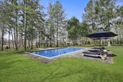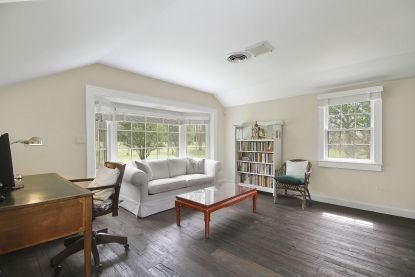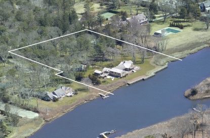 This charming English Country waterfront cottage offers a 20x40 gunite pool with hot tub, 4 spacious bedrooms and 3 1/2 baths, and private bulk-headed waterfront location with dock in Quiogue (next to all that Westhampton Beach Village offers). Built in 1928 as a sports club for a nearby estate, the 3 acre sub-dividable (1/2 acre zone) property was completely renovated and features decorating touches by a world-famous designer. This very speci