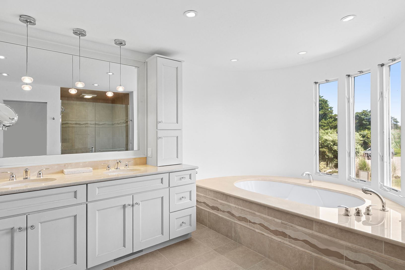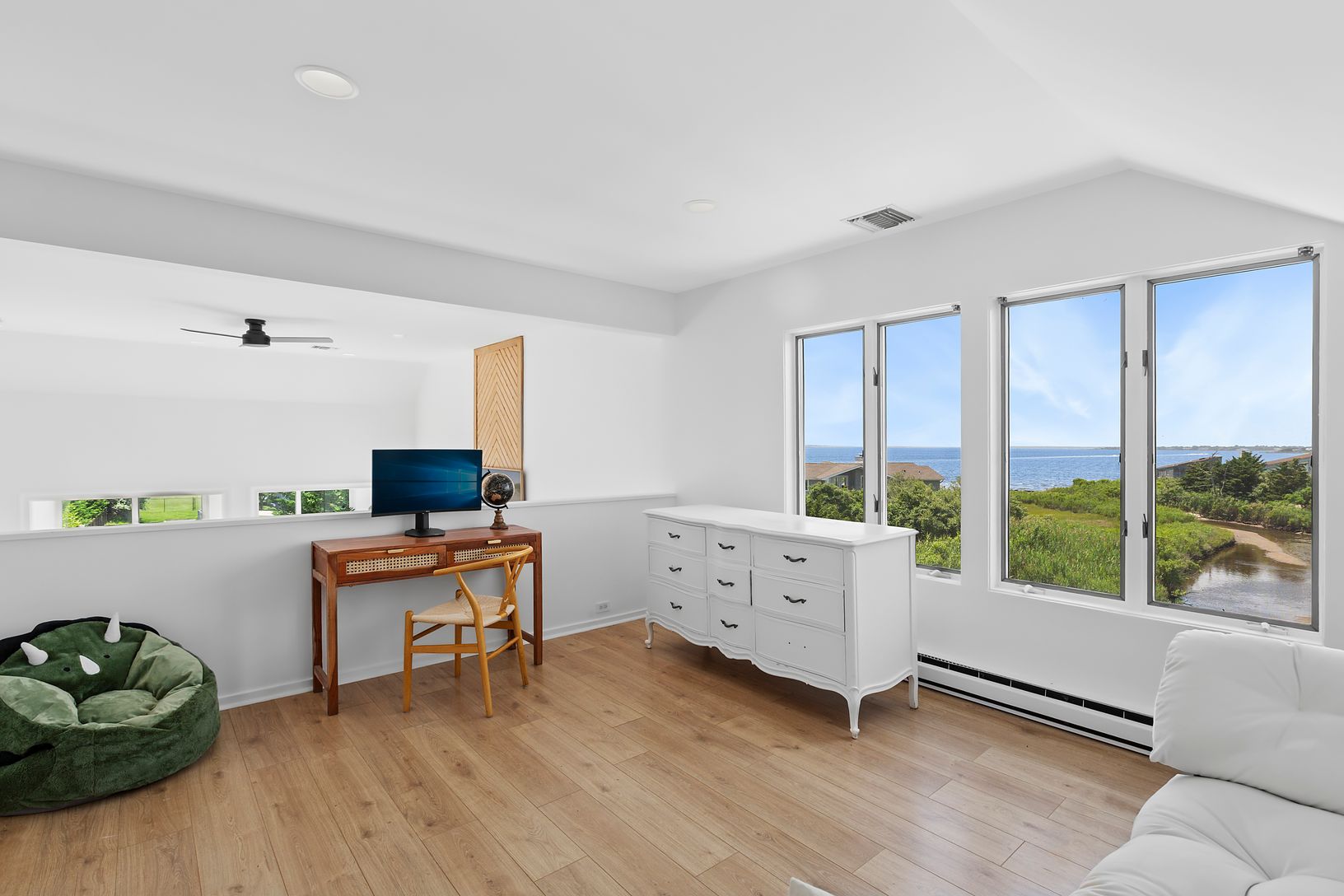 Enjoy almost panoramic Waterviews in this just finished renovation with high-end modern finishes, this sleek 3-bed, 3-bath retreat sits on a quiet cul-de-sac just moments from the heart of Westhampton Beach Village. Surrounded by nature, it offers sweeping water views and private creek access—perfect for kayaking or paddleboarding. Inside, enjoy an open, airy layout with updated kitchen and baths, luxe fixtures, and designer details throughout