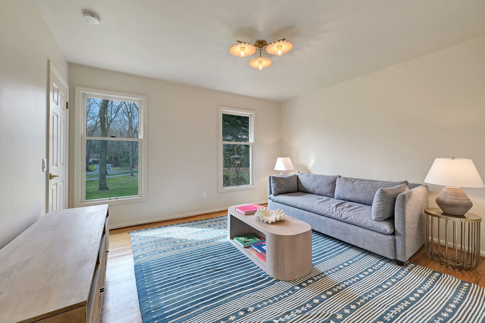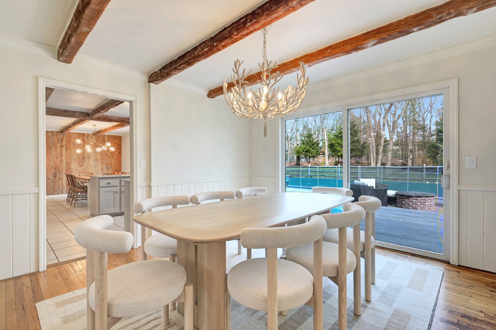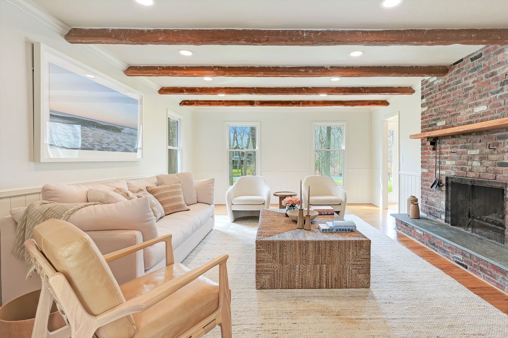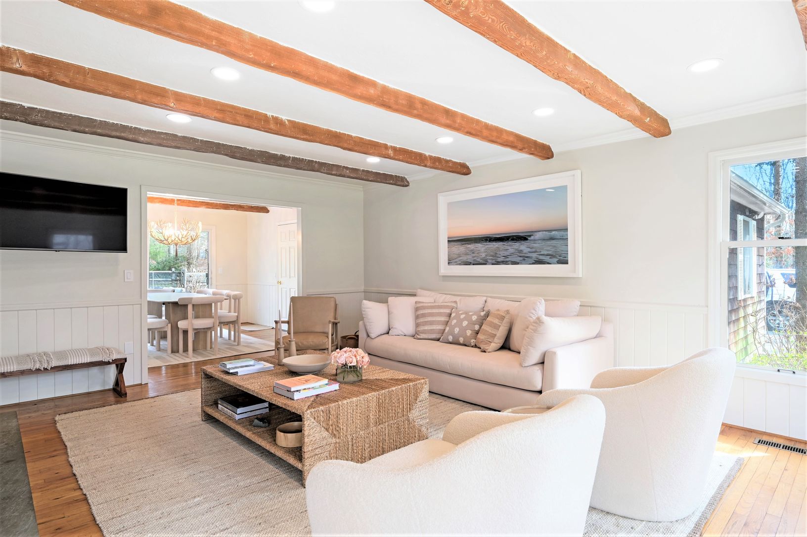 Fabulous 4+ bedroom/4 bath East Hampton rental with a pool, located a few minutes from East Hampton and Sag Harbor Villages. Be the first to enjoy this just-refreshed home, redecorated with designer furnishings from Serena and Lily & Lulu and Georgia. There are two sizable primary suites - one on the first floor, plus 2 additional guest bedrooms. With plenty of entertaining space in the luxe living and dining rooms, the eat-in kitchen, and