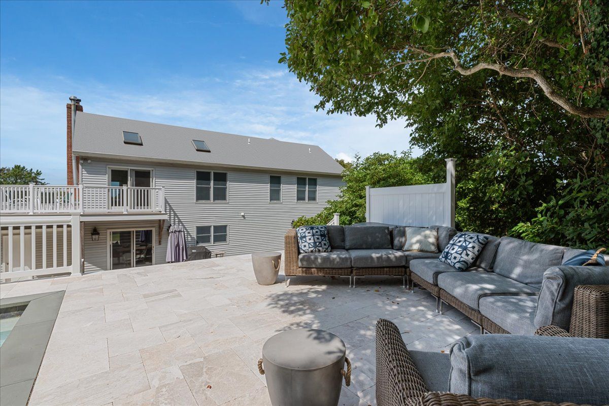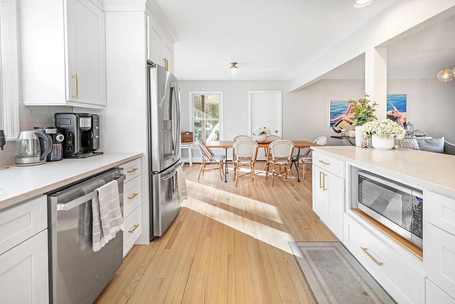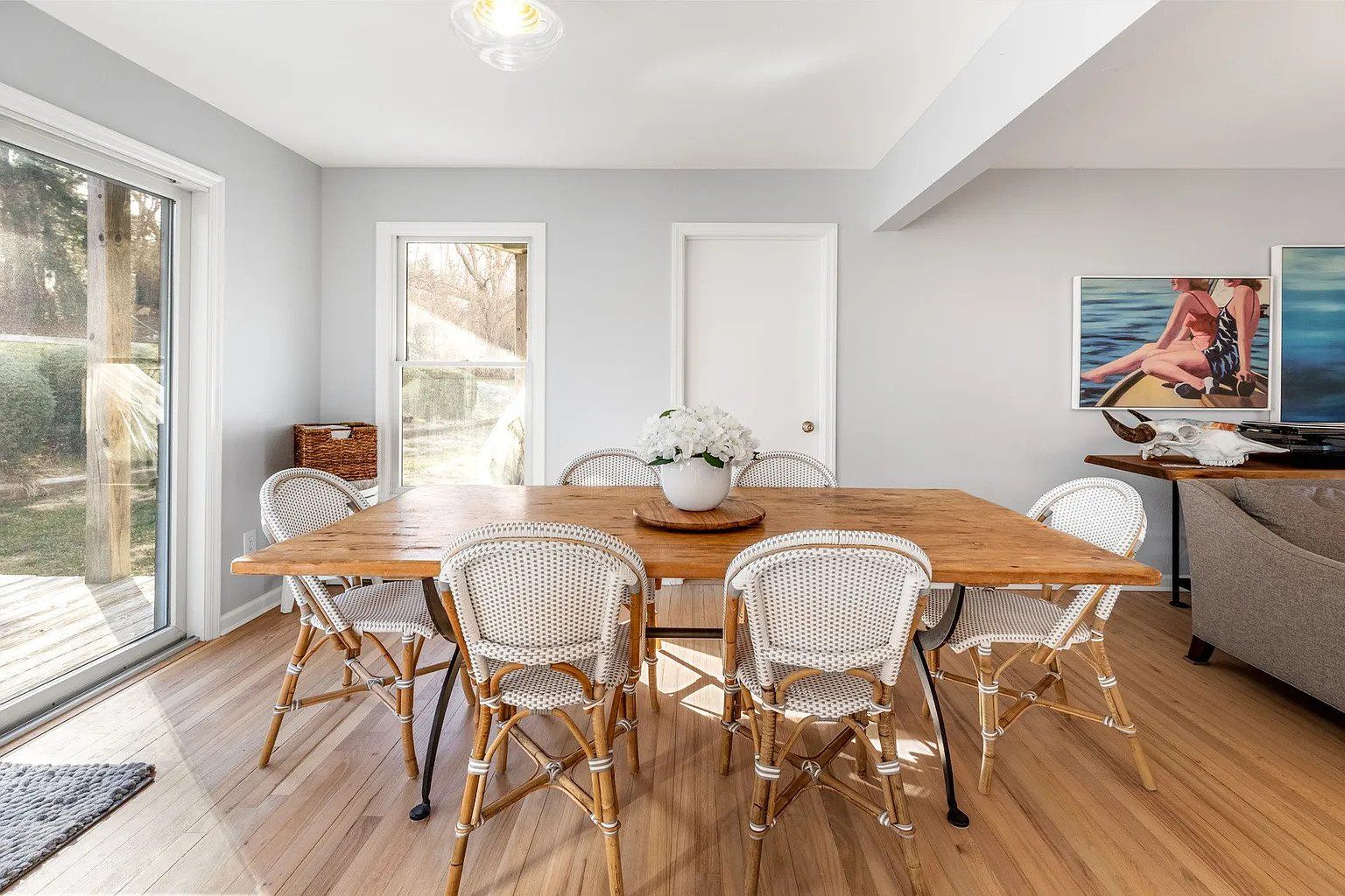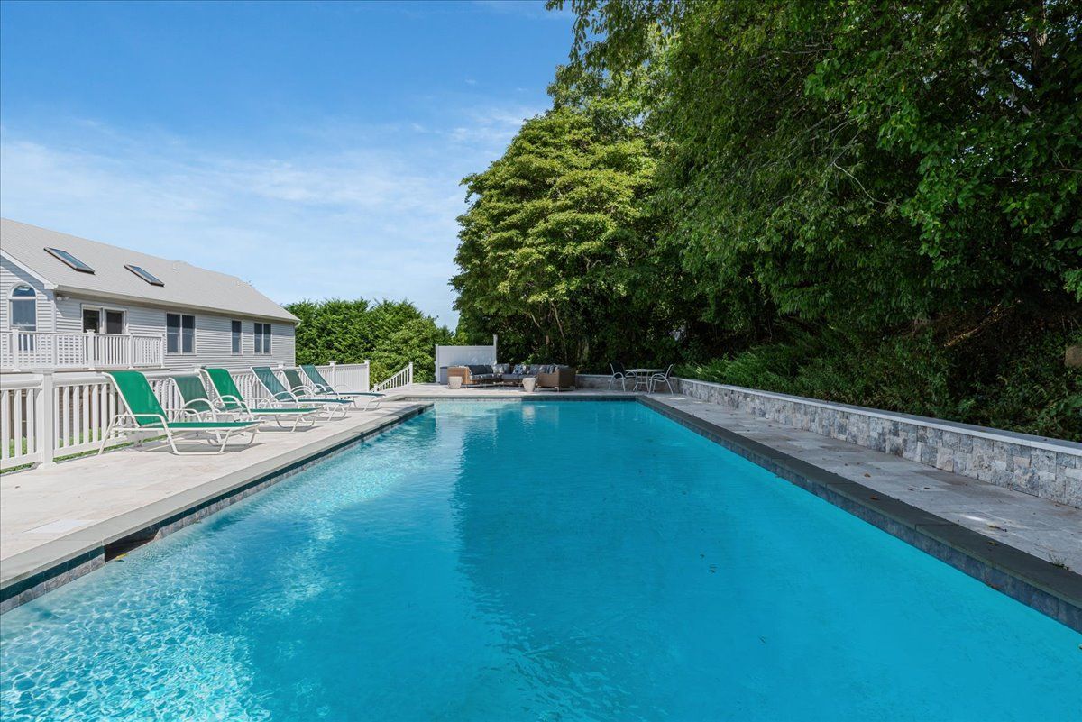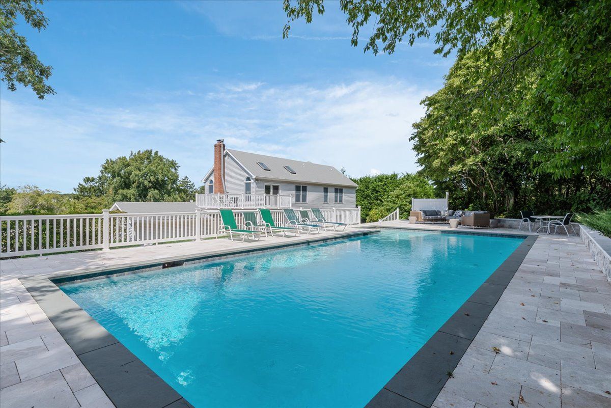 Serene, luxurious Hamptons living awaits you this summer. Step into this beautifully renovated Southampton home, where an open and sunlit floor plan seamlessly connects the brand-new eat-in kitchen with island, dining area, and living room. The main level features a spacious master suite with sliding glass doors to the backyard, a guest bedroom, full bathroom, and convenient laundry. Upstairs, a stunning great room offers vaulted ceilings, a f