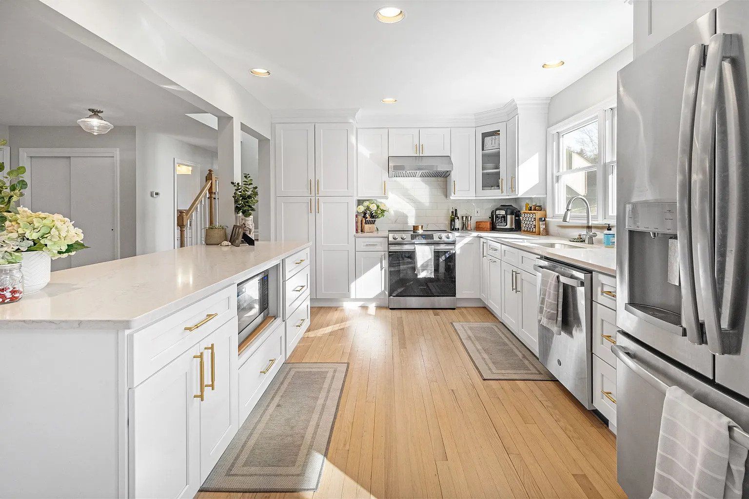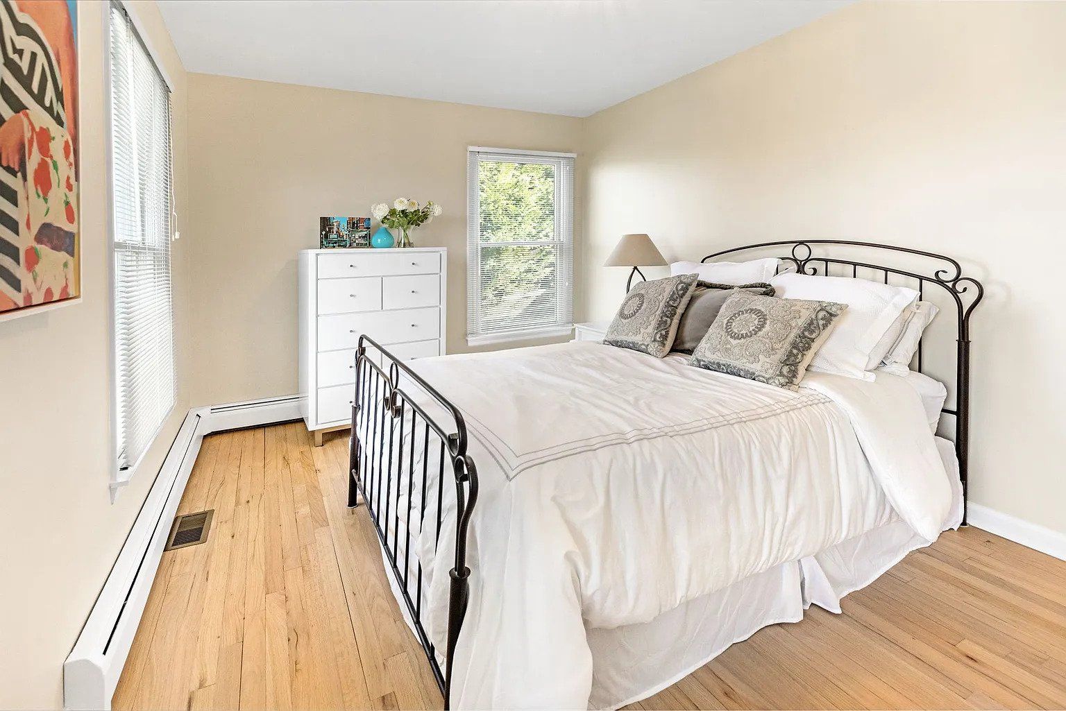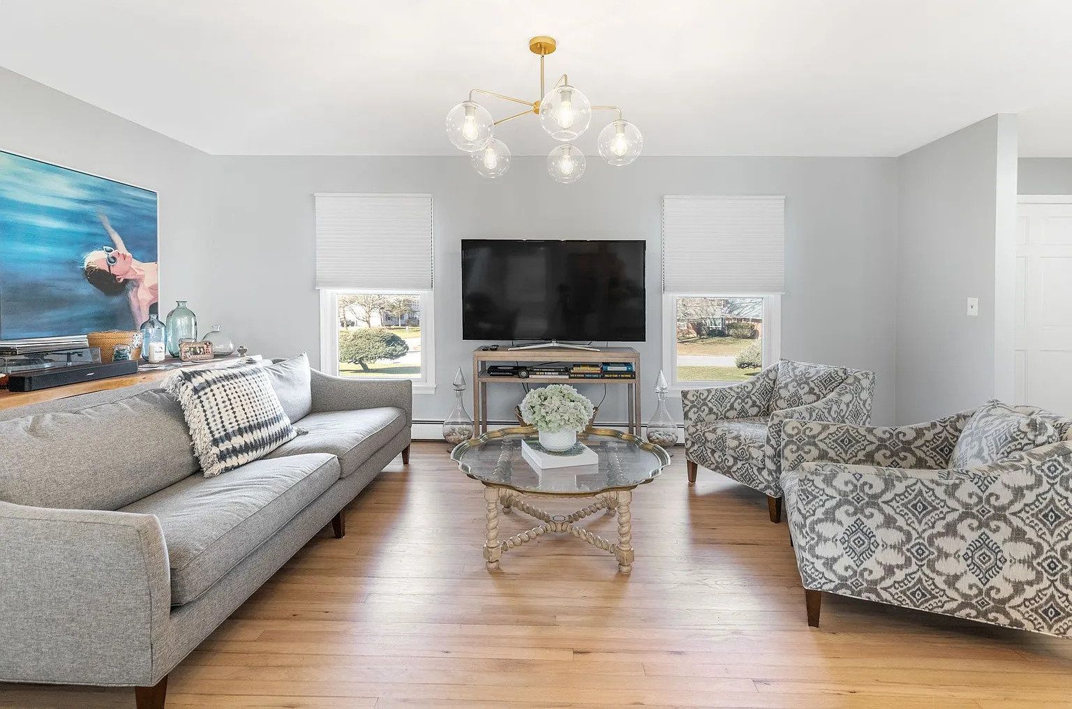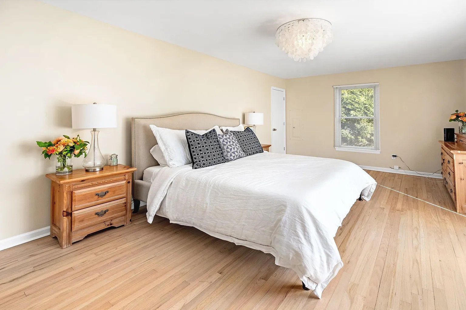 Serene, luxurious Hamptons living awaits you this summer. Step into this beautifully renovated Southampton home, where an open and sunlit floor plan seamlessly connects the brand-new eat-in kitchen with island, dining area, and living room. The main level features a spacious master suite with sliding glass doors to the backyard, a guest bedroom, full bathroom, and convenient laundry. Upstairs, a stunning great room offers vaulted ceilings, a f