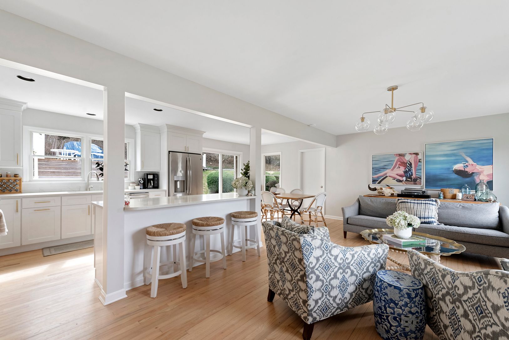 This newly-renovated traditional is located in a quiet community, surrounded by world renowned golf courses, and within close proximity bay beaches and to Southampton village shops, restaurants, and ocean beaches.The first floor features a light and bright open layout with a spacious kitchen, dining and living area. The first floor includes two bedrooms, one of which is en-suite and a bath. The second story boasts a very generous sized sitting