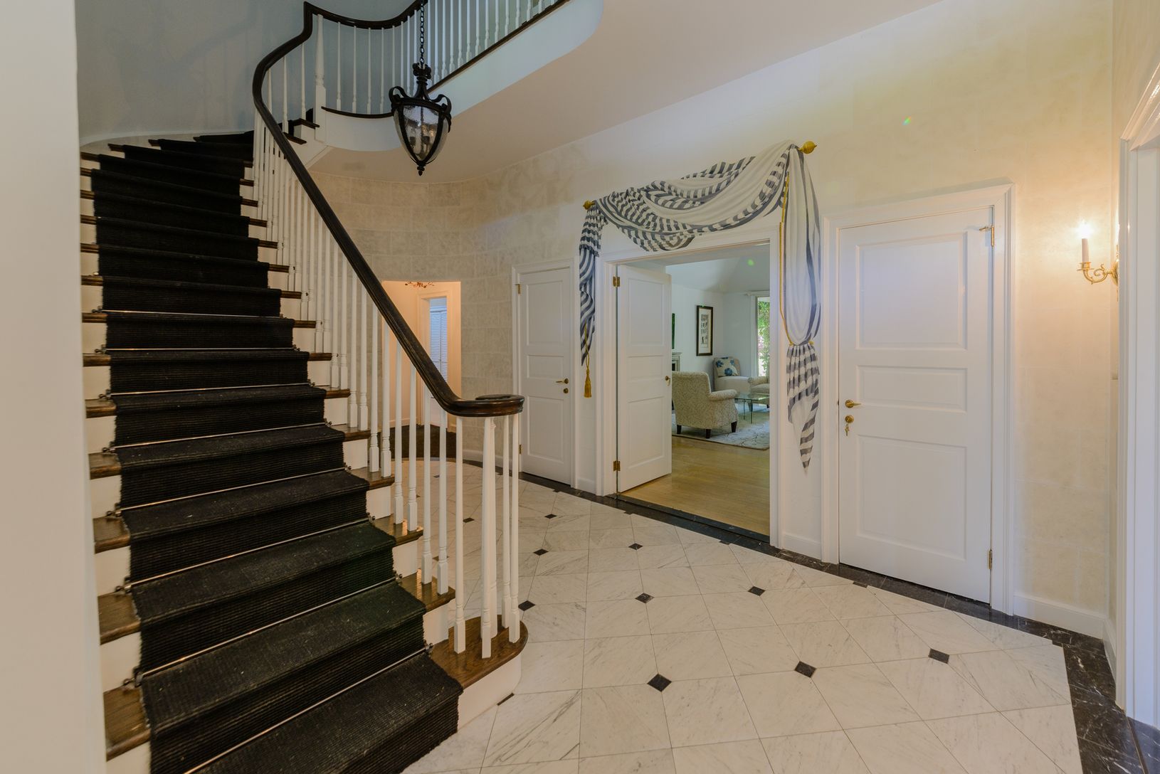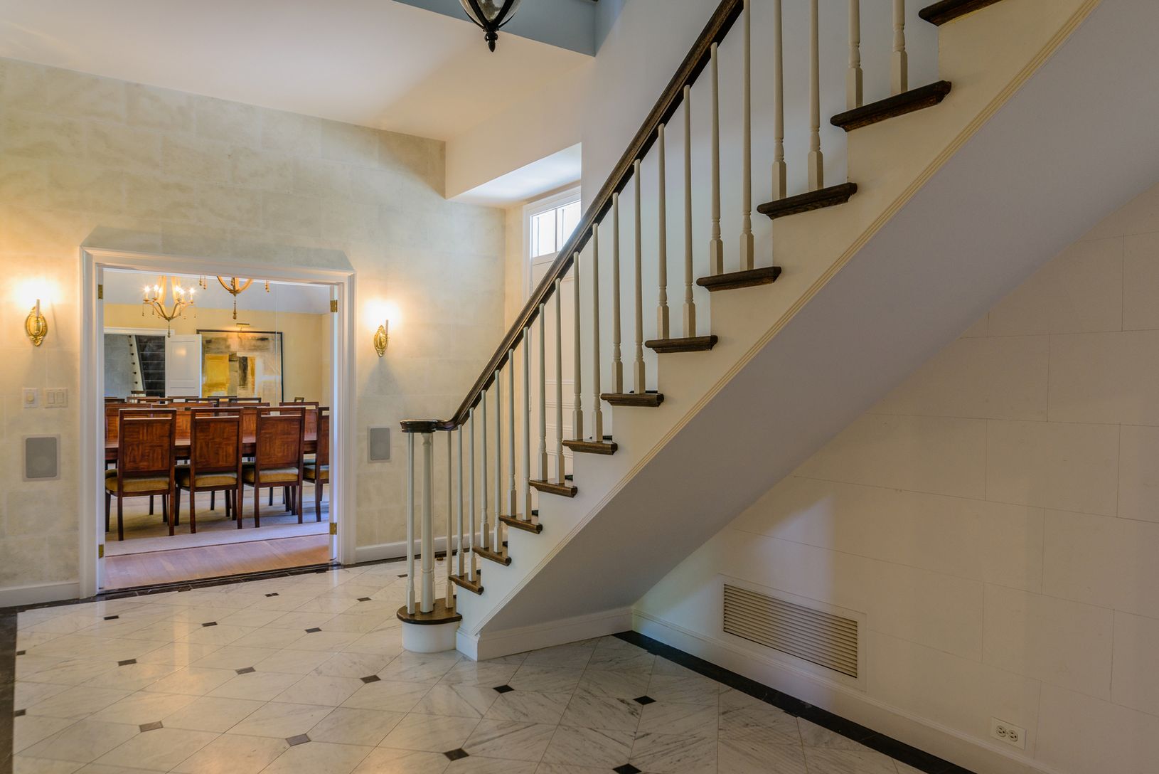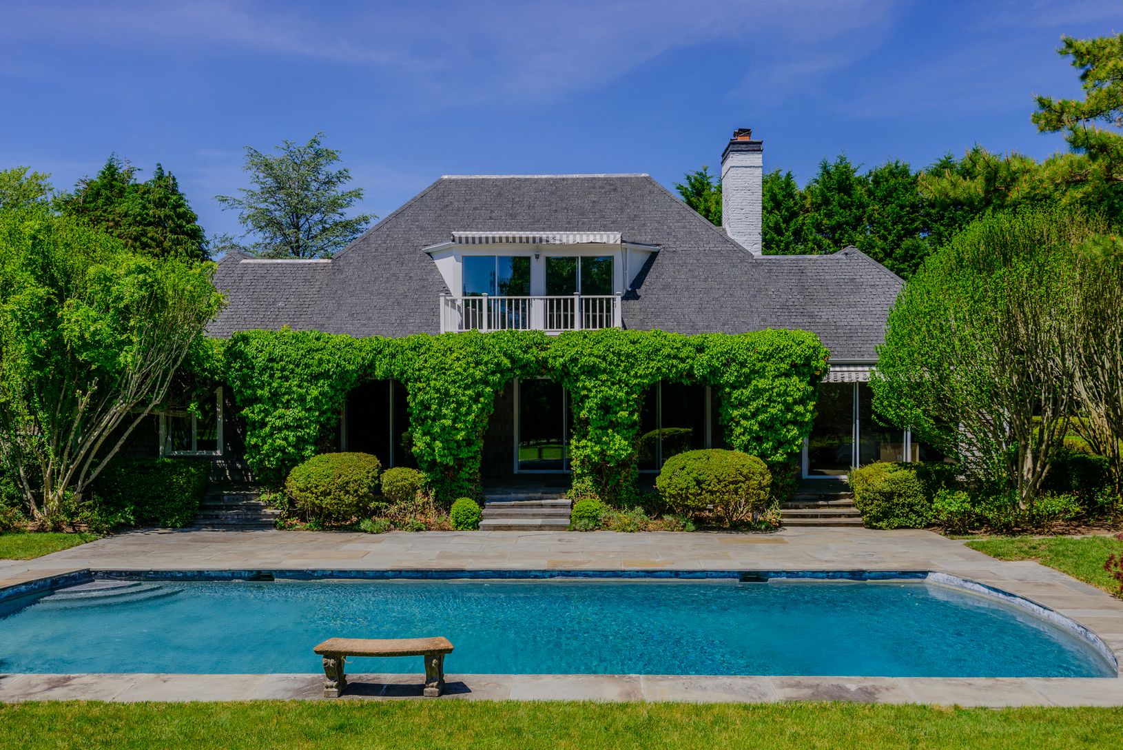 Desirable location on Captains Neck Lane at Ox Pasture. This elegant mansard-style residence, refreshed with white painted interiors, furnishings, window treatments and landscaping is available and ready for immediate occupancy. With five bedrooms and five baths in all, plus entry foyer powder room, the master with fireplace and one guest suite are located on one side of the ground floor. The expansive living room with fireplace, the master su