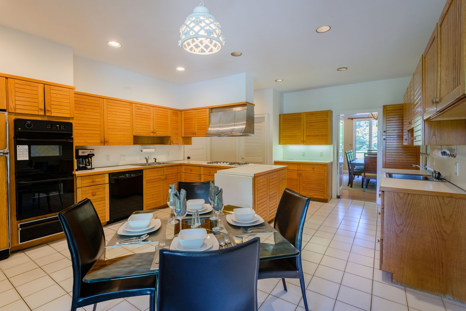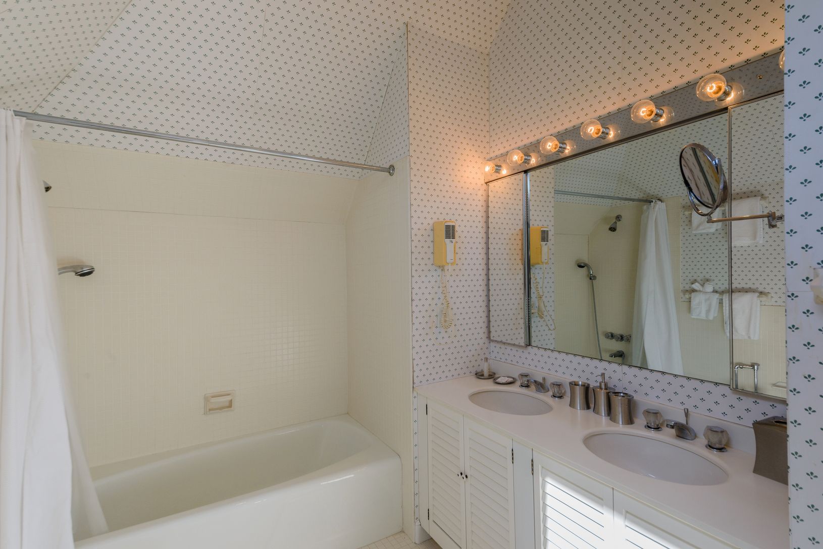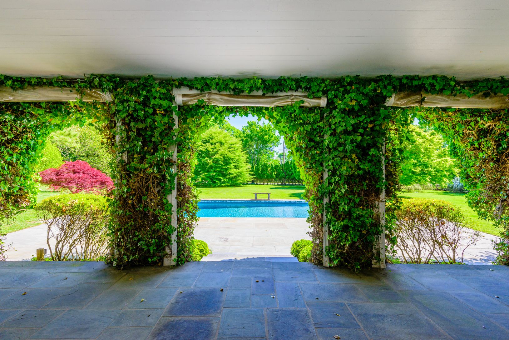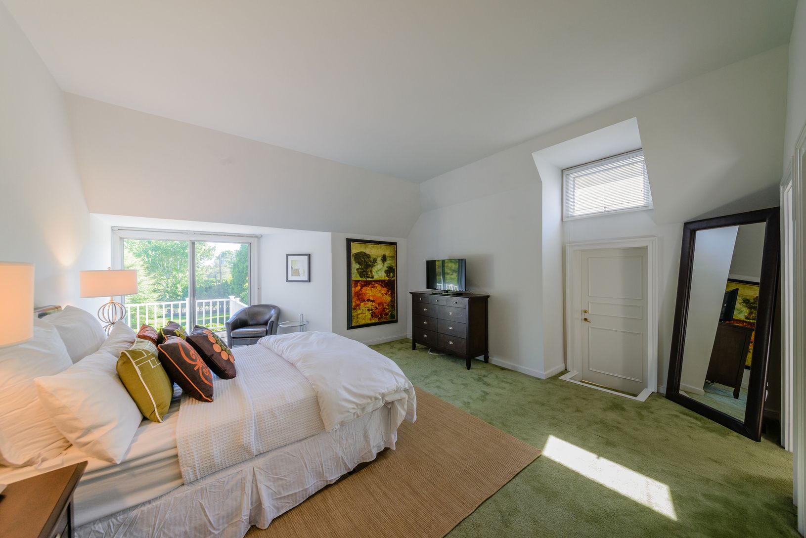 Desirable location on Captains Neck Lane at Ox Pasture. This elegant mansard-style residence, refreshed with white painted interiors, furnishings, window treatments and landscaping is available and ready for immediate occupancy. With five bedrooms and five baths in all, plus entry foyer powder room, the master with fireplace and one guest suite are located on one side of the ground floor. The expansive living room with fireplace, the master su