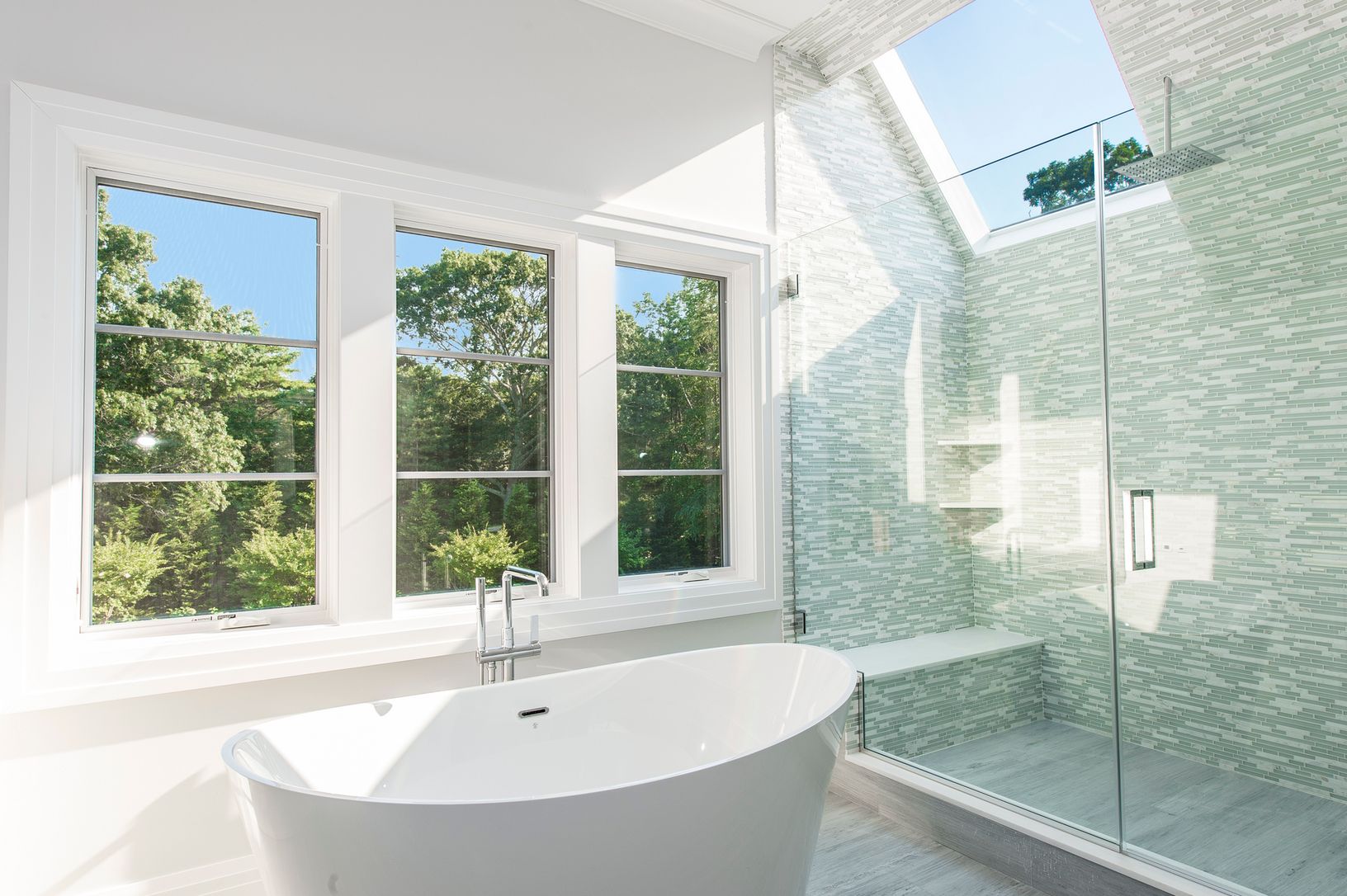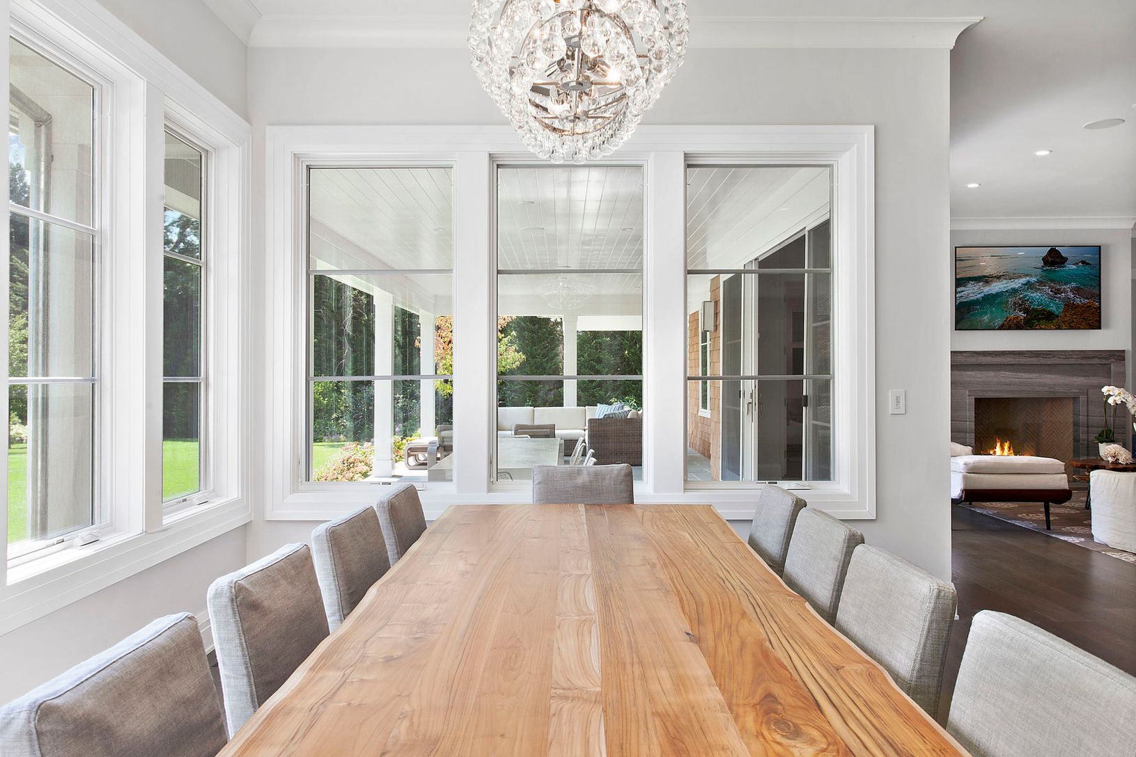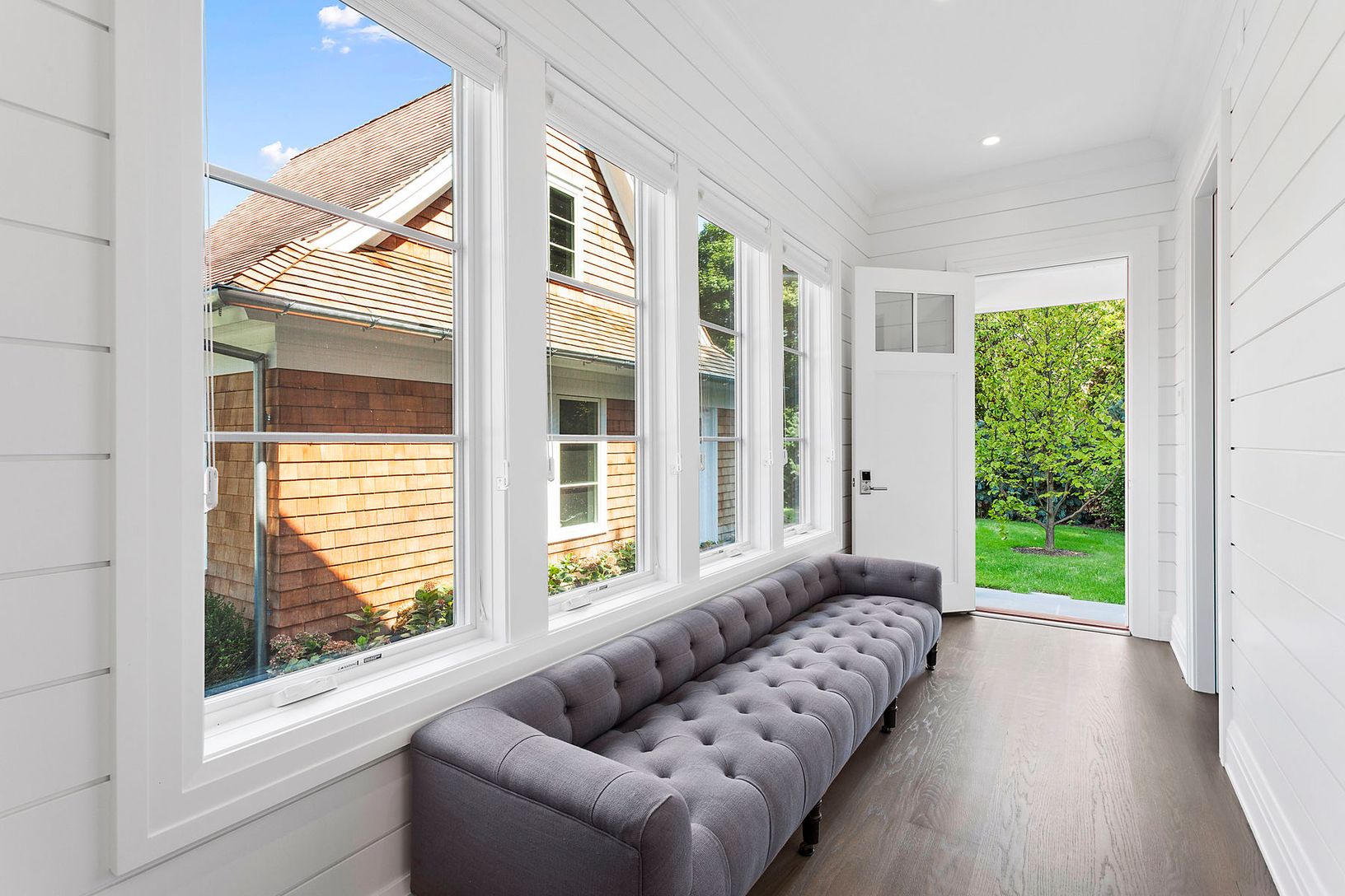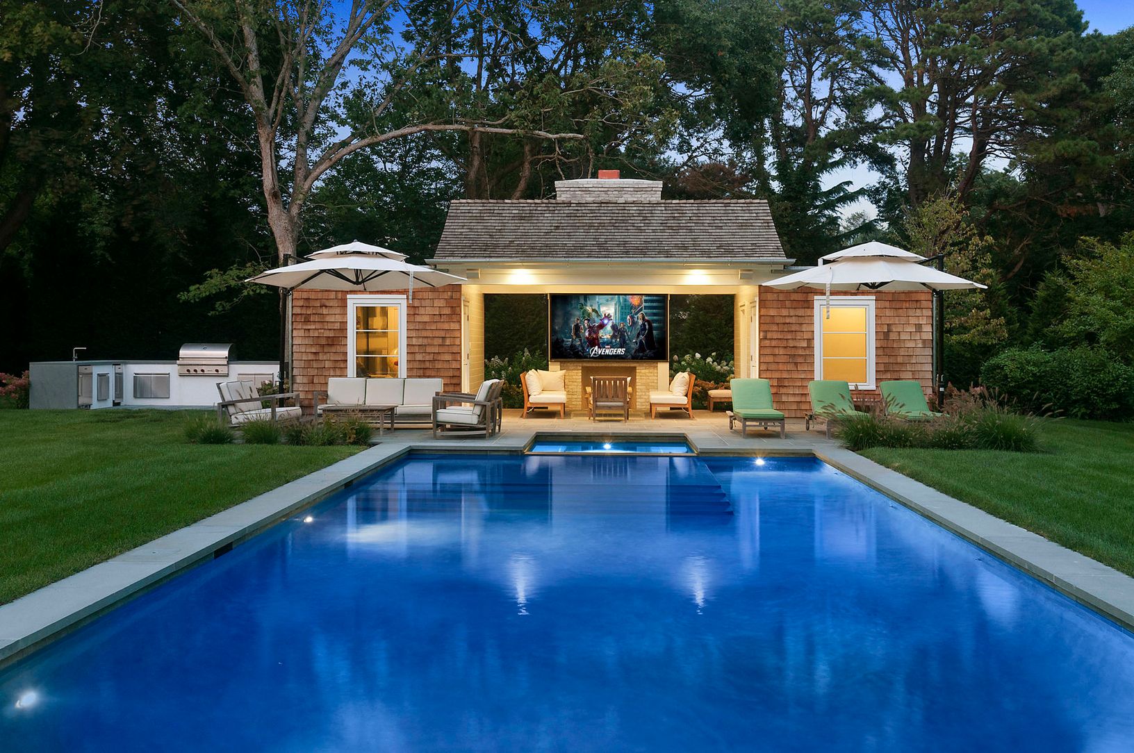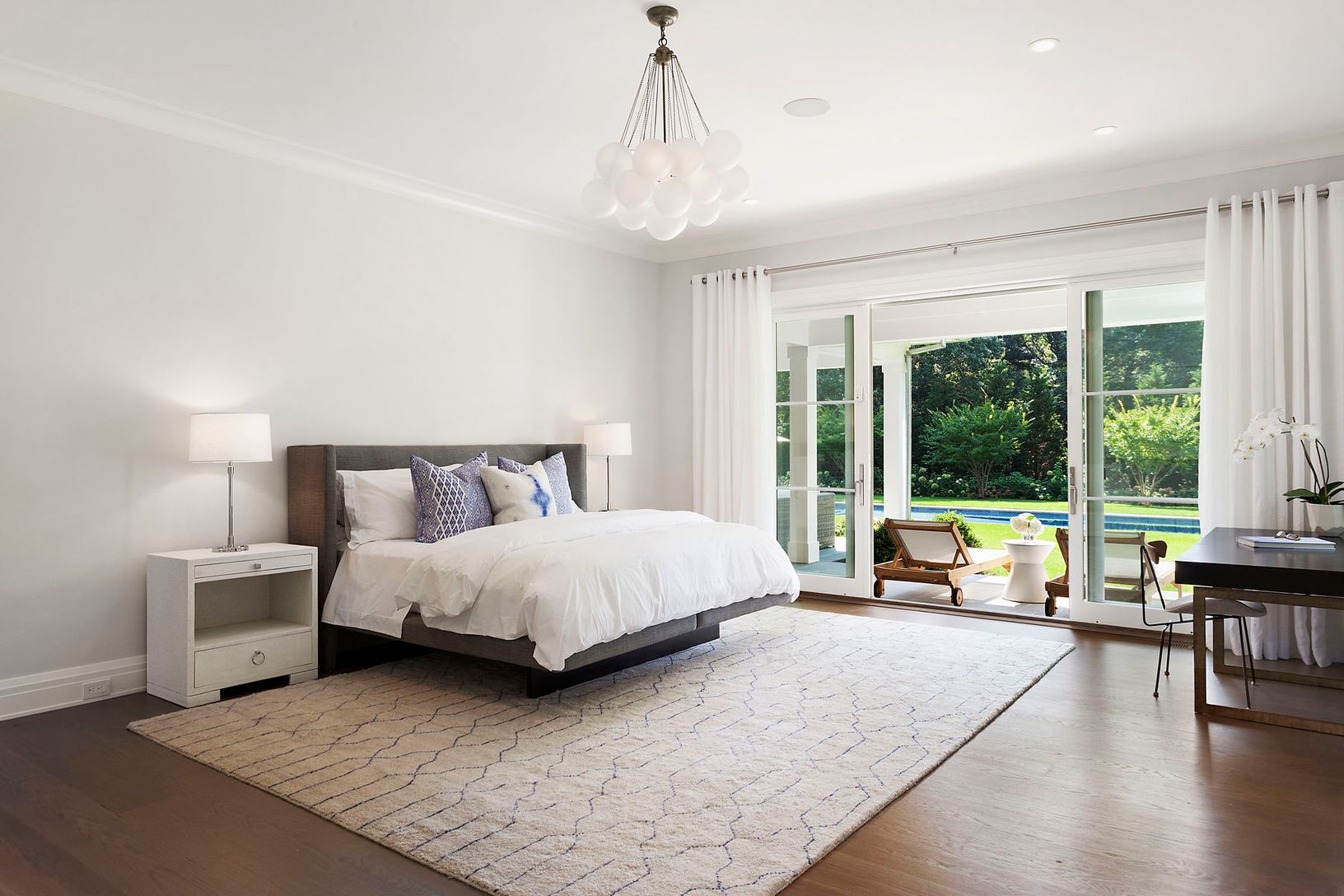 Spectacular new modern construction built to the highest standard sited on a private gated acre in the heart of Georgica. The 8600+/- sq. ft. interior features 10' ceilings throughout, custom profile moldings and paneling, sculptural contemporary lighting and wide plank select oak stained floors. Beyond the striking double-height entry the open floorplan features 2 living spaces each with fireplace and connecting 8' glass doors. A spacious