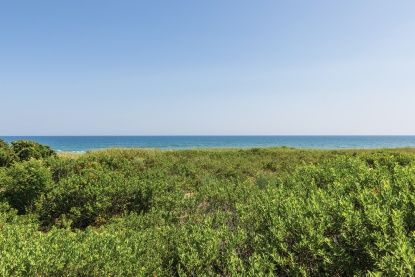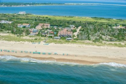 Enjoy full resort amenities with the ocean right outside your front door in this fully renovated oceanfront cottage in Amagansett. The light-filled home offers two bedrooms and two baths, chic eat-in kitchen with granite countertops, custom cabinetry and stainless steel appliances, and sunny living area with glass doors to an ocean view deck with roll-out awning, seating and dining areas. Many built-ins throughout the home take maximum advanta