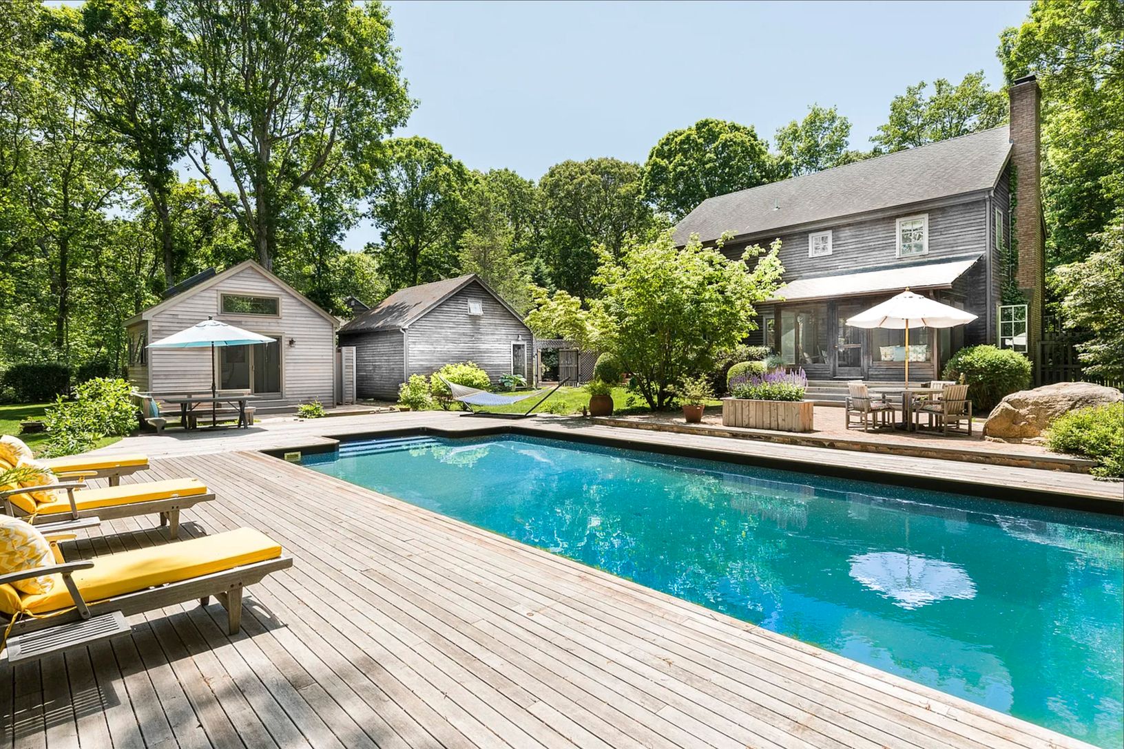 Looking for the perfect blend of relaxation, convenience, and fun? Tucked away on a quiet cul-de-sac just minutes from Sag Harbor Village, this beautifully finished three-bedroom home is a dream vacation retreat. Dive into summer with a heated saltwater pool, stylish pool house, and a cozy fire pit for evenings under the stars. Inside, bright and immaculate interiors welcome you with open, flowing living spaces including a living room with fir