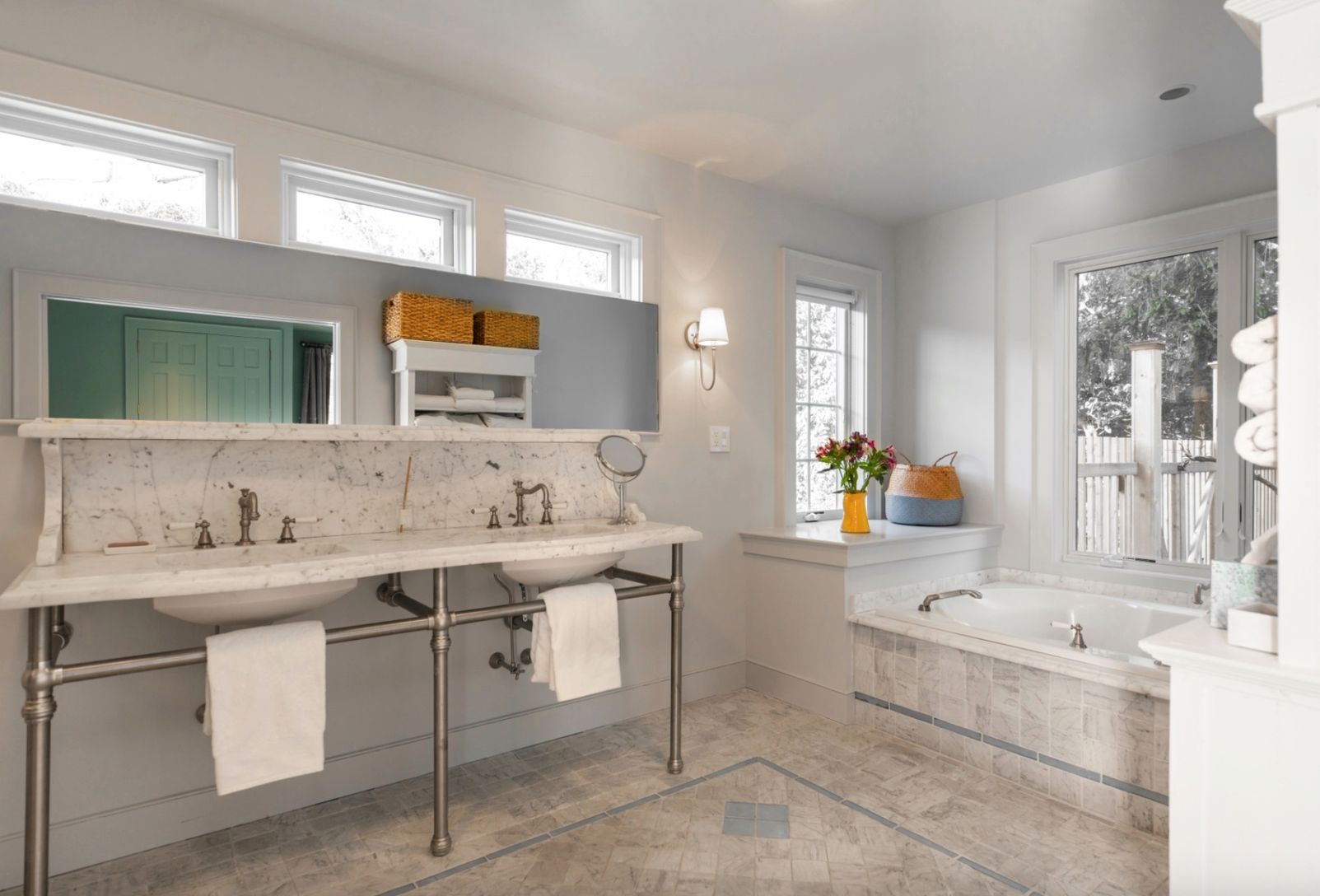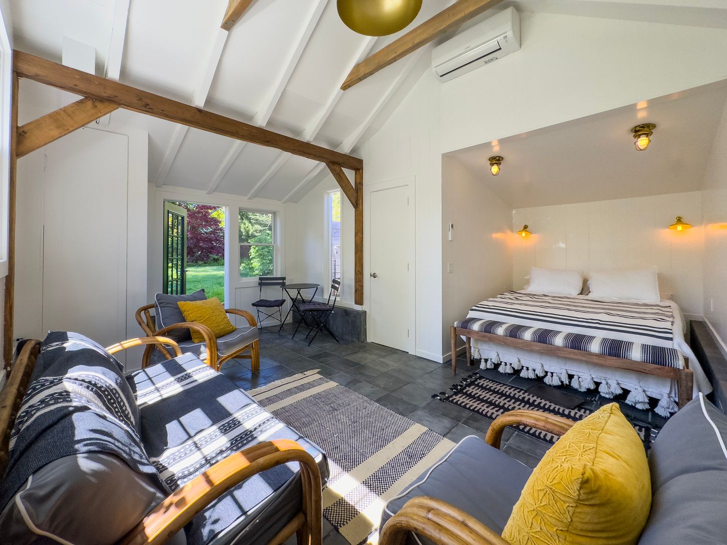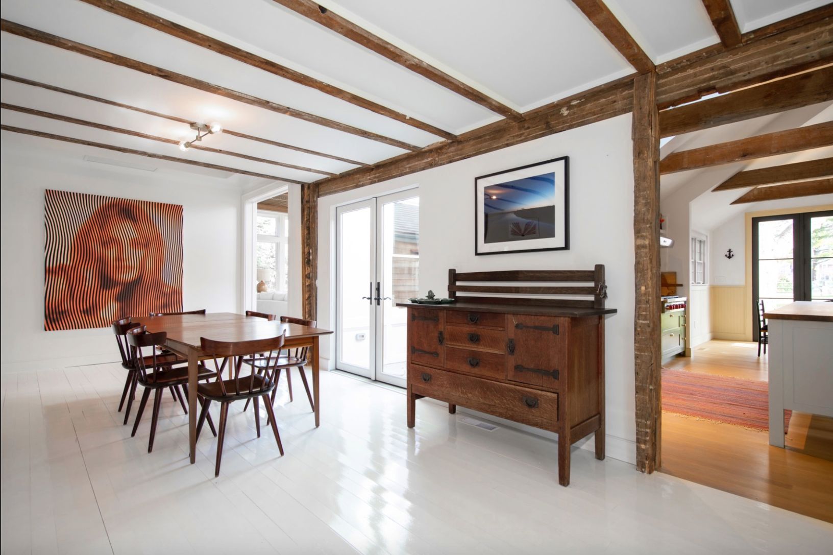 This recently renovated bespoke Bridgehampton farmhouse is situated on immaculately landscaped acre, boasts 2 primary bedrooms, 2 guest bedrooms, 4 bathrooms. The brand new meticulously thought-out large chef's kitchen is equipped with Wolf and Viking appliances, oak floors and a central island that is infused with style and utility. The kitchen opens to the dining room that was designed with french doors that open out to the garden, for cool