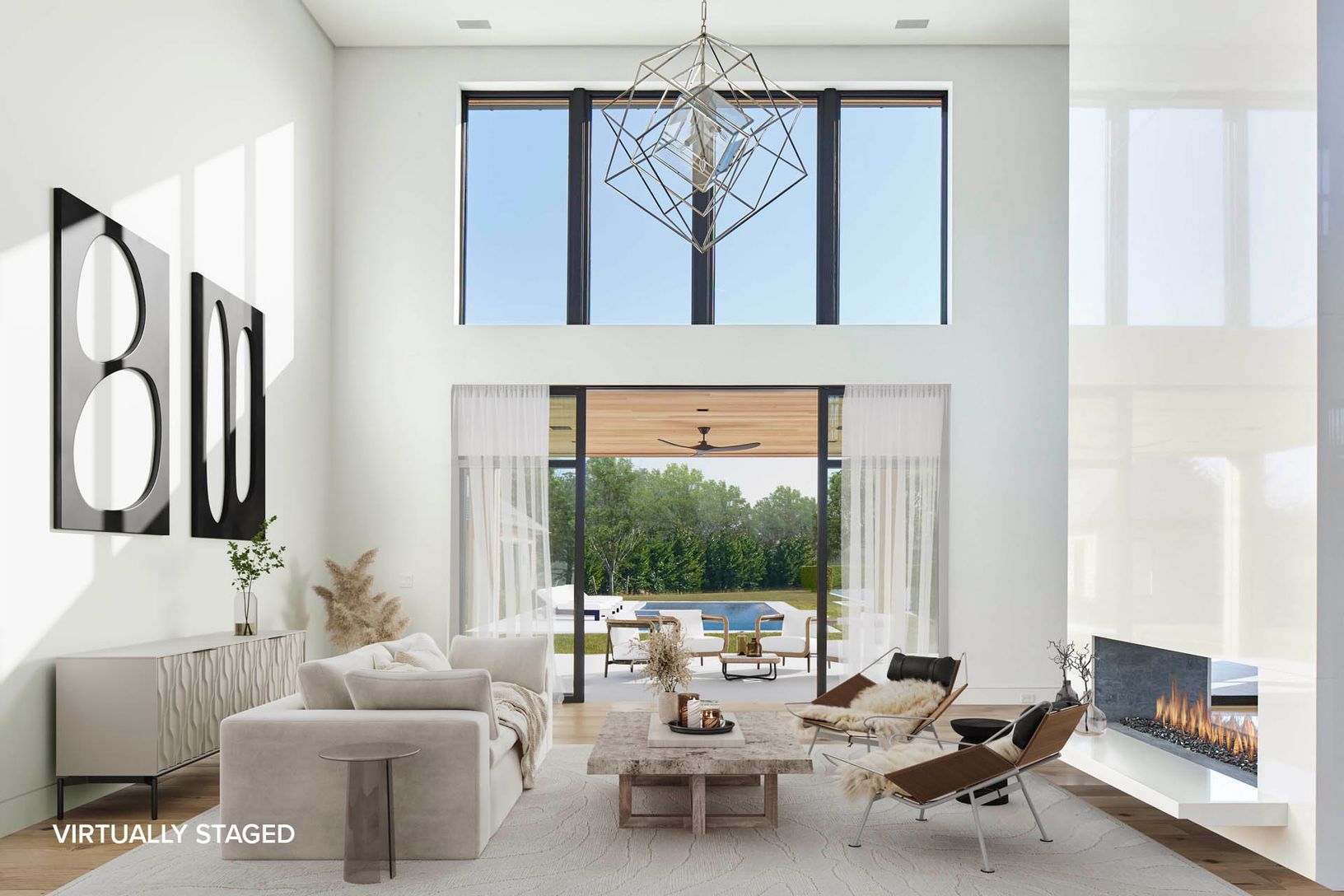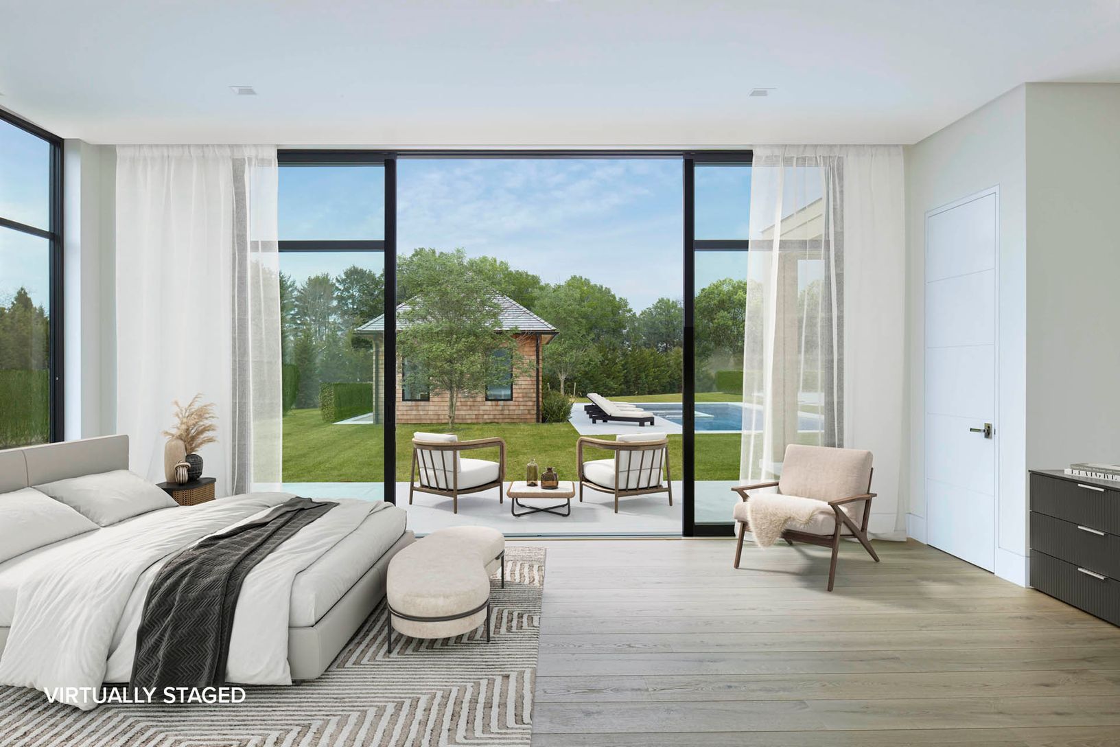 201 Sagaponack Road is an exceptional new construction completed in 2023, boasting a modern shingle-style that exudes sophistication and elegance. The property was designed by the esteemed architecture firm Studio B+M, built by the reputable Eastend Builders, and features landscape design by Verderber Nurseries. The property spans across 1.4 acres+/- and boasts an expansive living space of 11,100 SF+/- with a total of 8 bedrooms, 10 full and 3