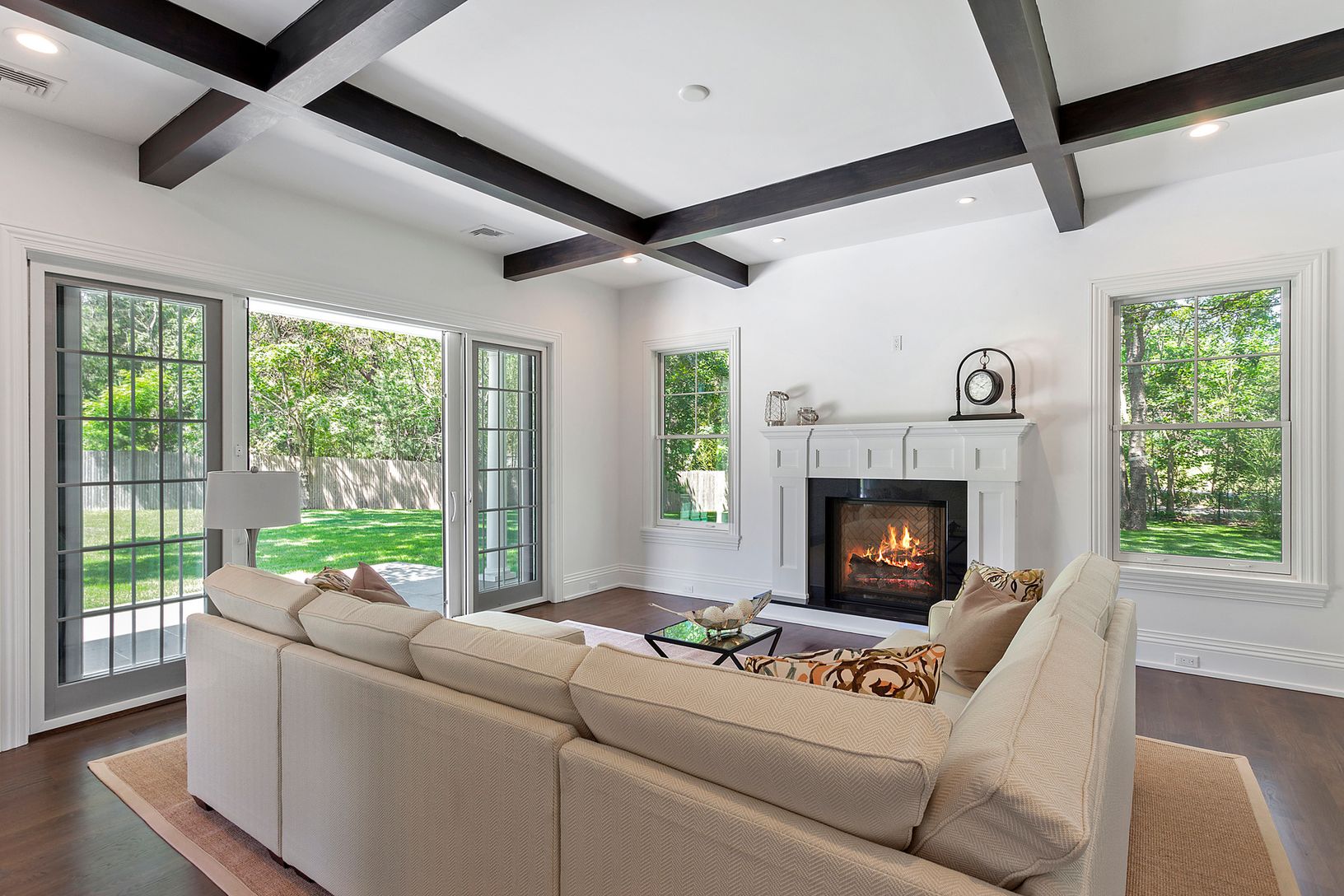 Custom high-end, new construction privately located in a prime Water Mill location, only 2.5 miles from the Ocean Beach and Southampton Village. Attention to detail was placed in superior fashion throughout this 4,500 +/- shingle style home built in 2015. Bright, natural light easily flows under the high, coffered ceilings as you enter the double height foyer. Double thick Carrara marble combined with stainless steel Wolf and Sub-Zero applia