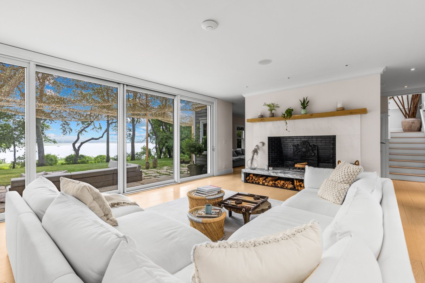 Rare and absolutely private, this 2+ acre waterfront retreat boasts water access with dock, gunite pool and pickleball. Enjoy stunning sunsets at this waterside classic which offers an extra 400 sq. ft. of office space plus +/- 700 sq. ft. barn. This spectacular North Sea Harbor getaway invites indoor/outdoor living with an open floor plan, floor to ceiling glass doors which open to the waterfront patio, access to a hedged-in gunite pool, reno