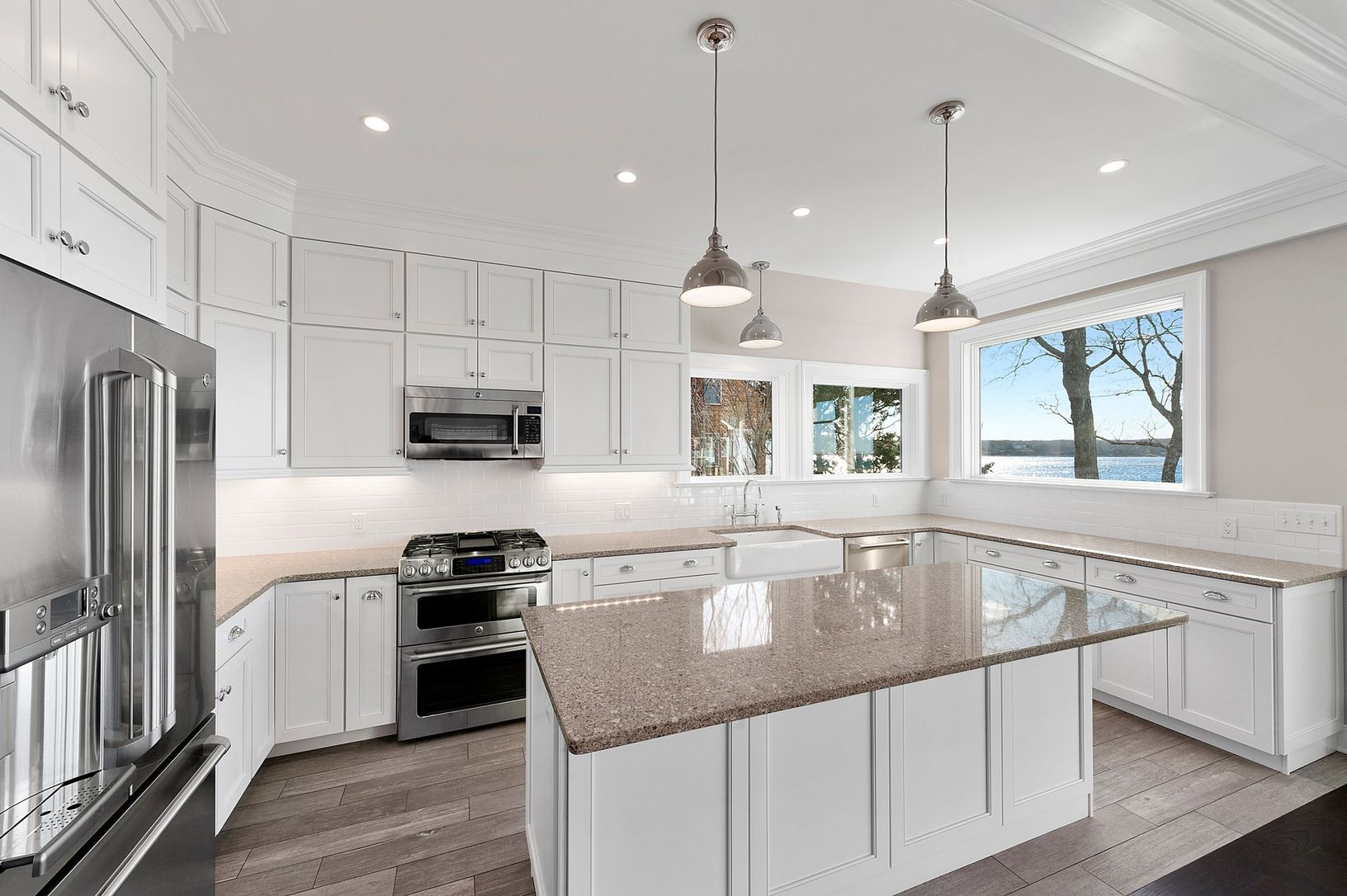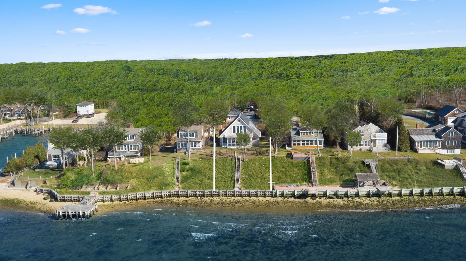 This new, well-built, four-bedroom, four and one-half bath, waterfront home is perfectly perched at the highest point overlooking Three Mile Harbor. It faces due-west for the perfect enjoyment of amazing sunsets! With 60' +/- of new bulkhead, solar panels, and a detached two car garage on 0.70 +/- acres. Alaskan yellow cedar shingles. Anderson 400 series coastal hurricane windows. Upgraded well pump for high volume. Two on demand tankless Rhe