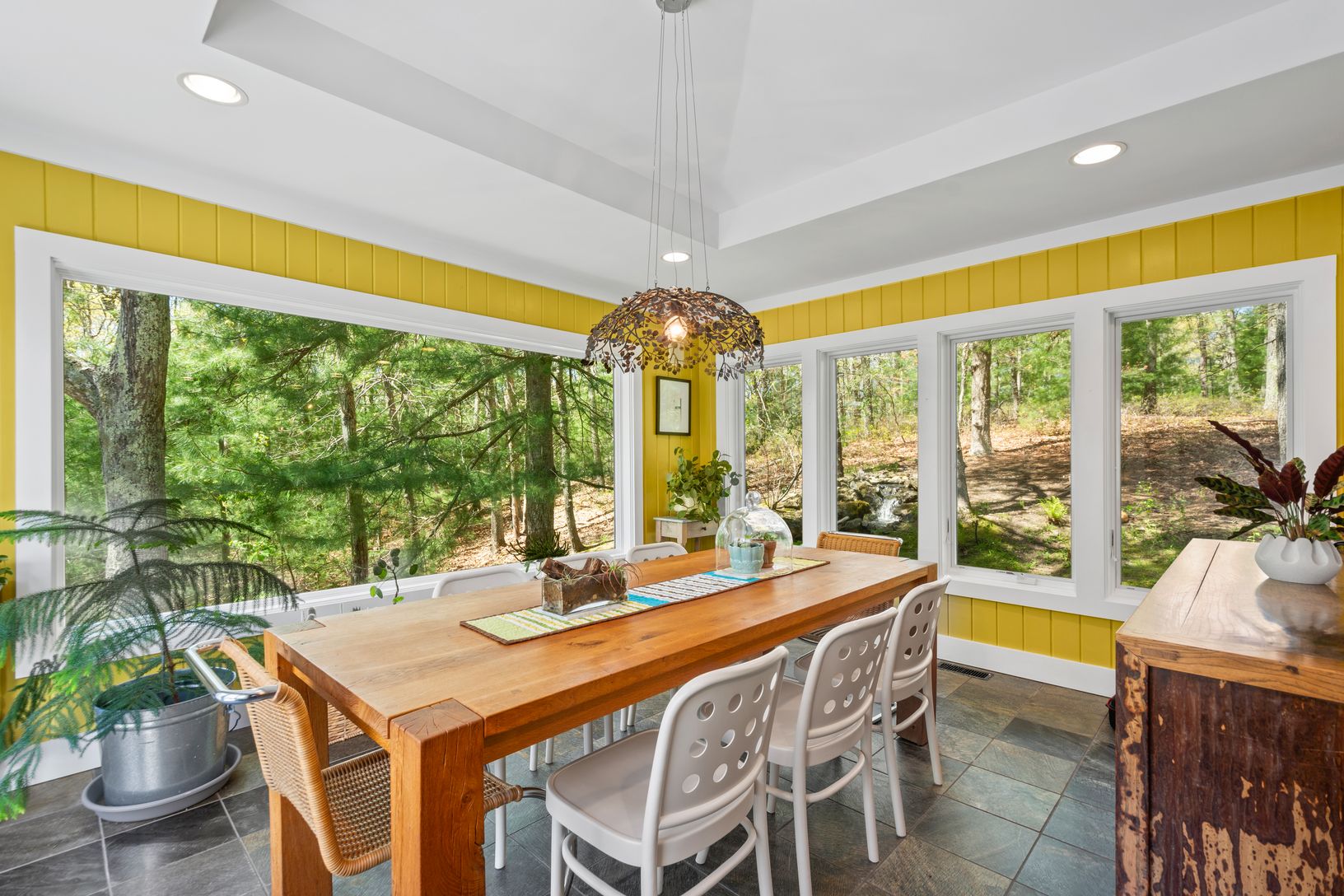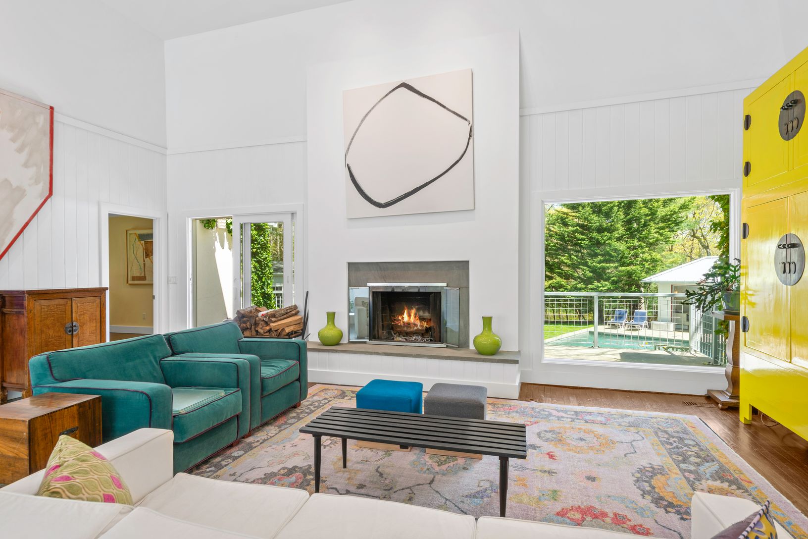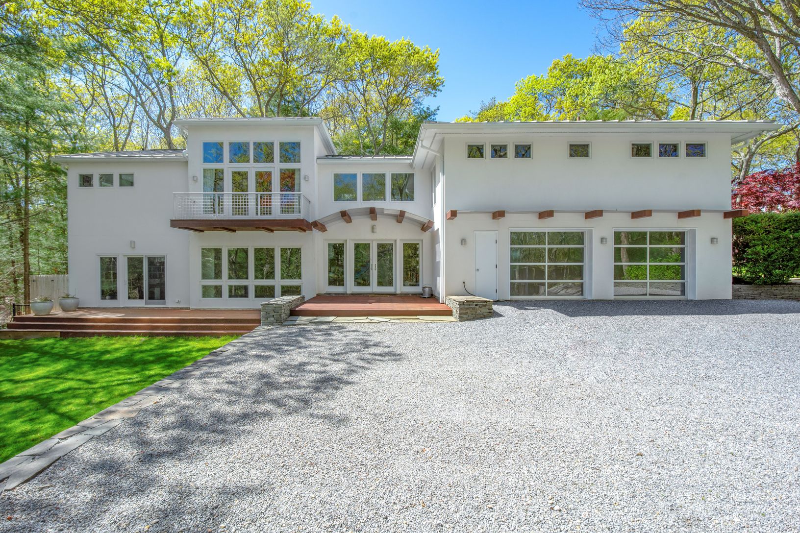 Tucked away down a picturesque drive, lined with whispering pines, lies a stately home that is private and elegant. This 4,000-square-foot residence, situated on a private 2.16 acres, is a hidden gem in the heart of East Hampton. Surrounded by mature trees and lush landscaping, this home is a sanctuary of tranquility. Meticulous attention to detail has been given to bring the lush green grounds into the interior, with large windows and doors i