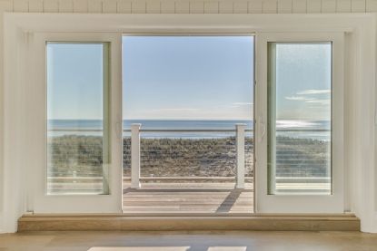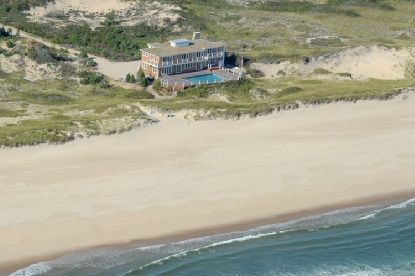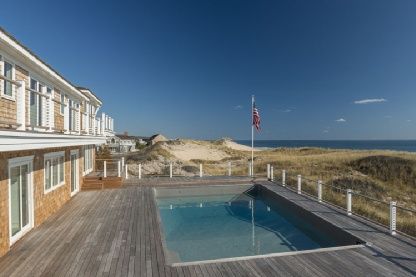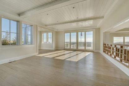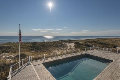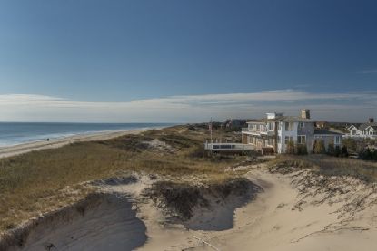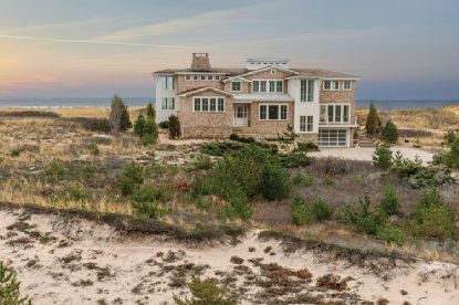 This distinctive Nantucket-style beach house with clean modern interior lines fits perfectly in its beachy surrounds and offers 7,000+/- sq. ft. of luxurious living space on three floors with a variety of characteristics that are very rare and unique. Very few oceanfront homes have no visible neighbors for over 1,000+/- ft. along the ocean and as much as 200' of ocean frontage. As well, there are views of the sand and waves from the first fl