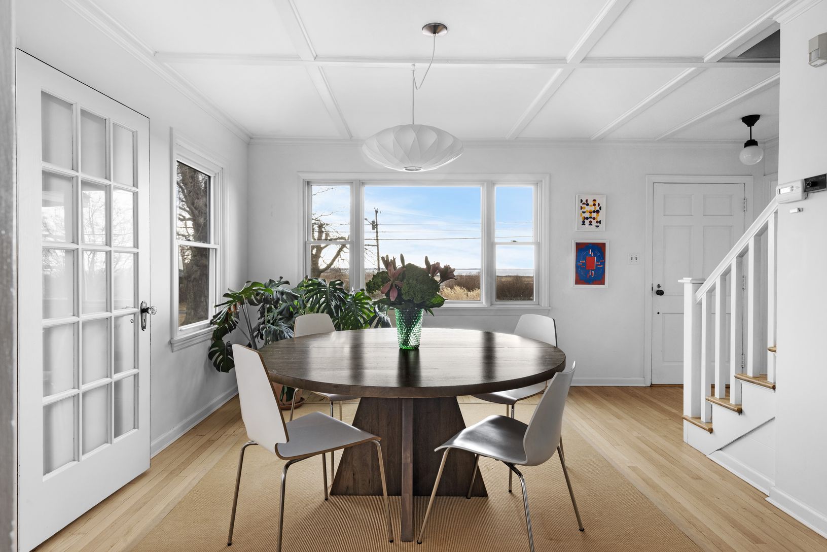 Wonderful Orient Water view retreat with stunning bay views from every room! Spacious light filled mid-century home offering 3 bedrooms and 2.5 baths. Chefs' kitchen, living room with fireplace, dining room, sunroom, and large first floor primary ensuite. Set on a beautifully landscaped parcel showcasing expansive open spaces overlooking the bay, large stone patio, well-appointed with summer furnishings for dining and relaxing; perfect for ent