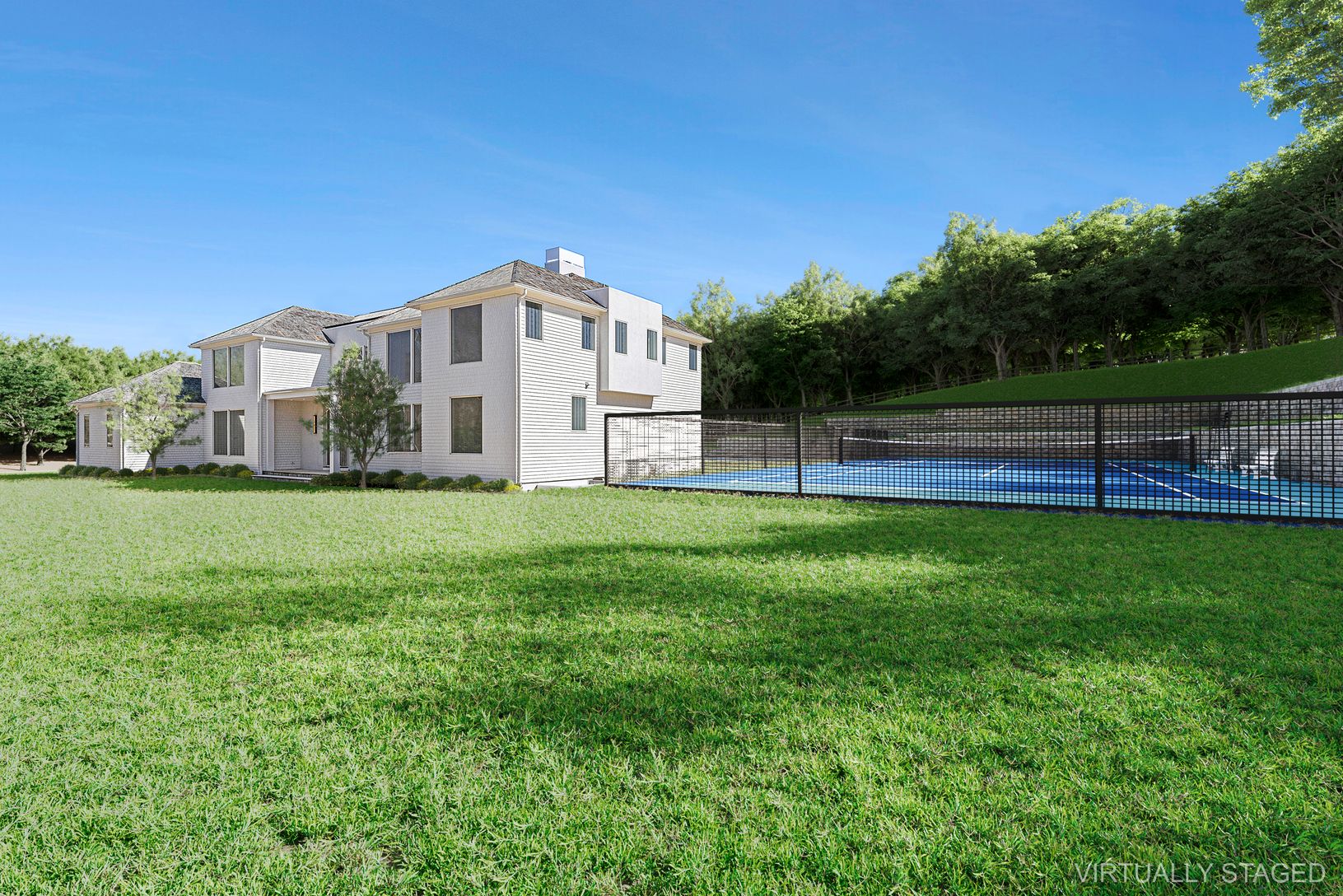 Embark on an unparalleled residential journey with this new construction by Barsalin Building and Design, scheduled for completion by summer 2024. This breathtaking modern estate in the heart of Sag Harbor. Spanning 1.85 meticulously landscaped acres, unfolds over three expansive levels, offering an opulent living experience across 8,500+/- square feet. Bathed in natural light thanks to expansive Marvin windows and exquisite doors sourced from