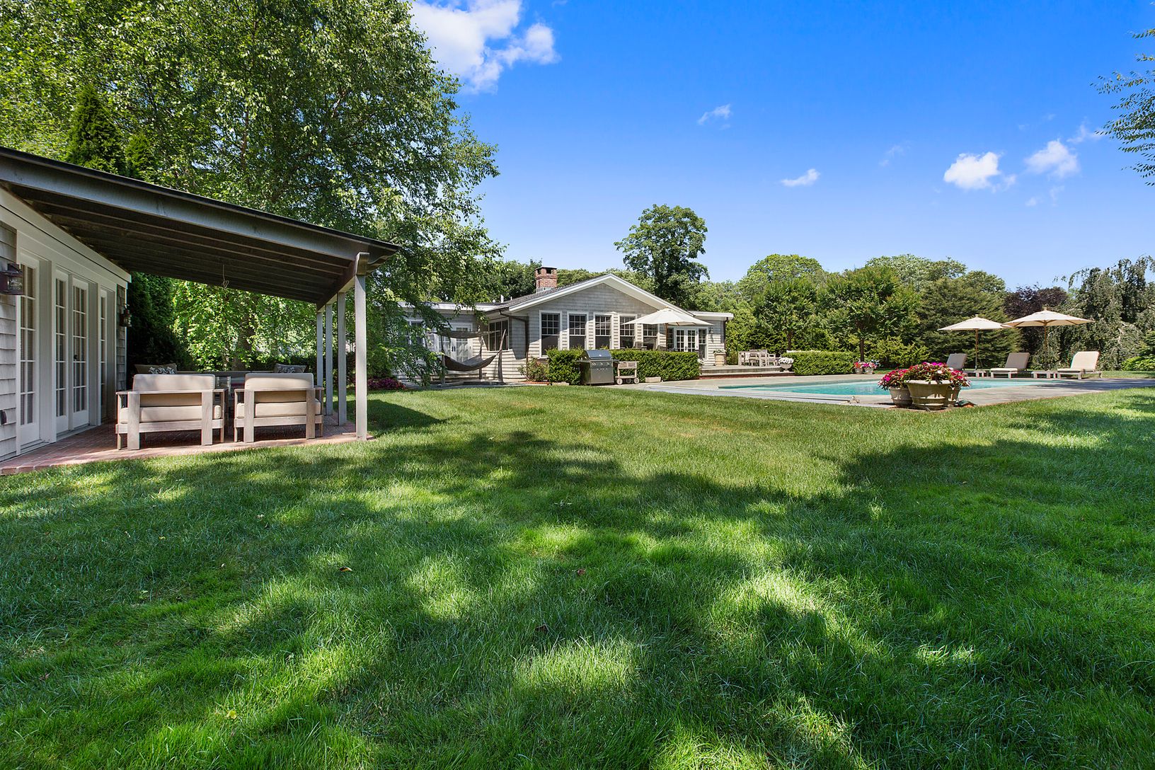 This incredibly private estate is located in the heart of East Hampton Village on 1.7 professionally landscaped acres. As you pass through the gated drive, you can admire the lush rolling lawns and beautiful specimen trees planted by the Hampton's premiere landscape artists, Marder's. The two-level shingled home features an open living plan with a large gathering room, a chef's kitchen, open dining area plus a media room with a wet bar. There