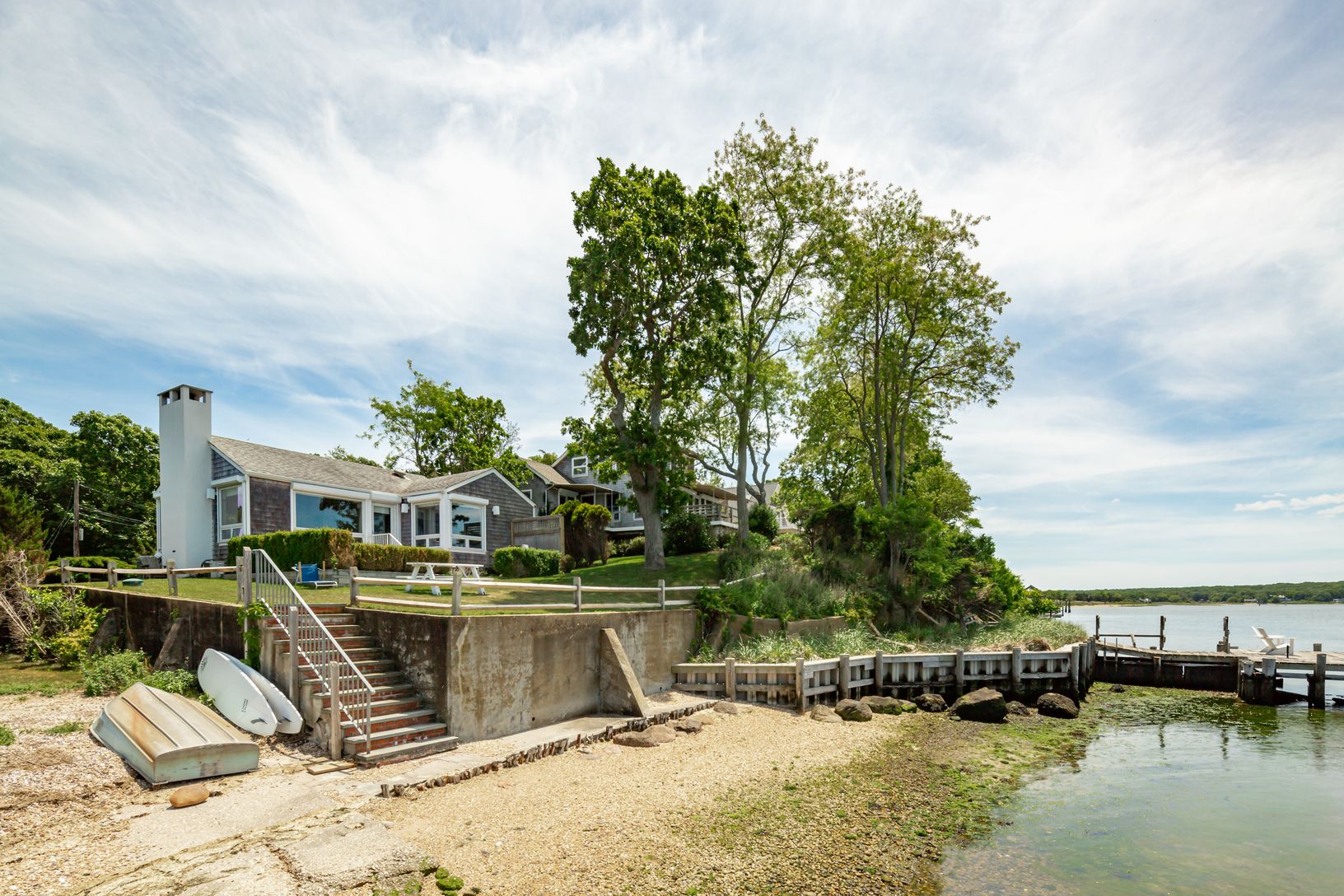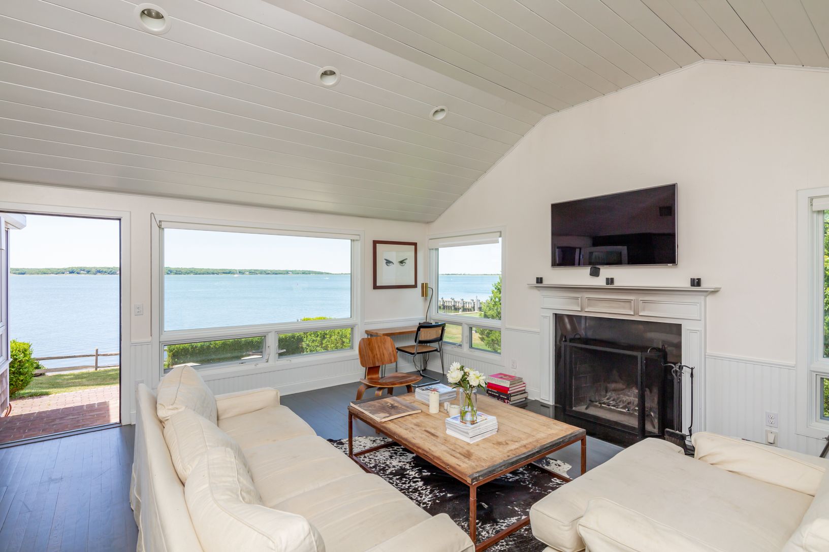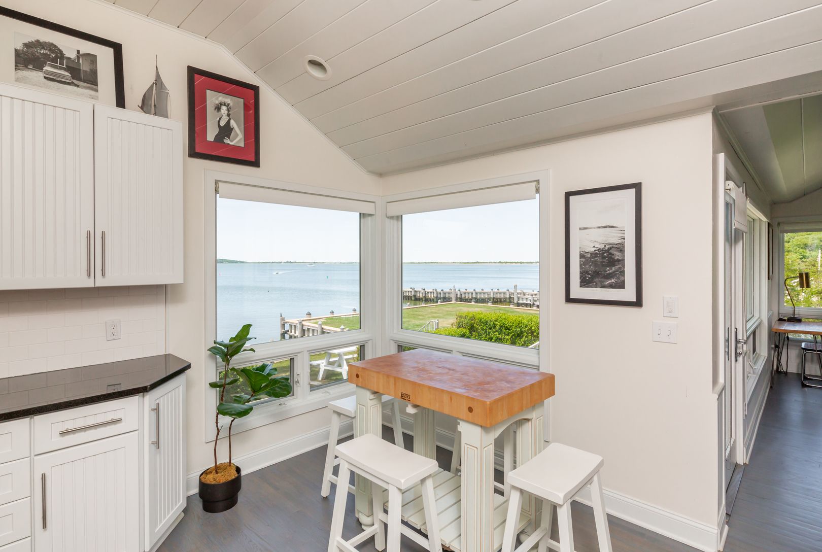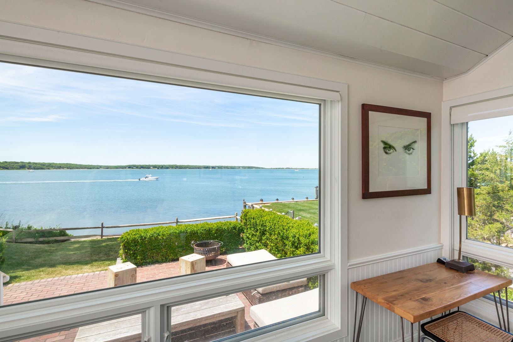 Enjoy endless sunsets and magnificent water views and direct water access from this stylish and sleek harbor side beach house. Situated on .76 of an acre with protected and bulk headed waterfront and legal clearing along Three Mile Harbor's coastline. This renovated cottage features 2 bedrooms, 2 baths, a large bonus room, plus majestic harbor views from the open kitchen and living spaces. The waterside patio offers unobstructed harbor views,