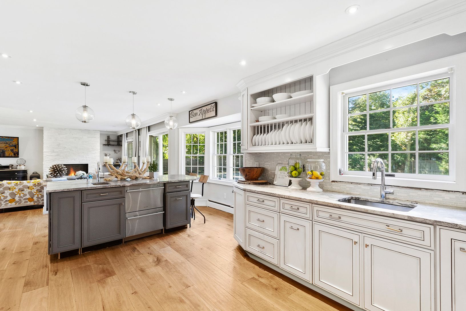 This beautiful four bedroom, two and a half bath traditional home is situated on a large and private corner lot. The home features an open main floor plan living that opens to the backyard with access to the pool and custom fire pit. The entire main floor features wide-plank white oak floors with a relaxing white stone gas fireplace. You will find the updated kitchen and adjoining dining room perfect for entertaining. All bedrooms are situated