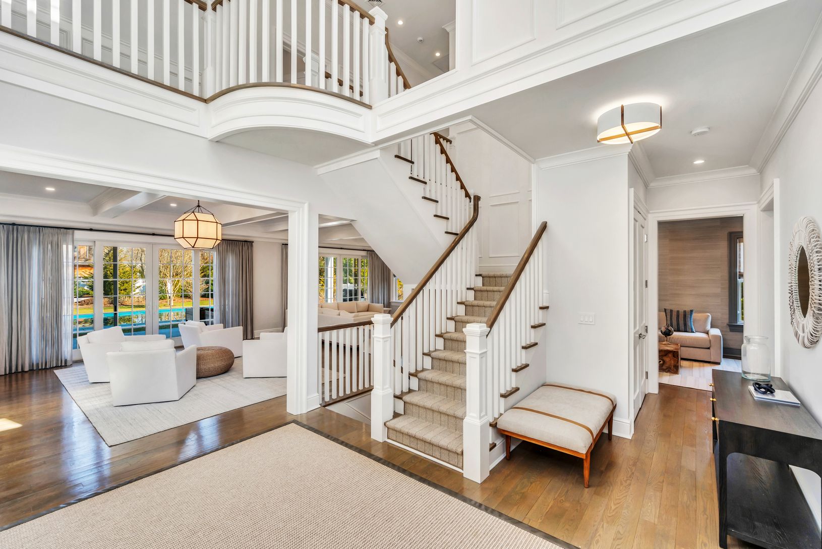 Set in the Heart of Bridgehampton horse and wine country is this stunning 7 Bedroom home. This beautifully appointed house was recently built while interiors and furnishings are designed by renowned interior designed Alicia Murphy. The home welcomes your with a charming courtyard and inviting front porch. Once inside the double height ceiling leads you into a chic great room which is ideal for entertaining or relaxing. From the architectural d