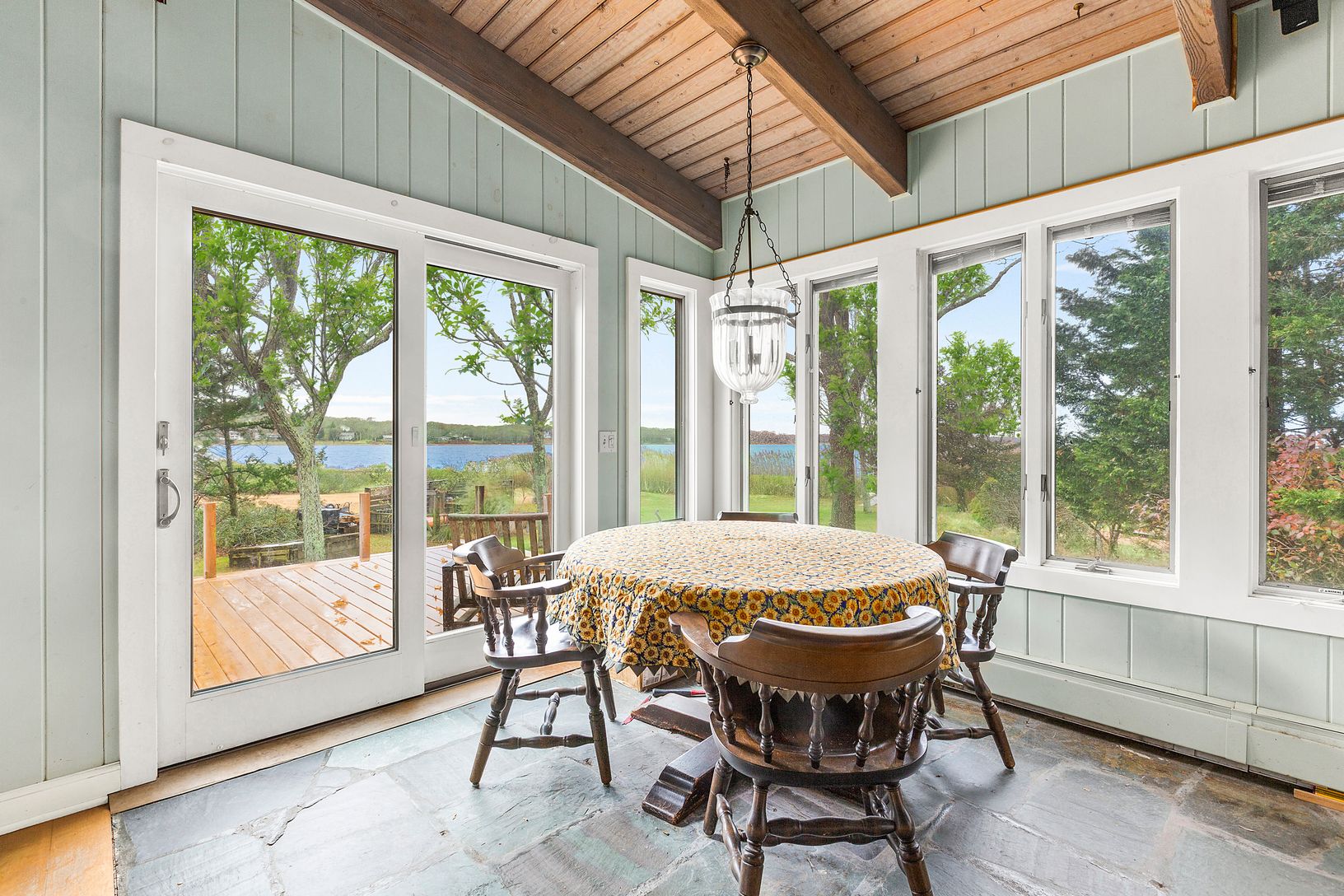 Located off of a quiet dead end street adjacent to a 16 acre nature preserve, this 1/2 acre of westerly facing waterfront offers a classic Hamptons Beach Cottage with tremendous potential or simply enjoy it as is. The property also offers your own beach and mooring rights. There are currently 3 bedrooms, 1 bath, a renovated kitchen and vaulted ceiling living room with exposed beams surrounded by oversized windows overlooking Three Mile Harbor.