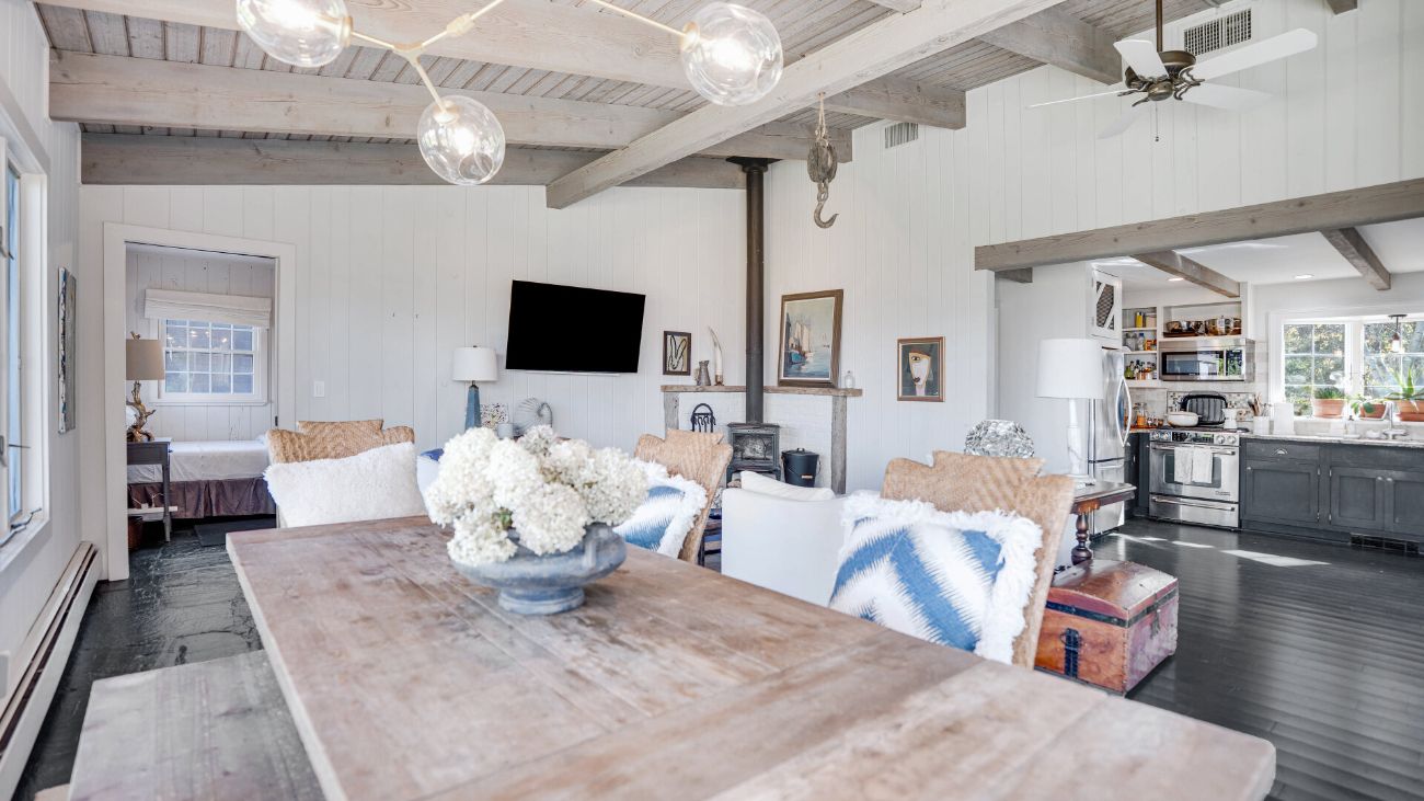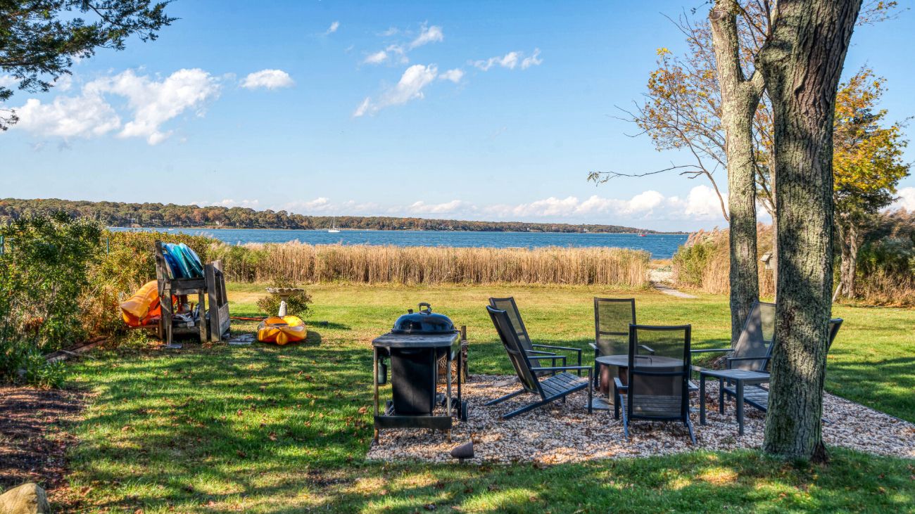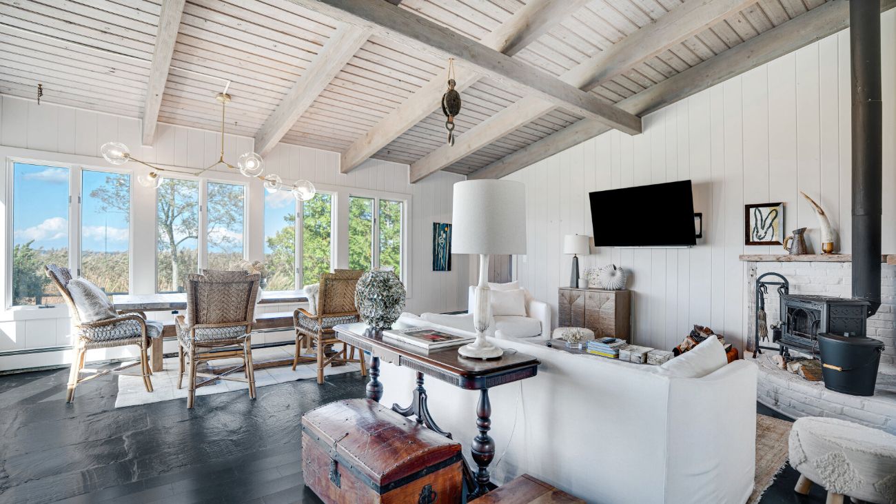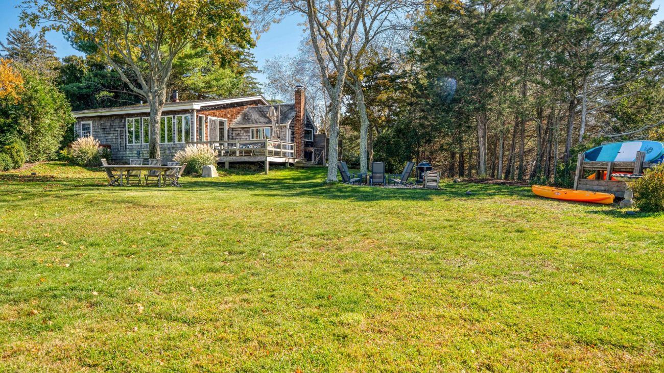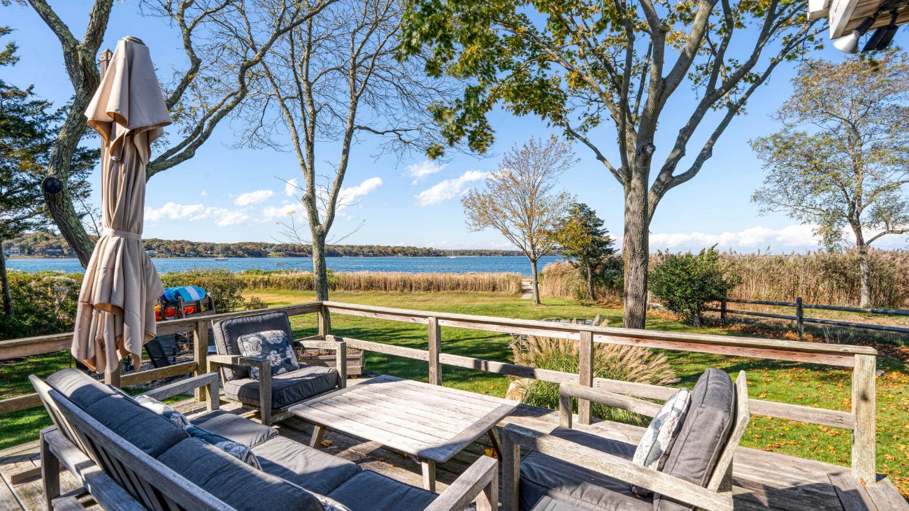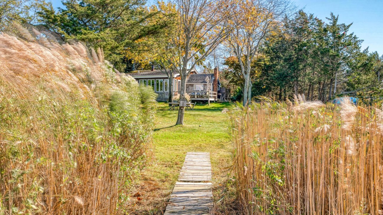Nestled along a tranquil waterfront, this charming three-bedroom, one-bath cottage offers a refined East Hampton escape filled with character and comfort. Wrapped in classic wood-paneled walls and ceilings, the home evokes the timeless charm of a seaside retreat while delivering modern amenities and effortless style. Highlights in