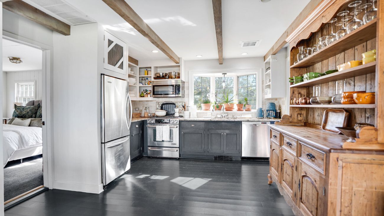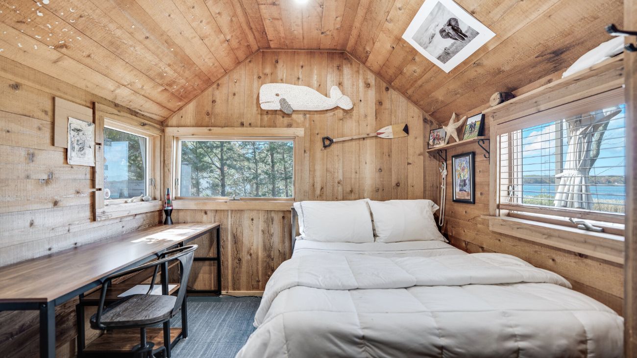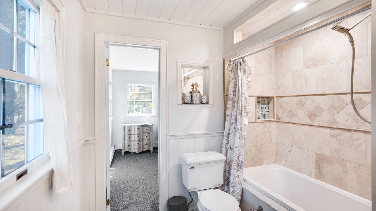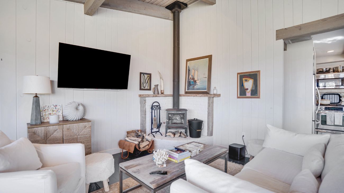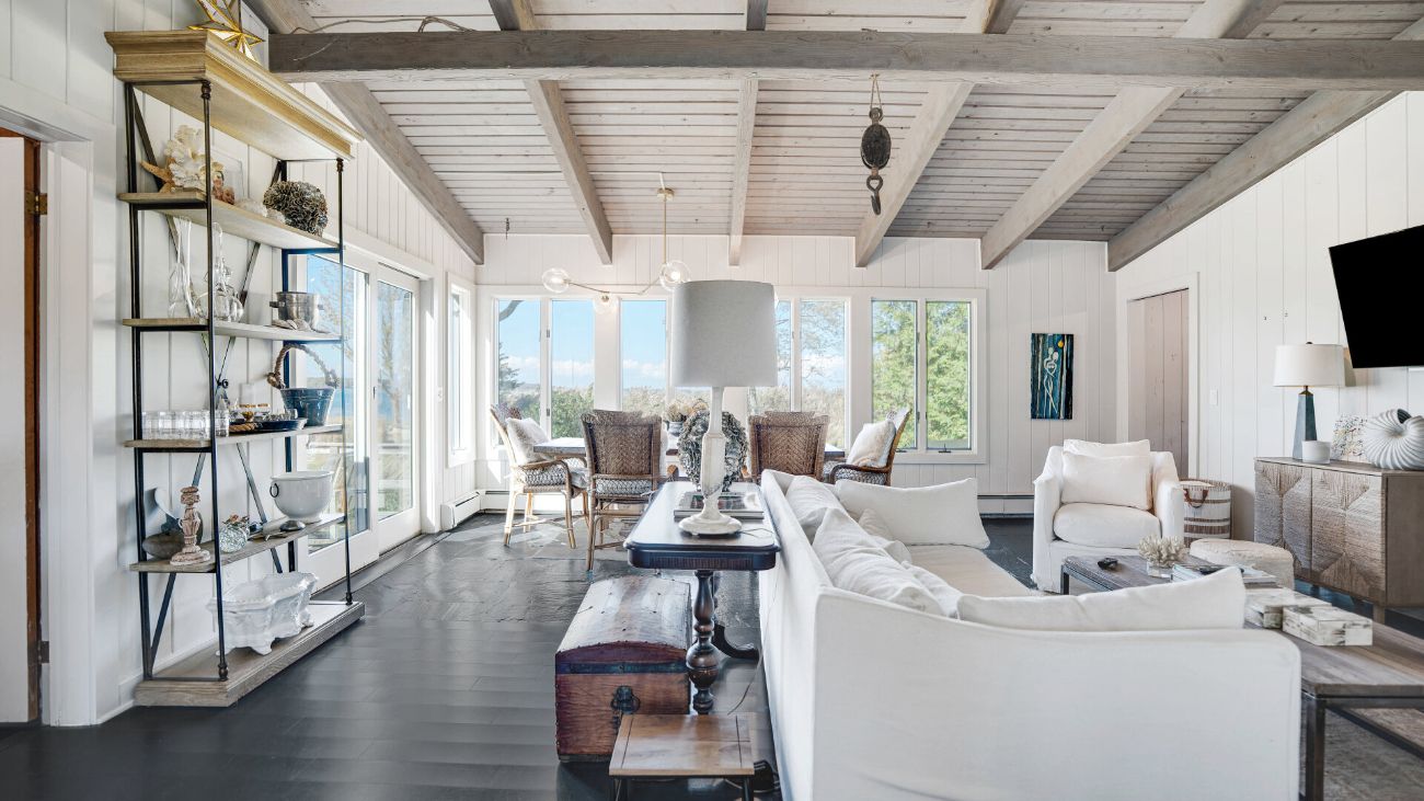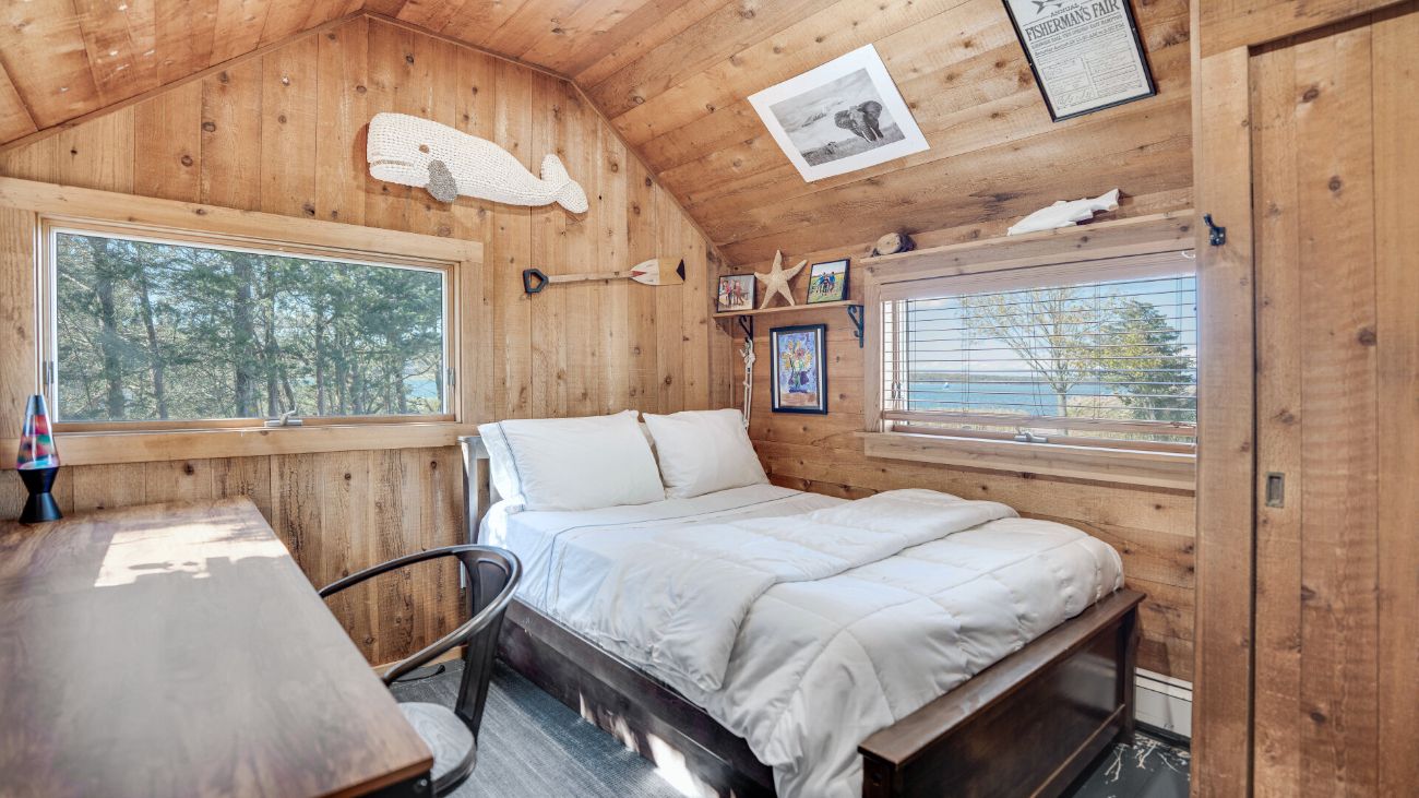 Nestled along a tranquil waterfront, this charming three-bedroom, one-bath cottage offers a refined East Hampton escape filled with character and comfort. Wrapped in classic wood-paneled walls and ceilings, the home evokes the timeless charm of a seaside retreat while delivering modern amenities and effortless style. Highlights in