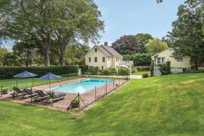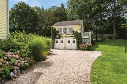 Brand New To The Market this beautiful, recently renovated traditional offers four bedrooms and four baths on a beautifully landscaped 1+/- acre parcel with an extensive yard. Additionally, the property features a detached two-car garage with a guest apartment above with full bath and kitchenette. This space could potentially be a professional office space. All this located south of the highway in East Hampton Village within close proximity